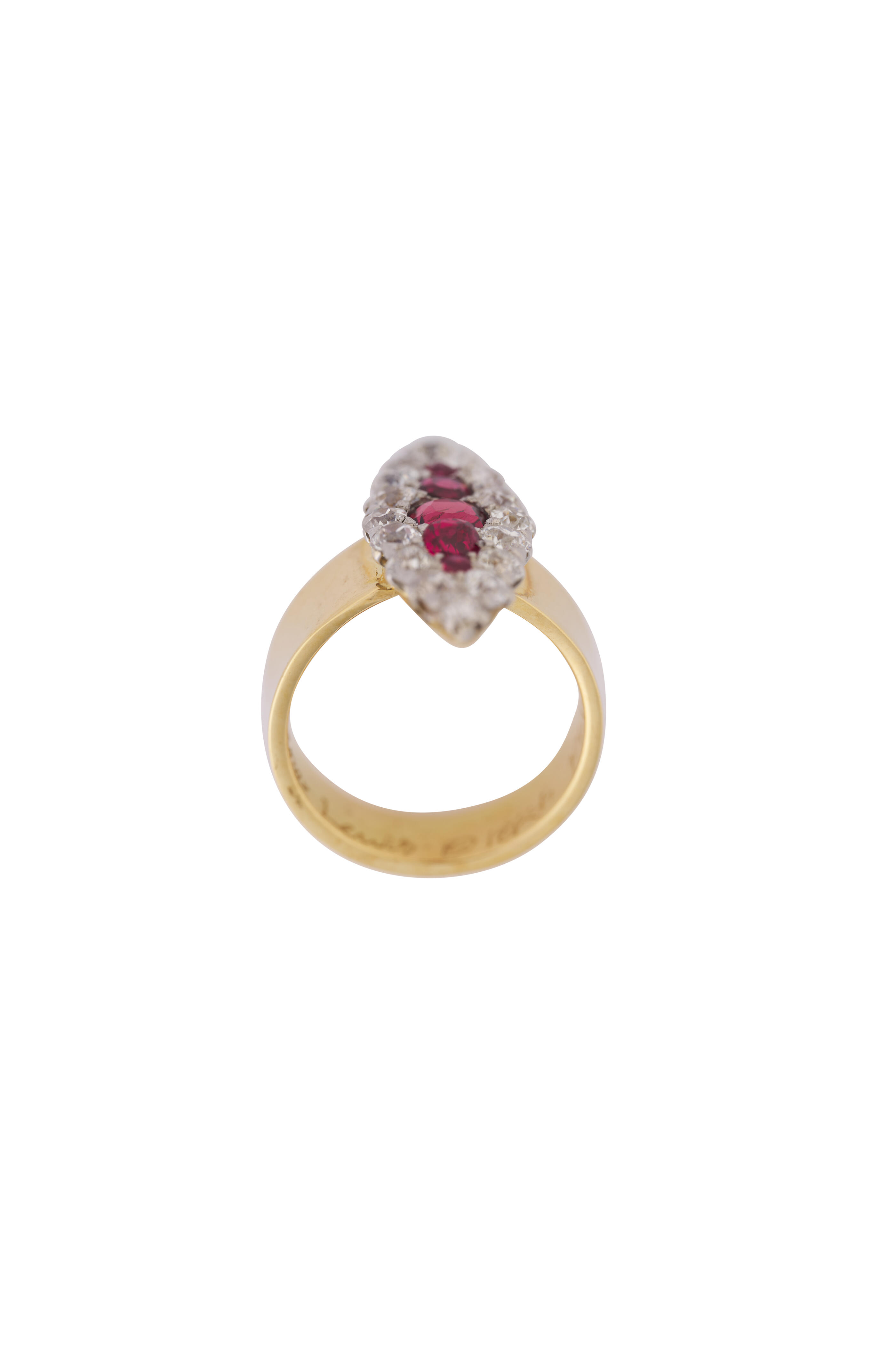 • Renee Lewis - 18k Yellow Gold Diamond & Ruby Marquise Ring