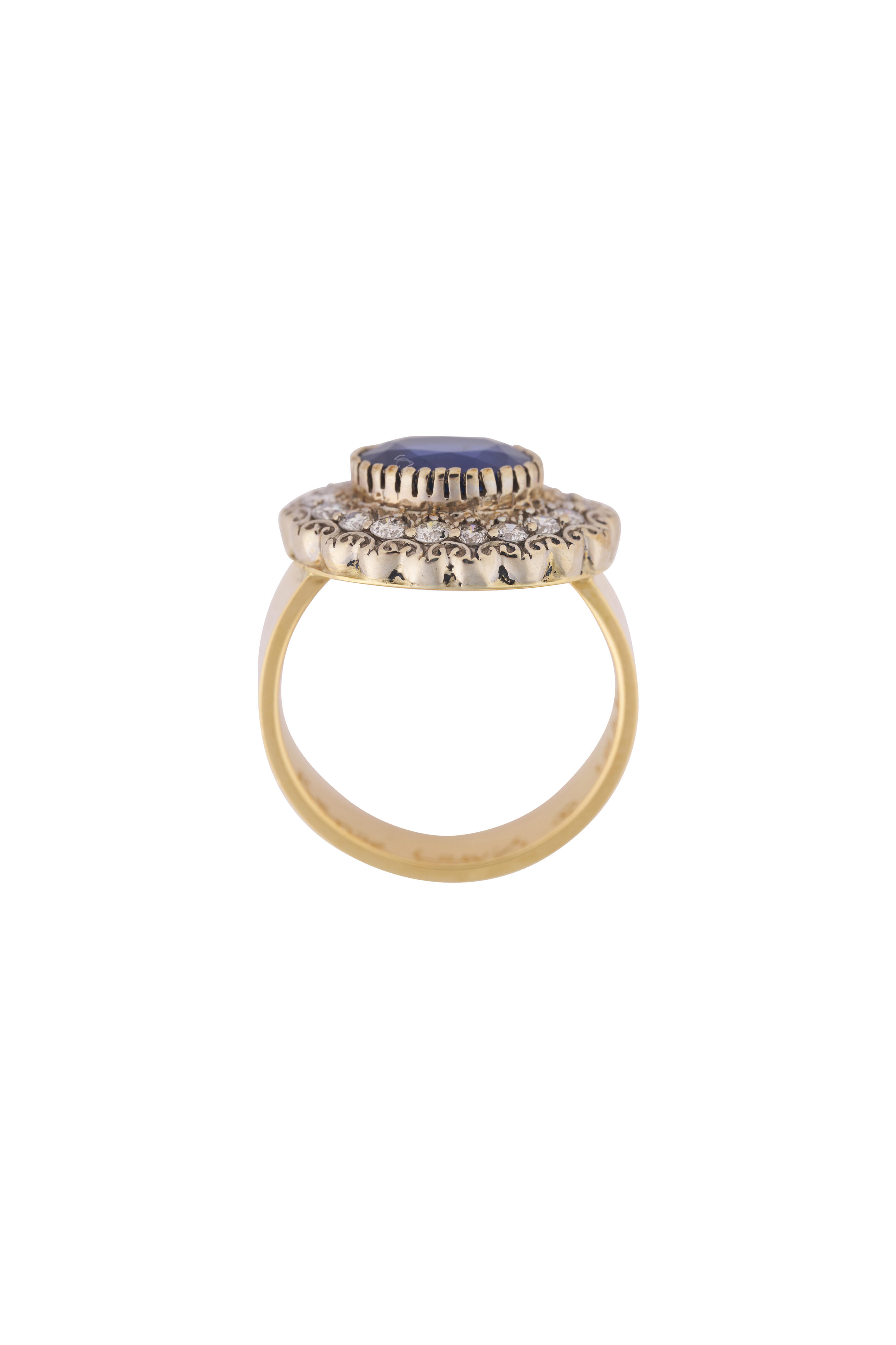 • Renee Lewis - 18k Yellow Gold Oval Diamond & Sapphire Ring