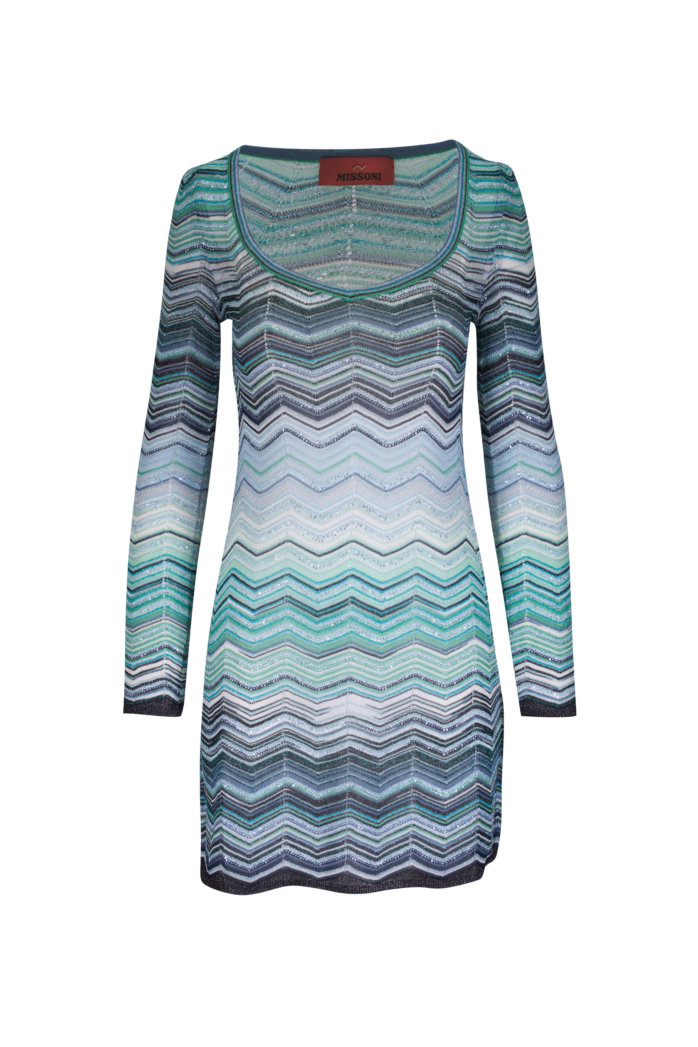 Scoop neckline. Slip-on style. Sequin embellishement. Made in Italy. Approximately 34" shoulder to hem (measurements taken from size 4). 75% viscose, 14% polyamide, 11% metallicized fiber; lined. Dry clean.