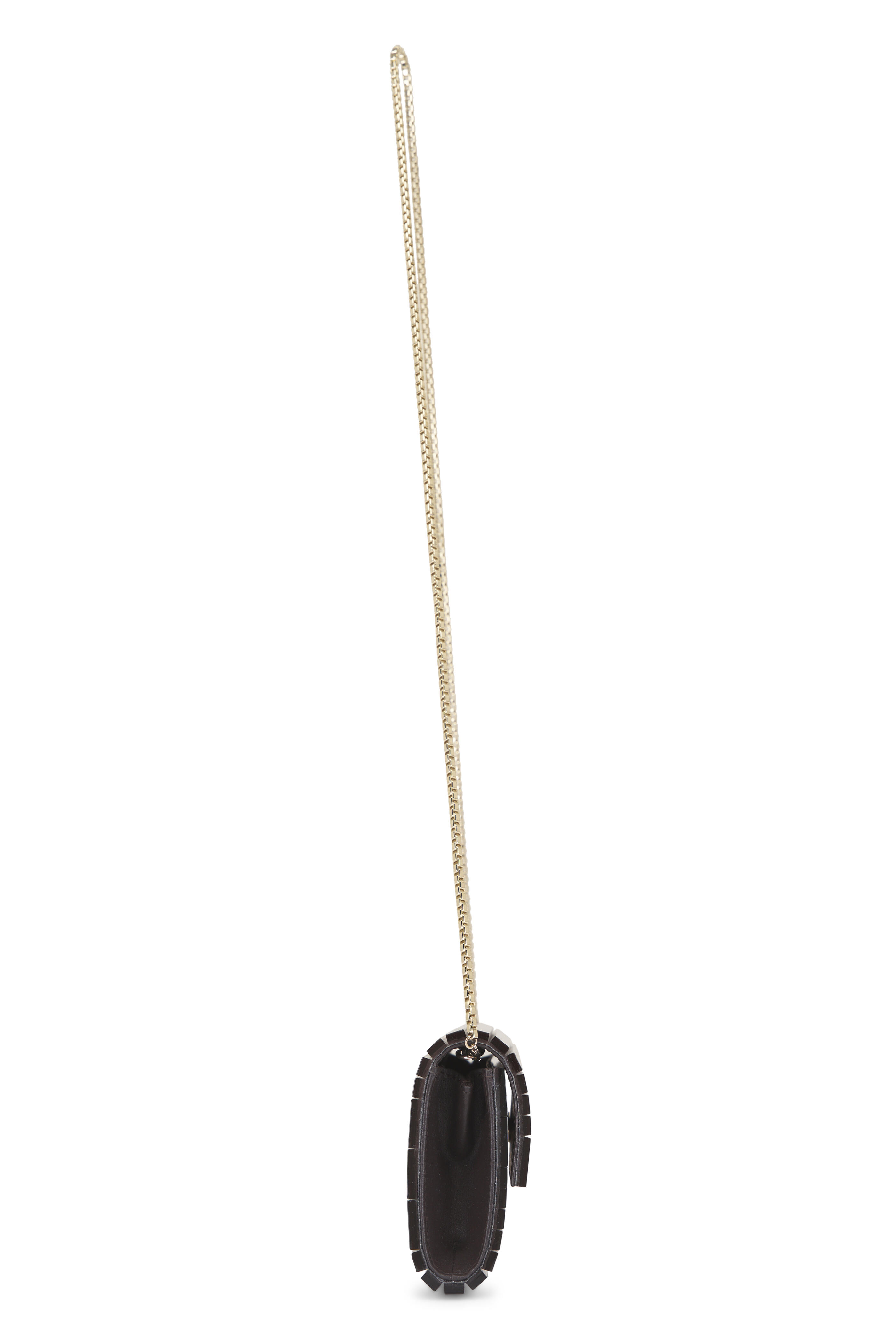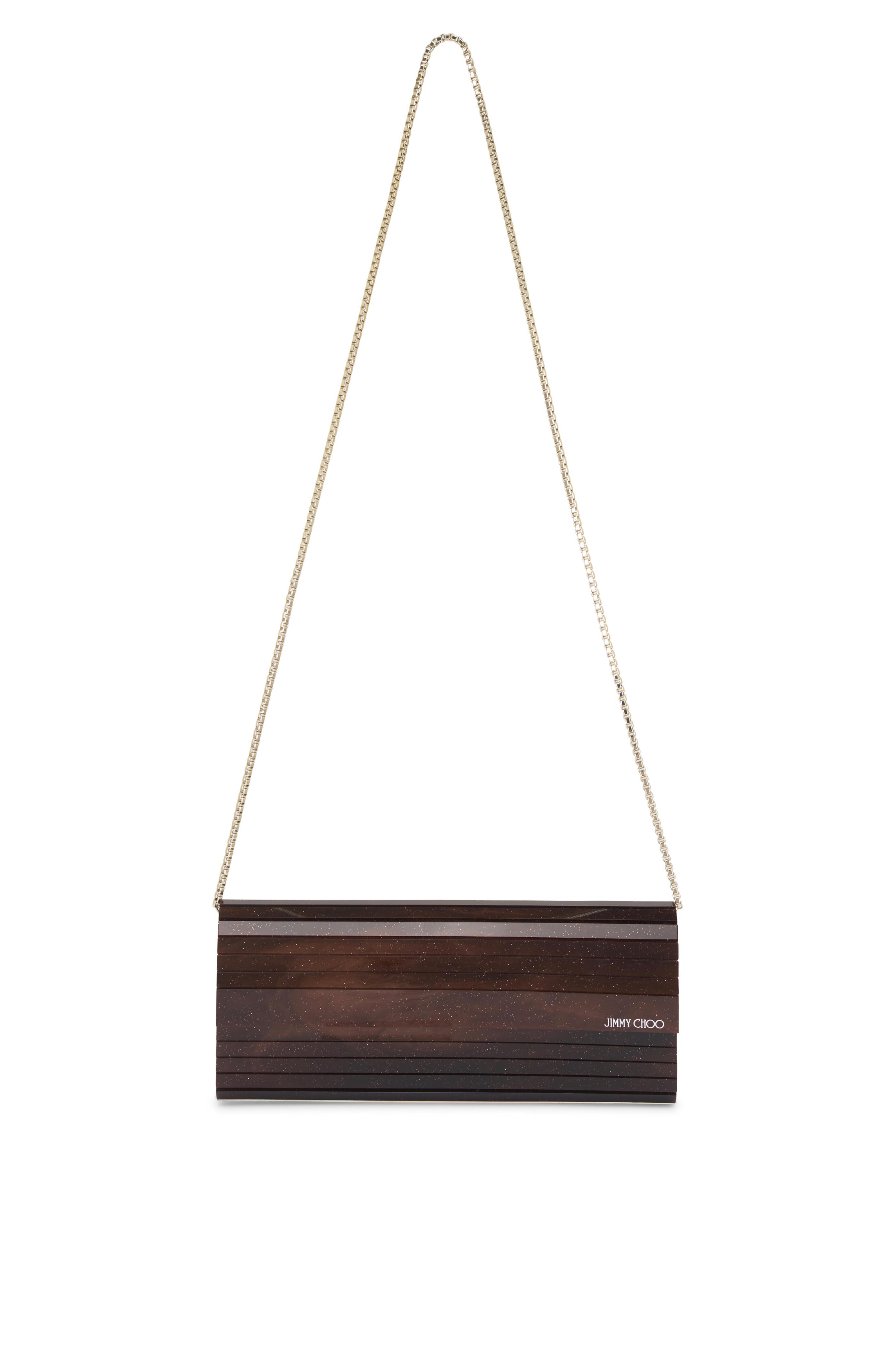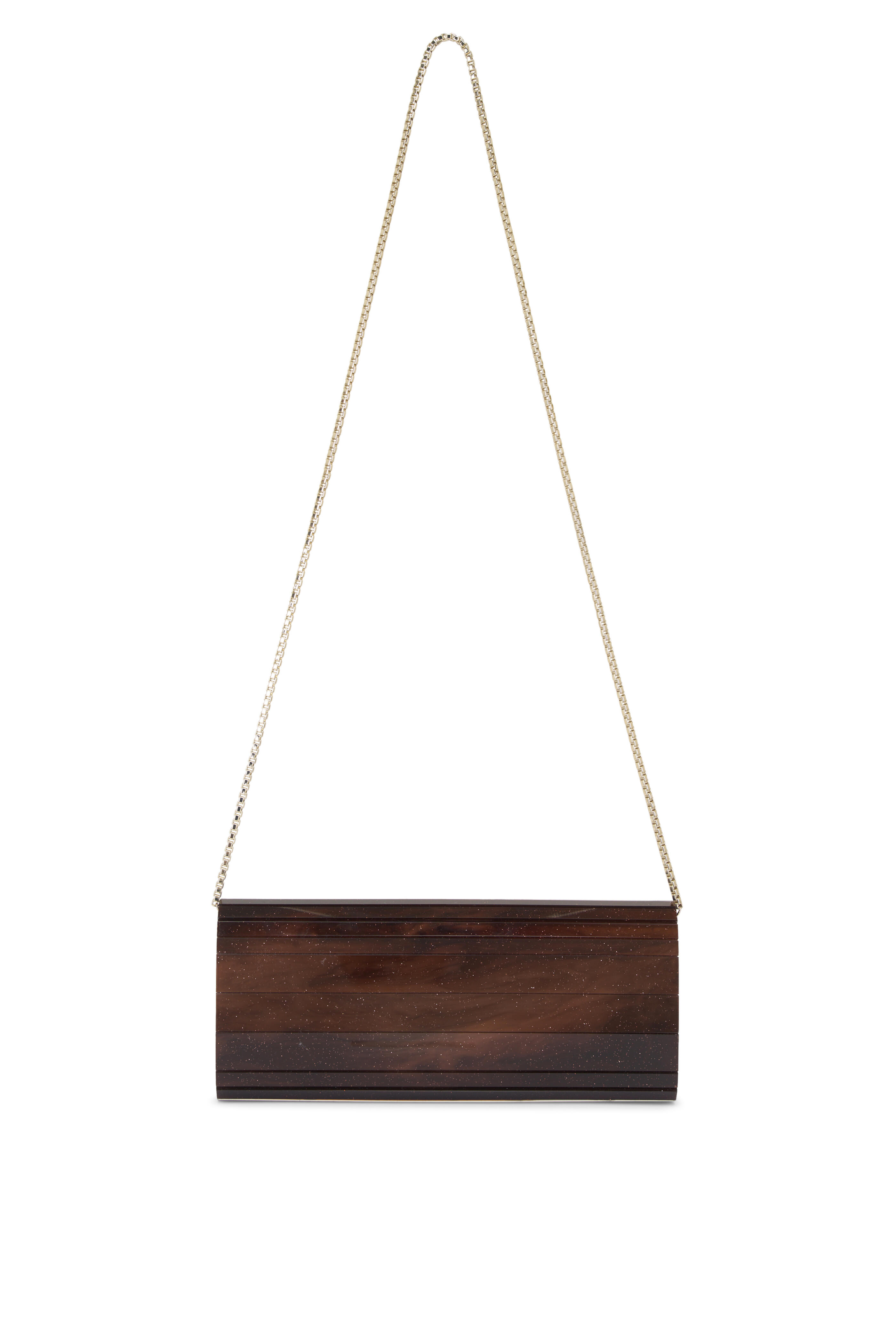 Acrylic. Removable chain strap. Magnetic closure. Interior slip pocket. Leather lining. Made in Italy. Height: Approx. 4". Width: 9.4". Depth: approx. 2". Strap drop: 17.3".