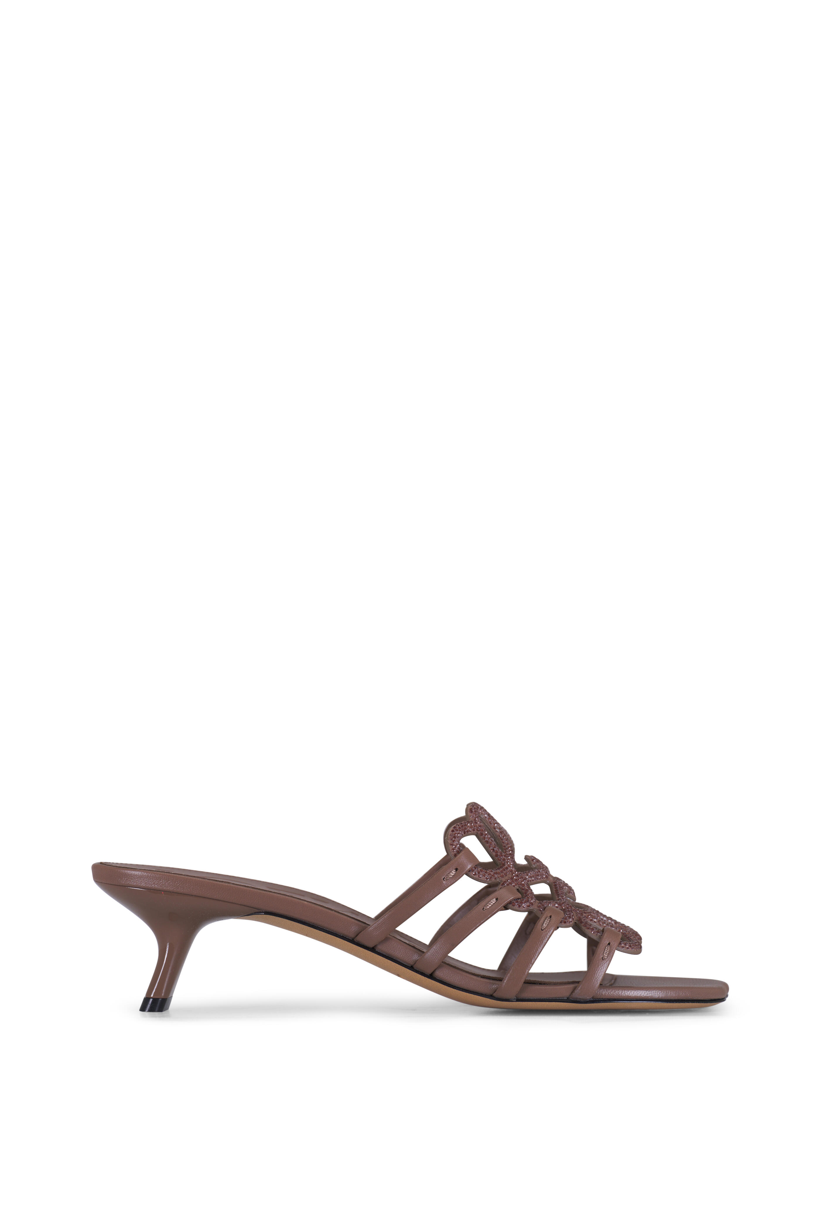 Leather upper. Open, squared toe. Slip on style. Leather lining and insole. Leather sole. Self-covered heel. Made in Italy. Heel measurement: 45mm.