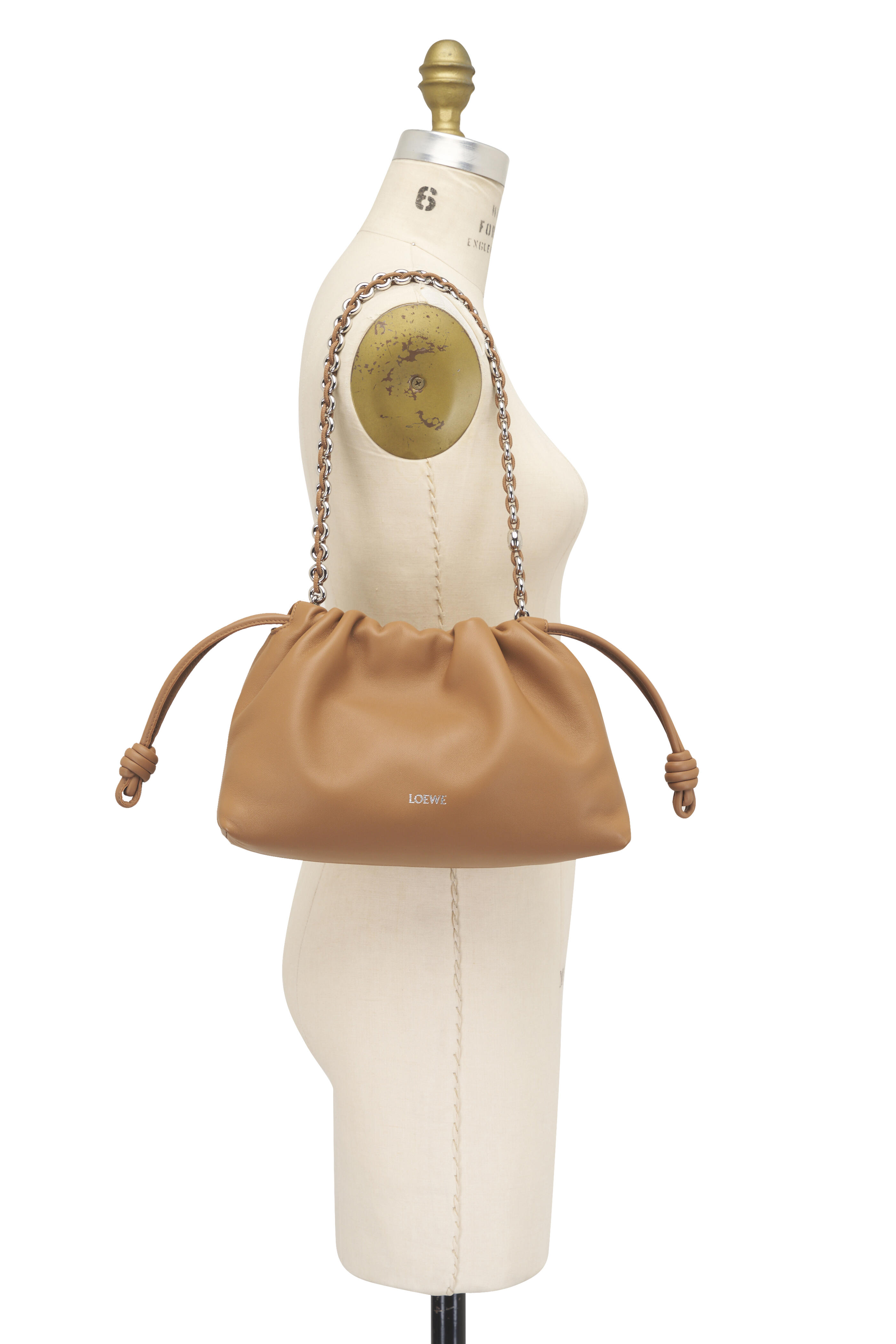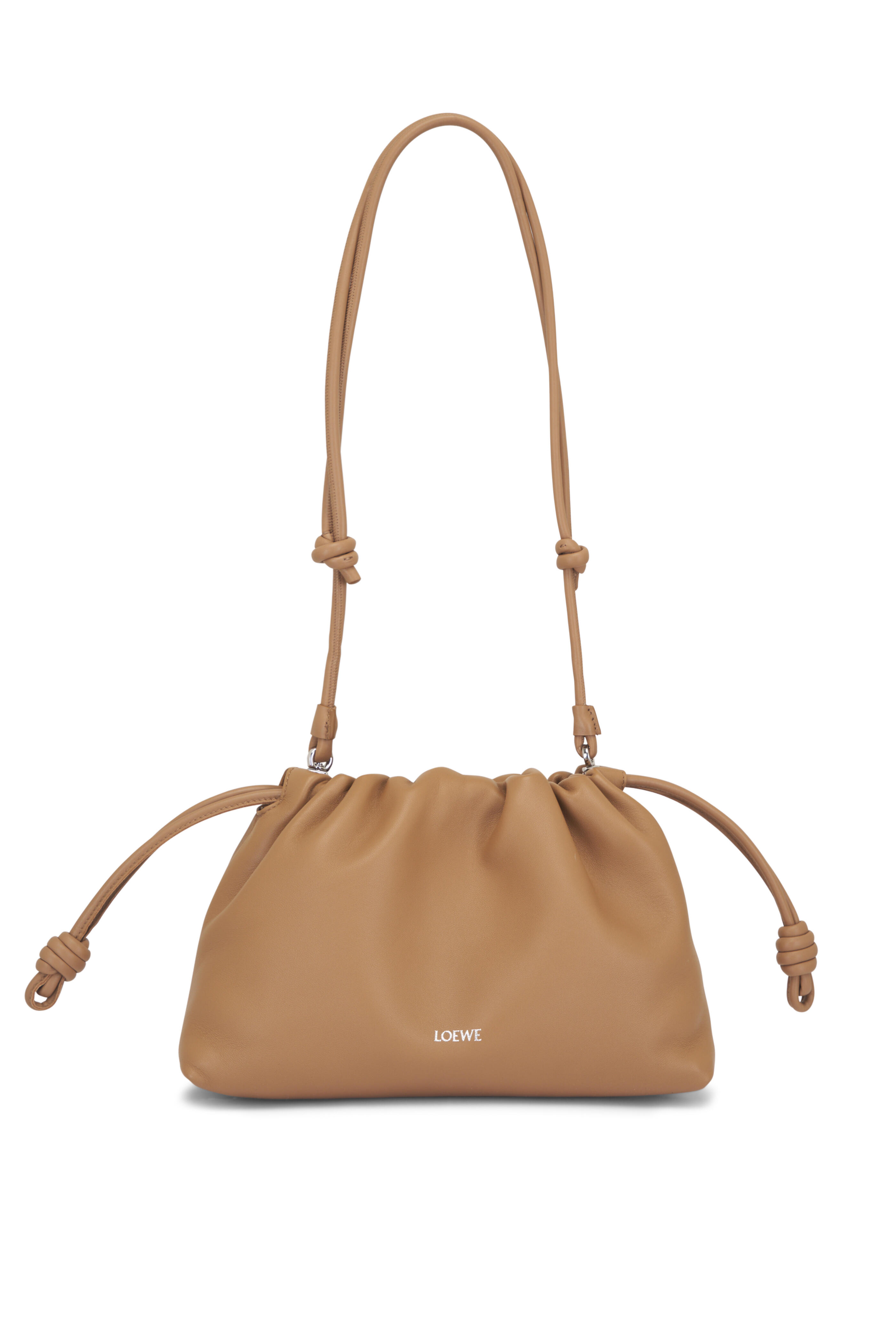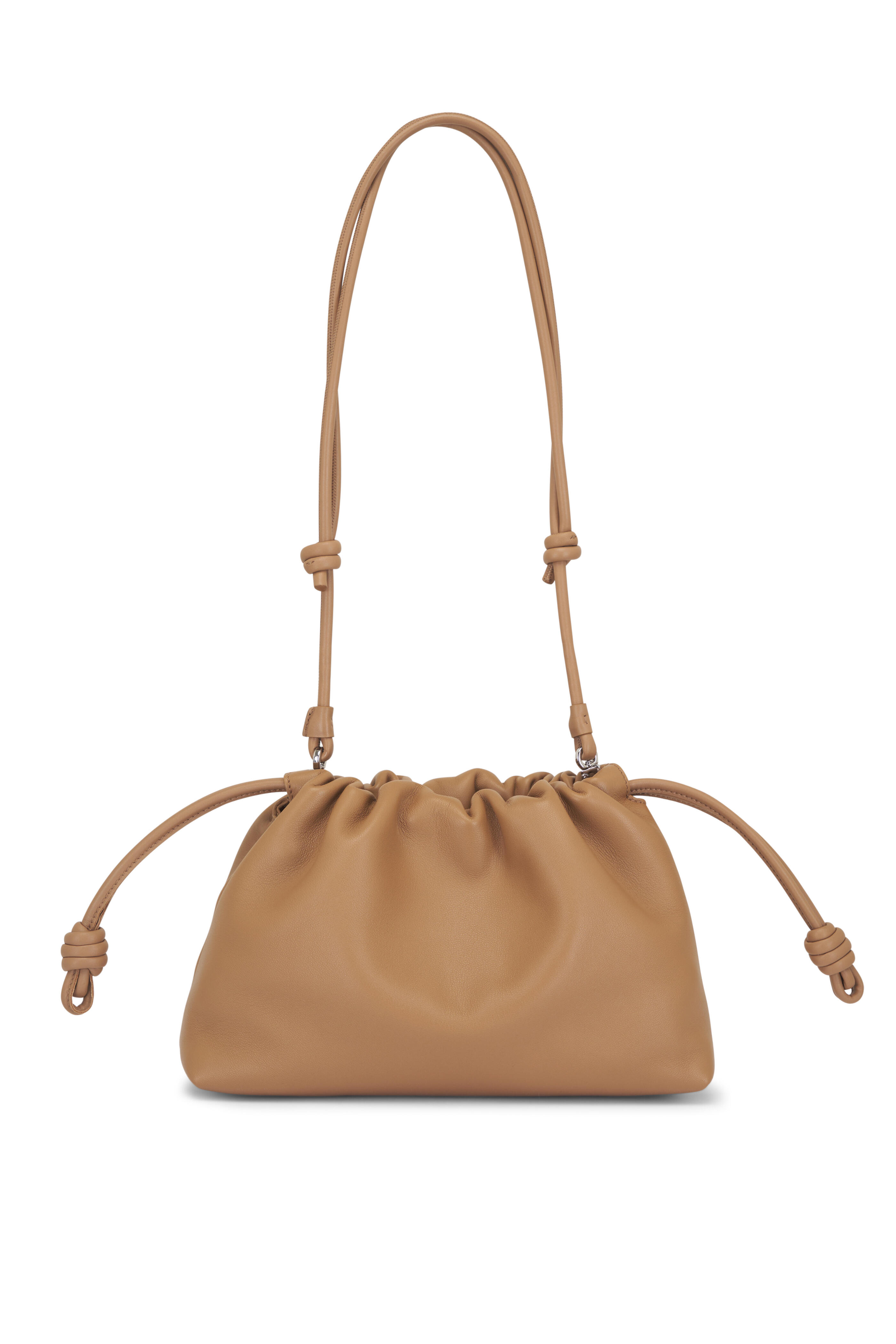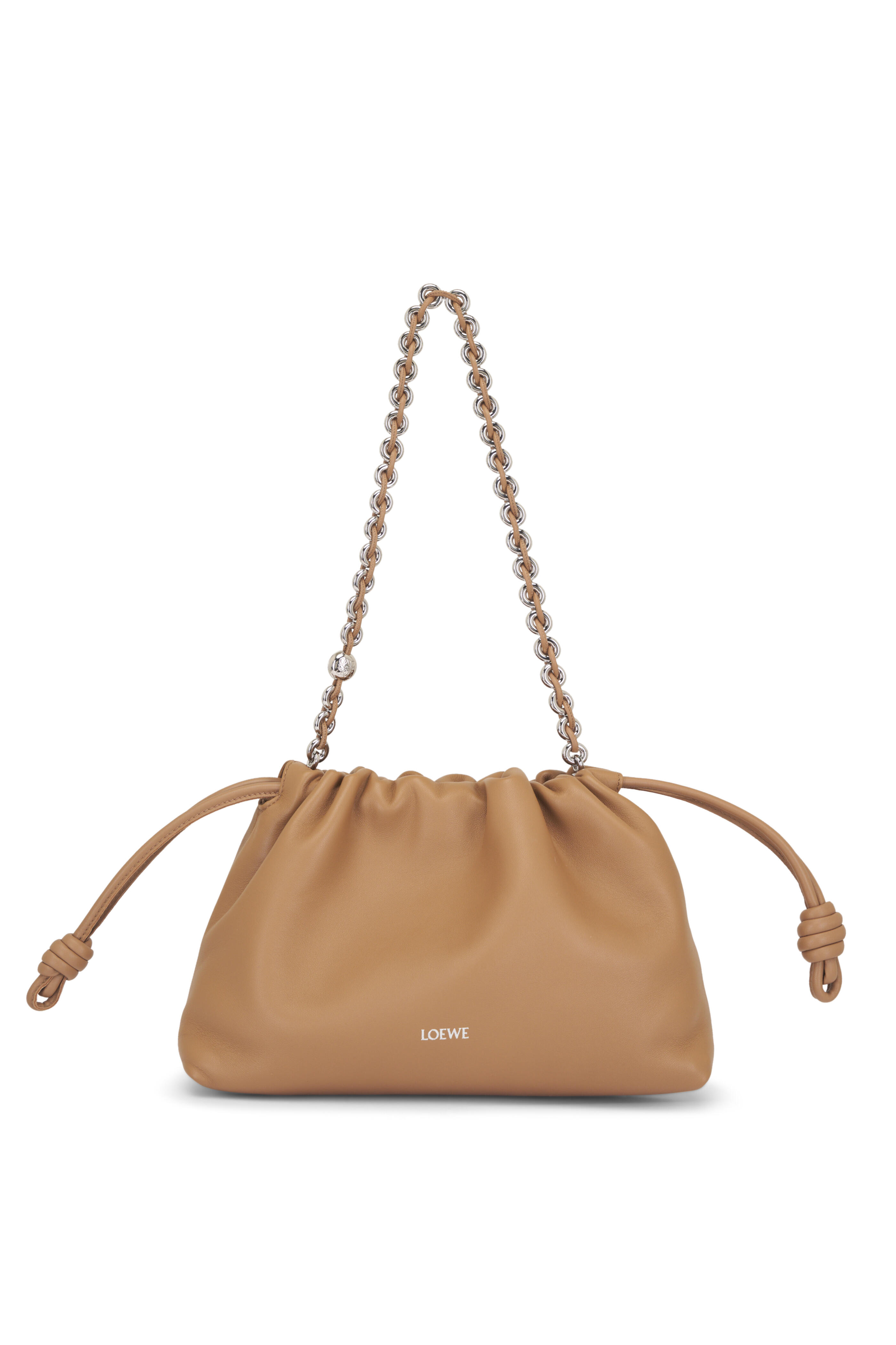 Nappa lambskin. Detachable and adjustable leather strap. Detachable donut chain adorned with an Anagram Pebble. Discreet magnetic closure. Single compartment. Suede lining. Silver embossed logo. Made in Spain. Strap length : 59 / 82 -142 cm. Strap drop : 27 / 37 - 67 cm. Height: 20 cm. Width: 30 cm. Depth: 10.5 cm.