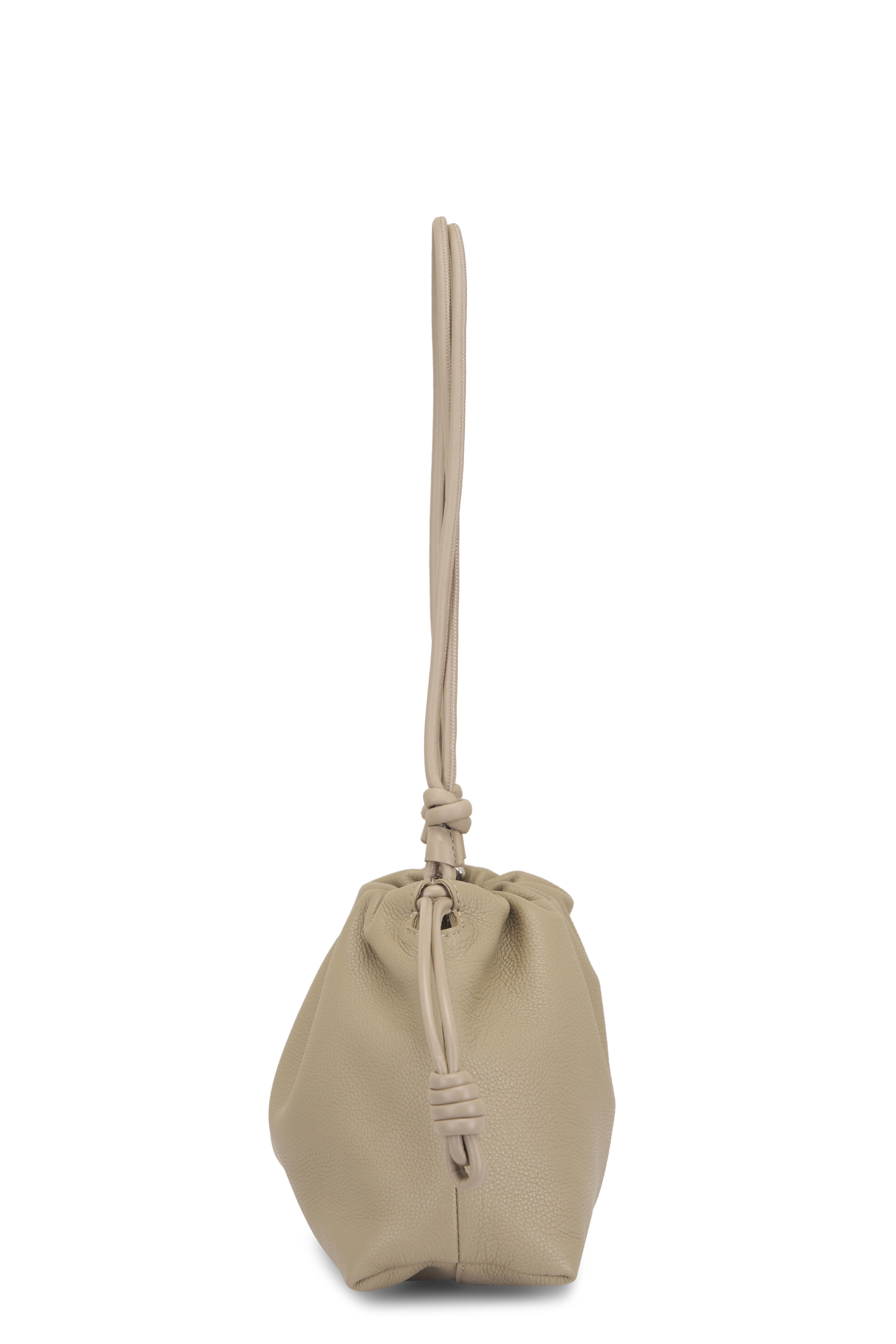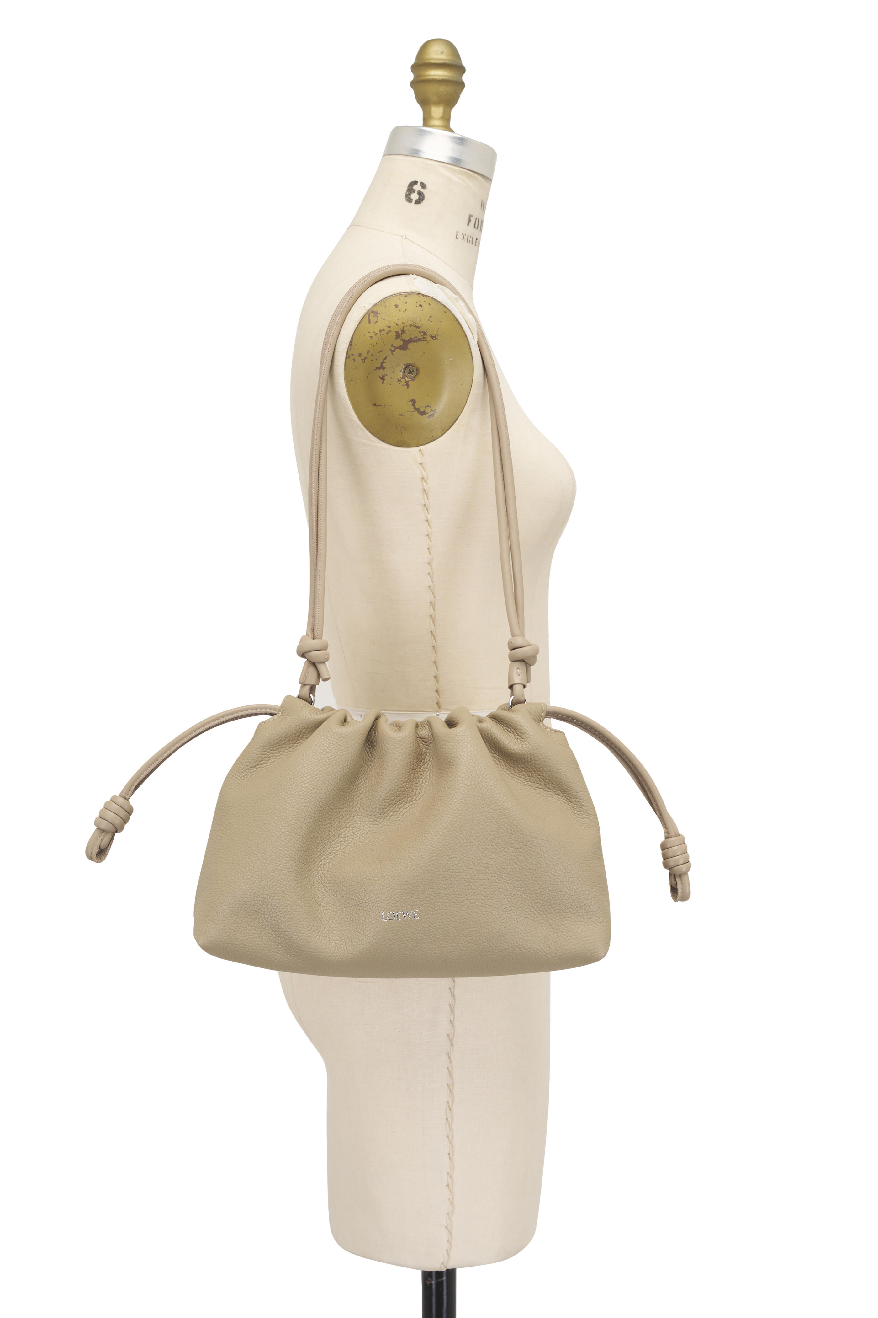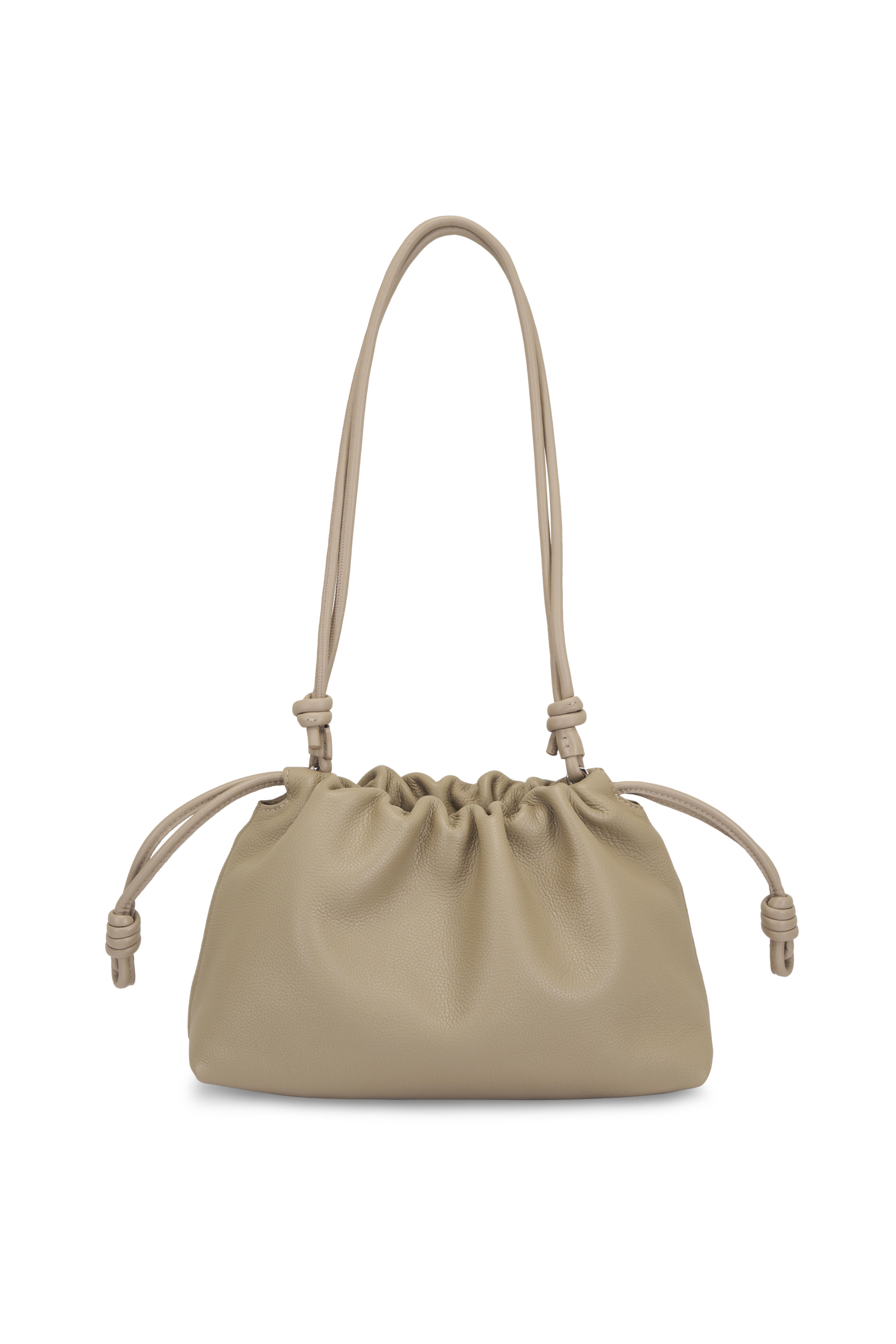 Fine grain calfskin leather. Magnetic closure. Detachable donut chain with anagram pebble. Detachable and adjustable leather strap. Knot drawstrings. Suede lining. Silver embossed logo. Palladium-tone hardware. Made in Spain. Height: 7.9". Width: 11.8". Depth: 4.1". Strap length: 23.2"/ 32.3" - 55.9". Strap drop: 10.6"/ 14.6" - 26.4".