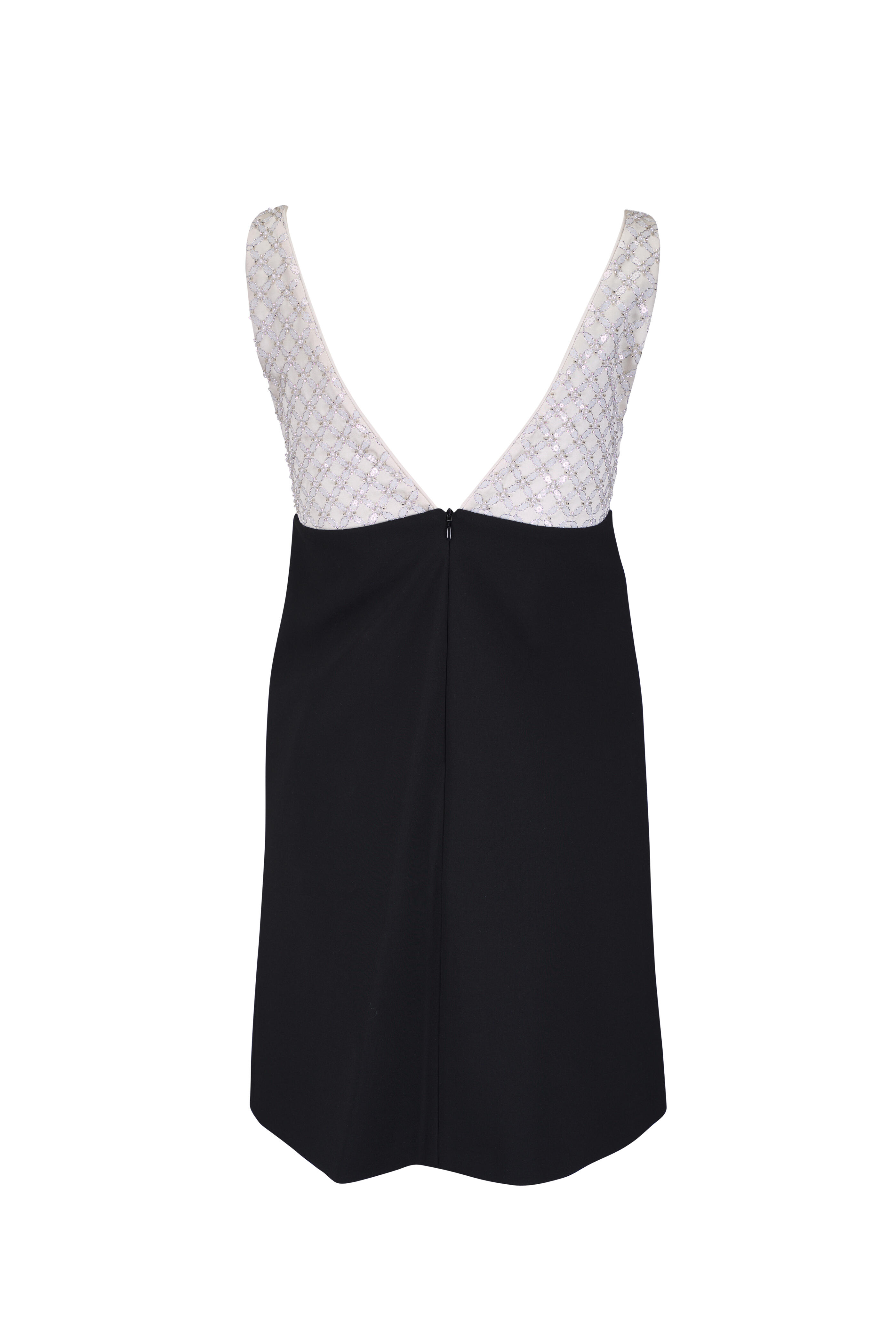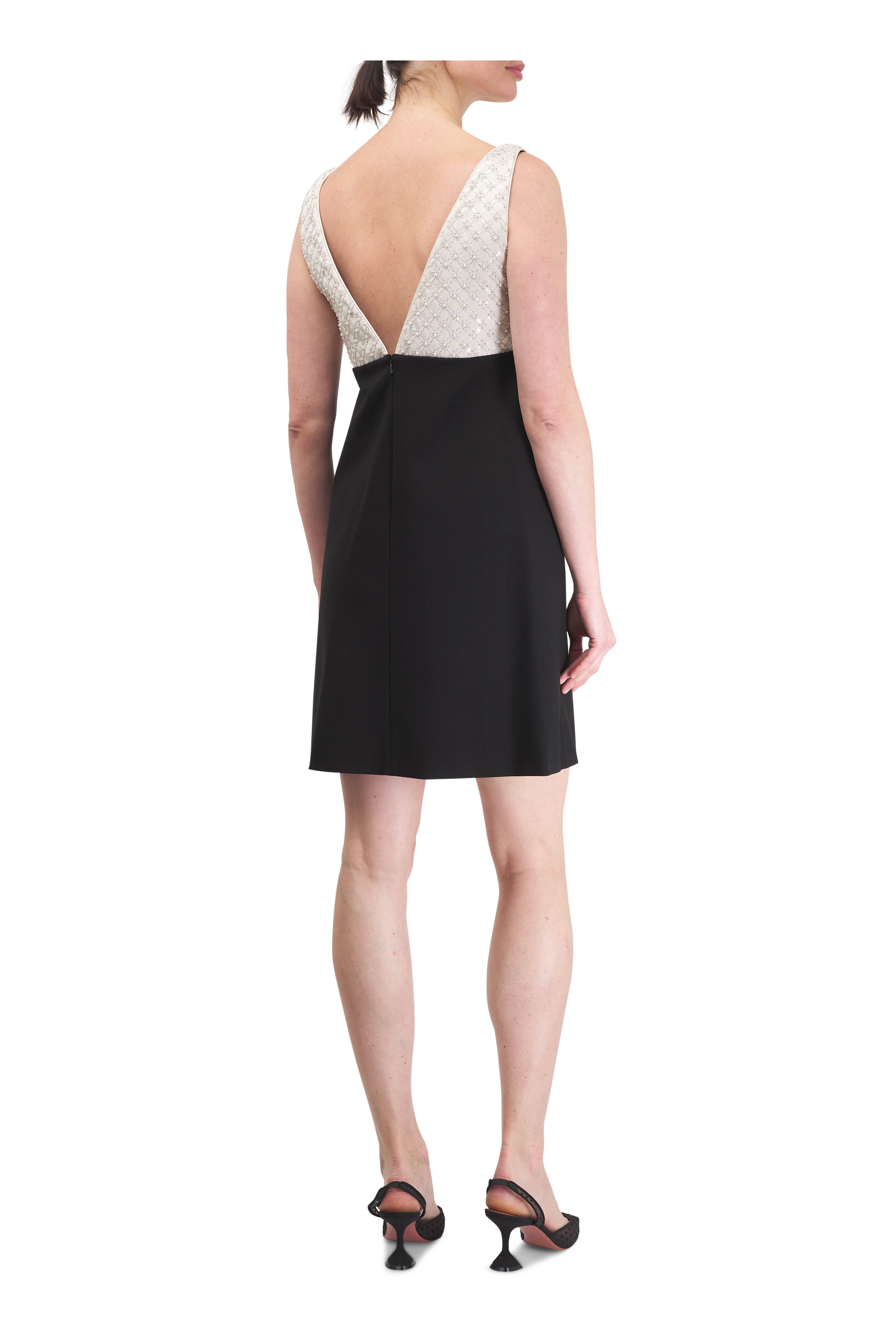 V-neckline; v-back. Embellished floral sequins top. Concealed back zip. Imported. 33" shoulder to hem. 67% viscose, 28% polyamide, 5% elastane. Dry clean.