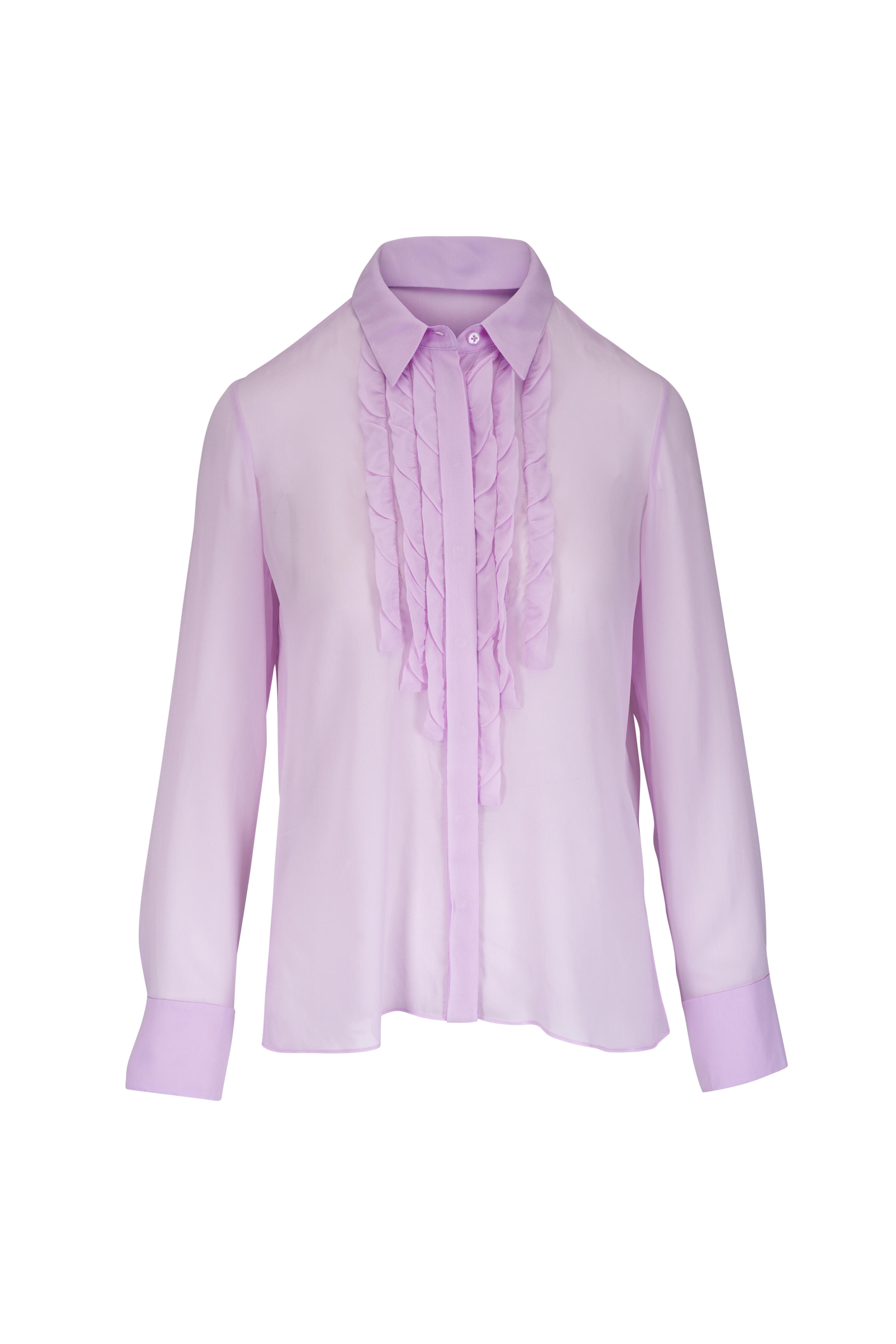 Spread collar. Concealed front button placket. Single button square cuffs. Imported. 100% viscose. Dry clean.