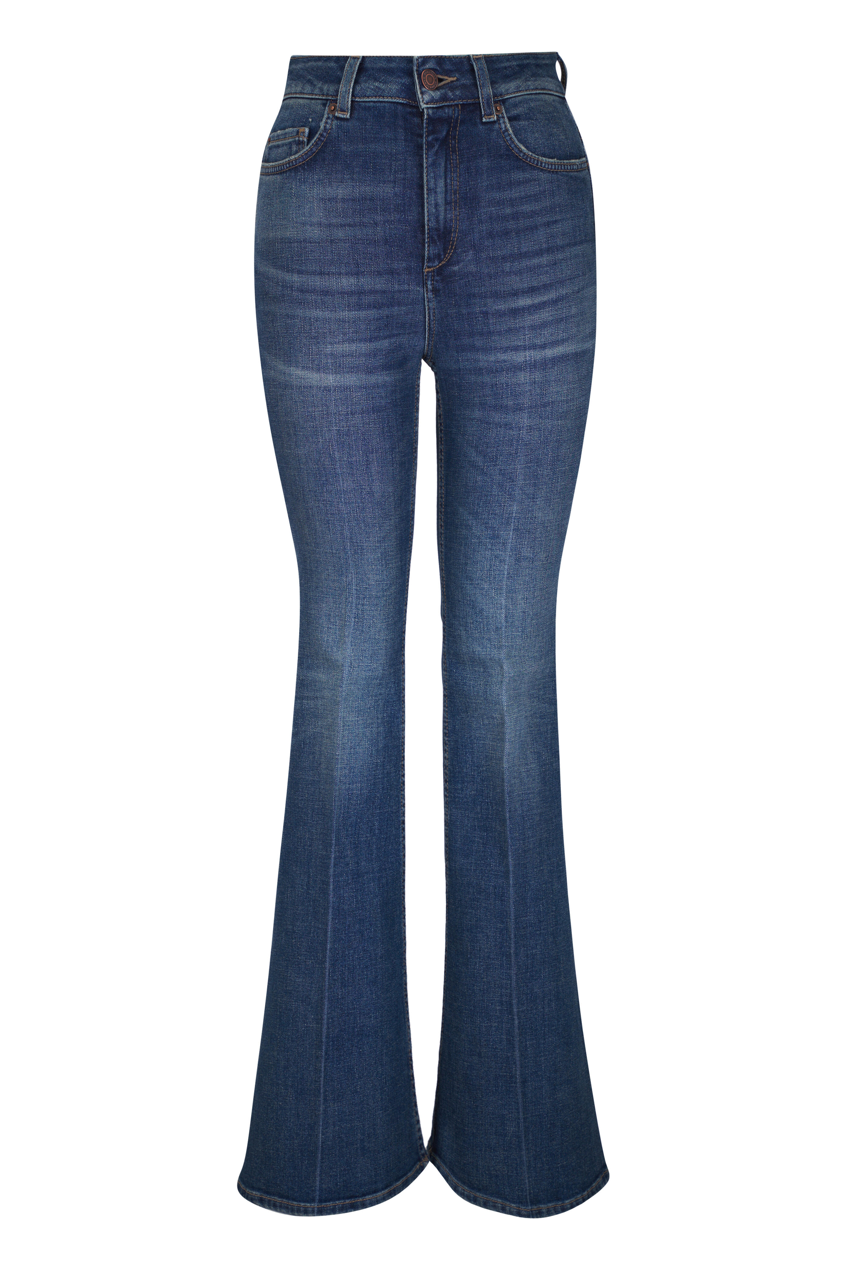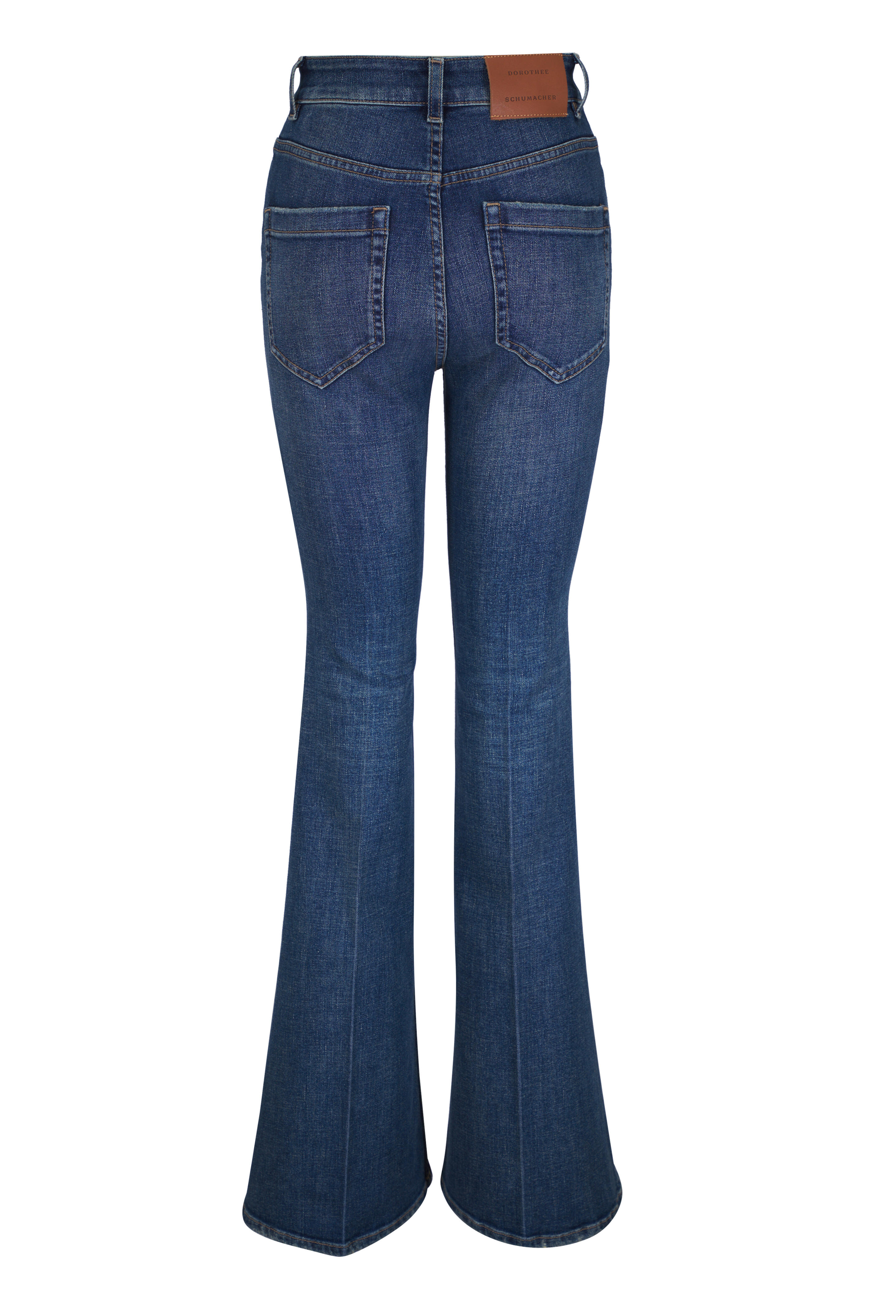 Zip fly & button closure. Mid‑rise with belt loops. Classic 5‑pocket styling. Flared leg. Made in Italy. 98% cotton, 2% elastane. Machine wash.