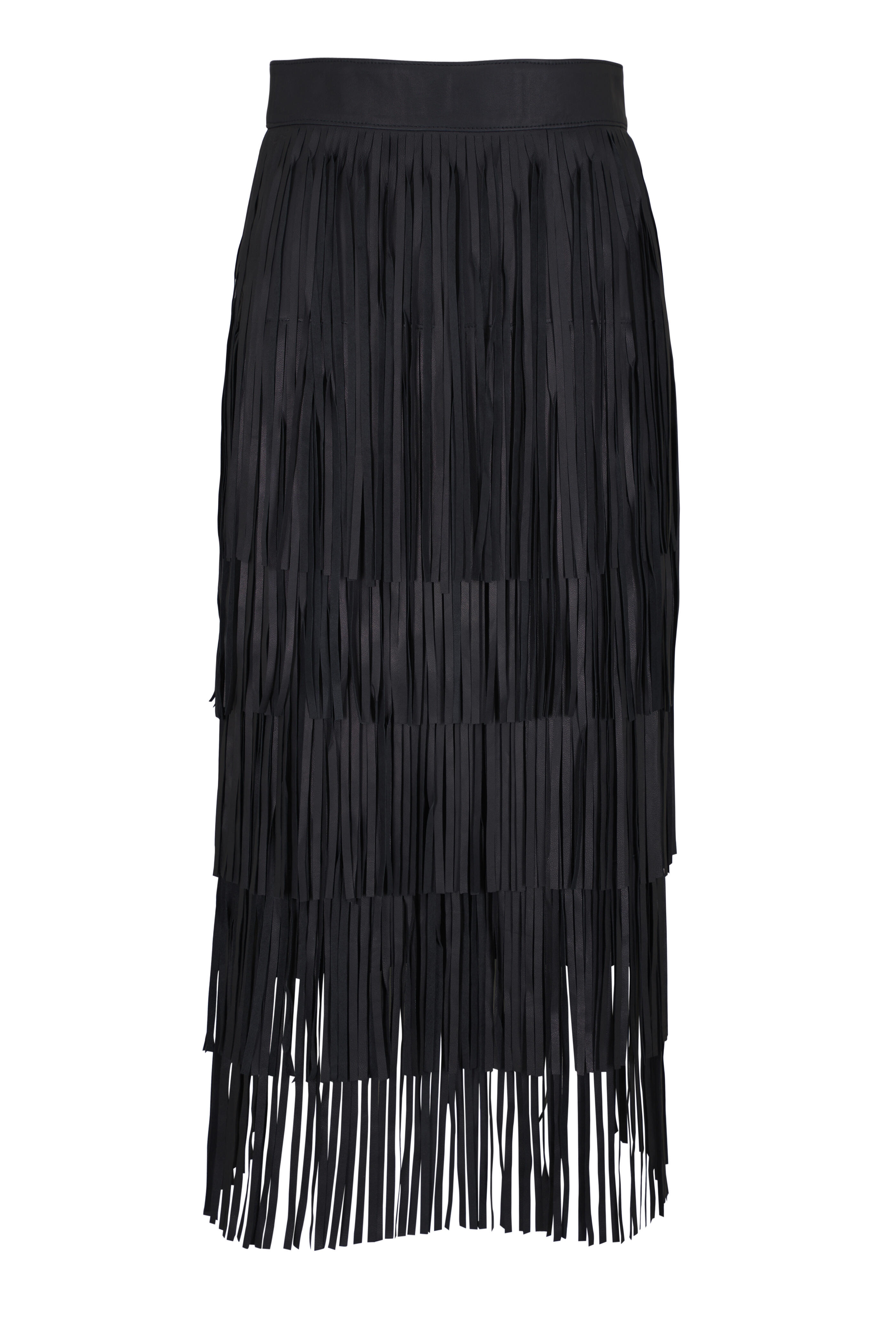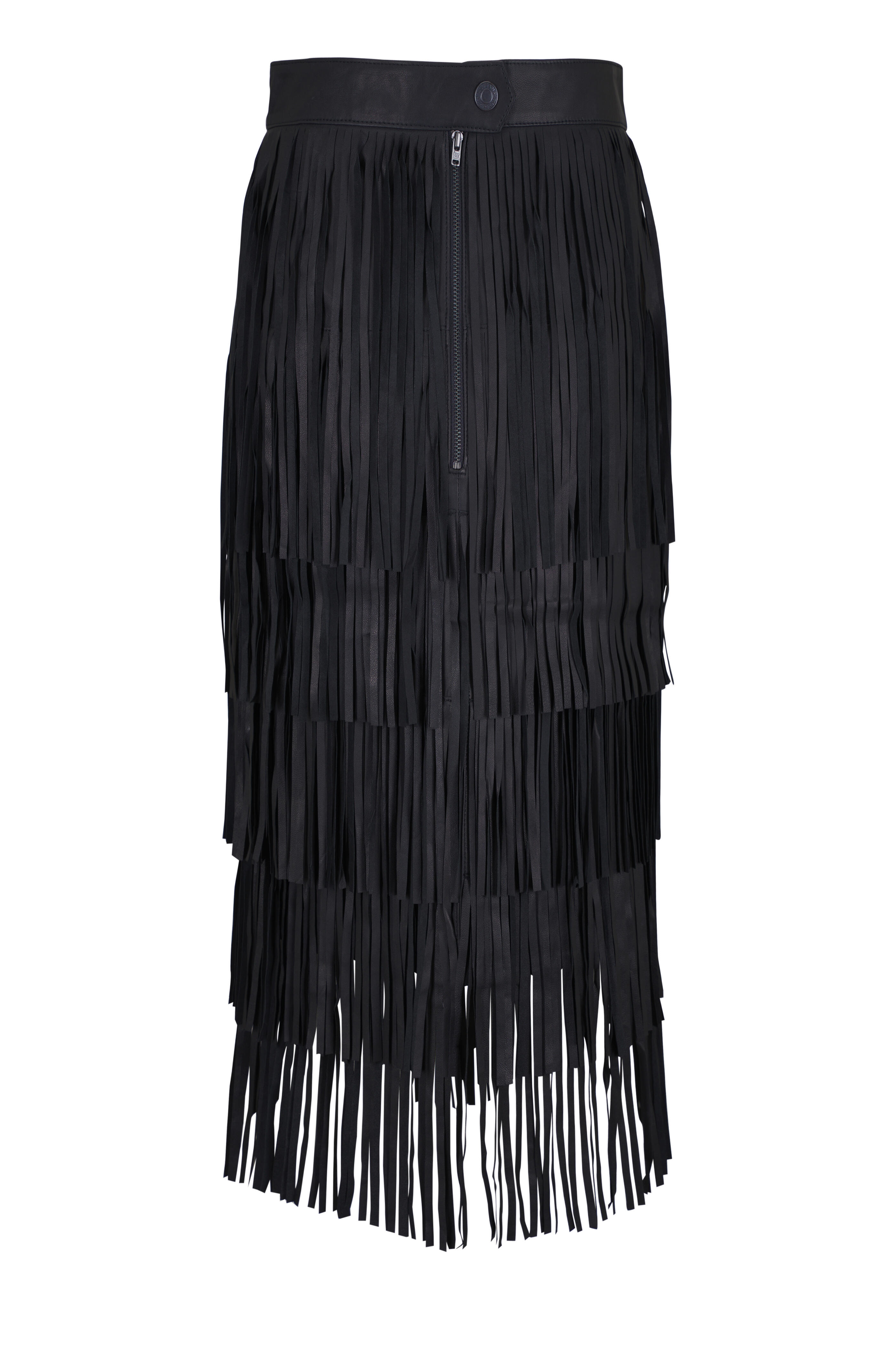 Centered back zipper and snap closure. Imported. 100% leather. Dry clean.