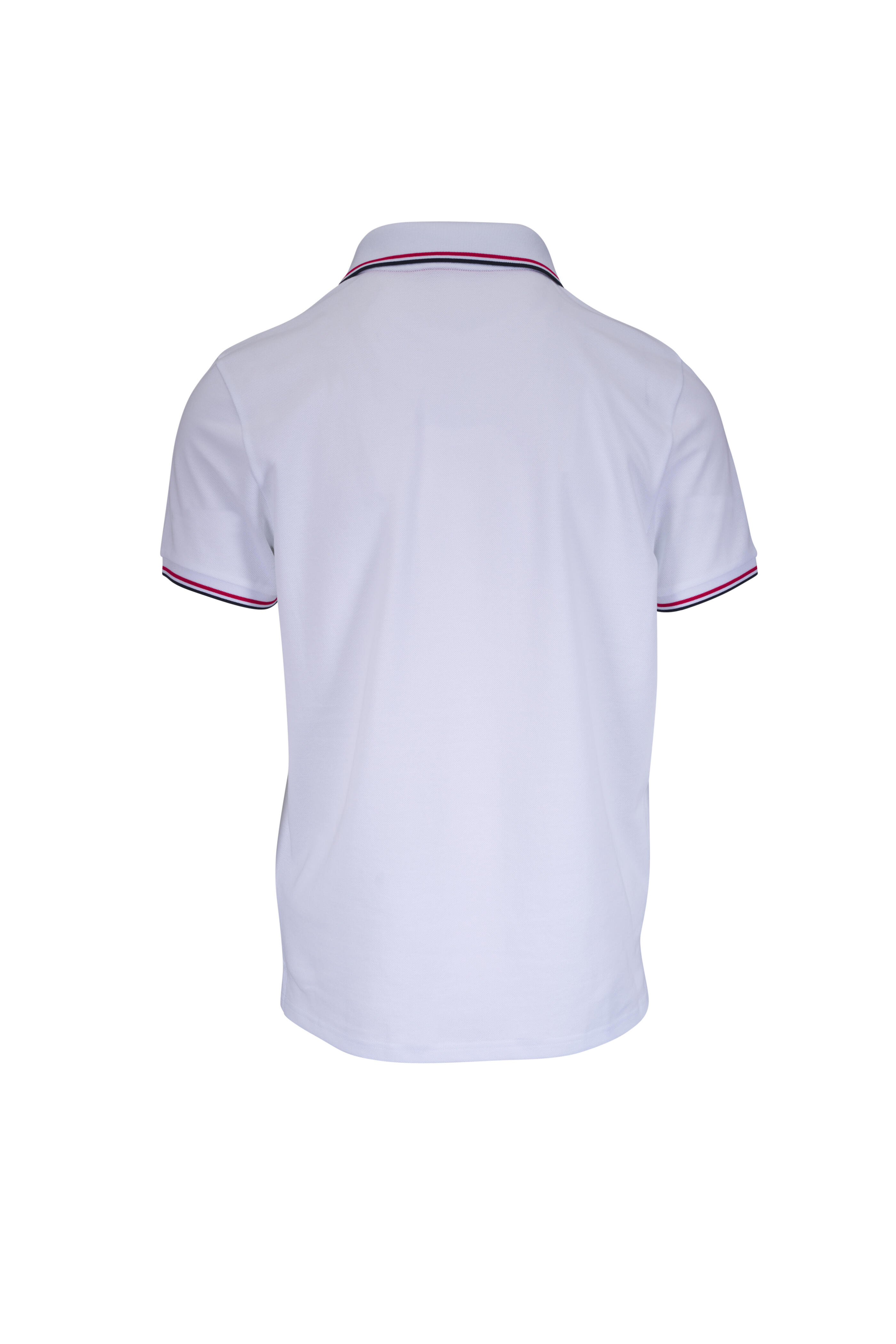 Spread collar. Three button closure. Ribbed trims. Embossed logo on left. Vented hem. Imported. Shoulder to hem 28" (size l). 100% Cotton. Machine wash.