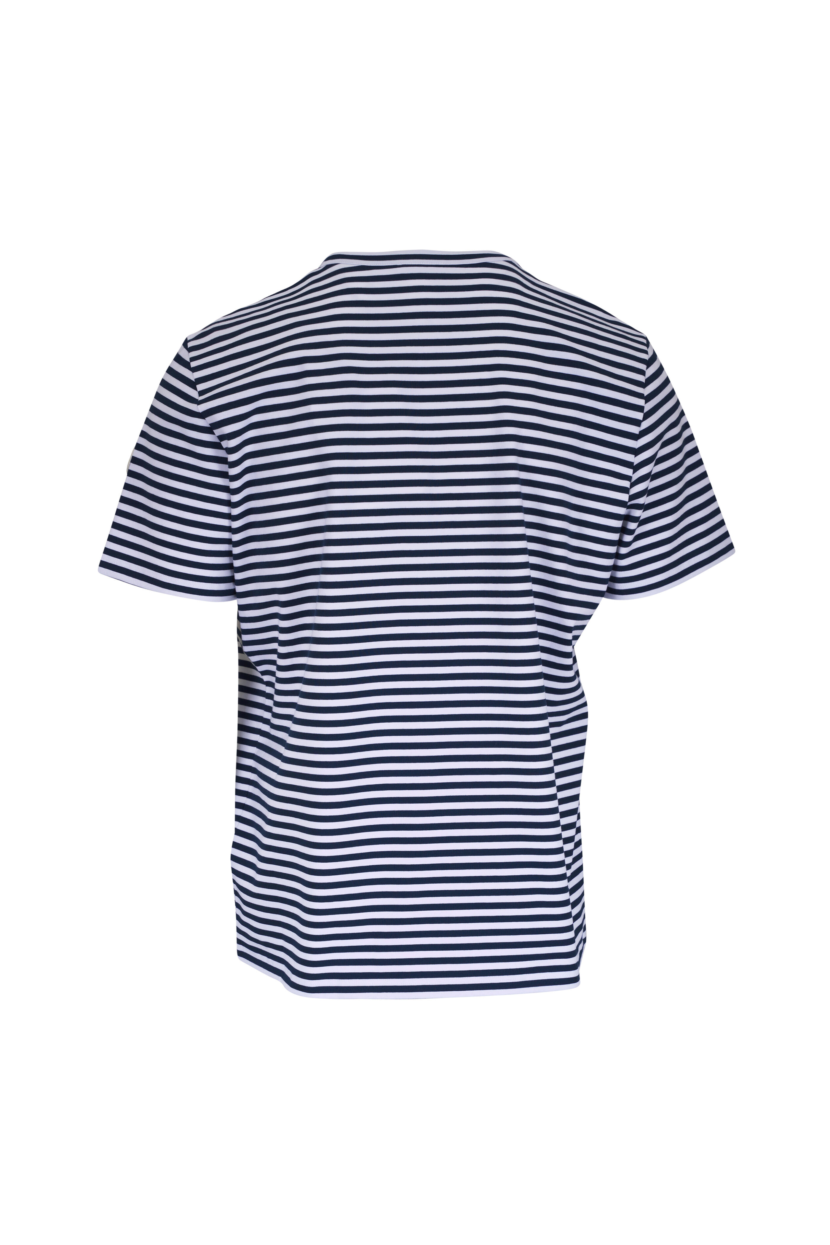 Navy & White Stripe Stretch Cotton T-Shirt