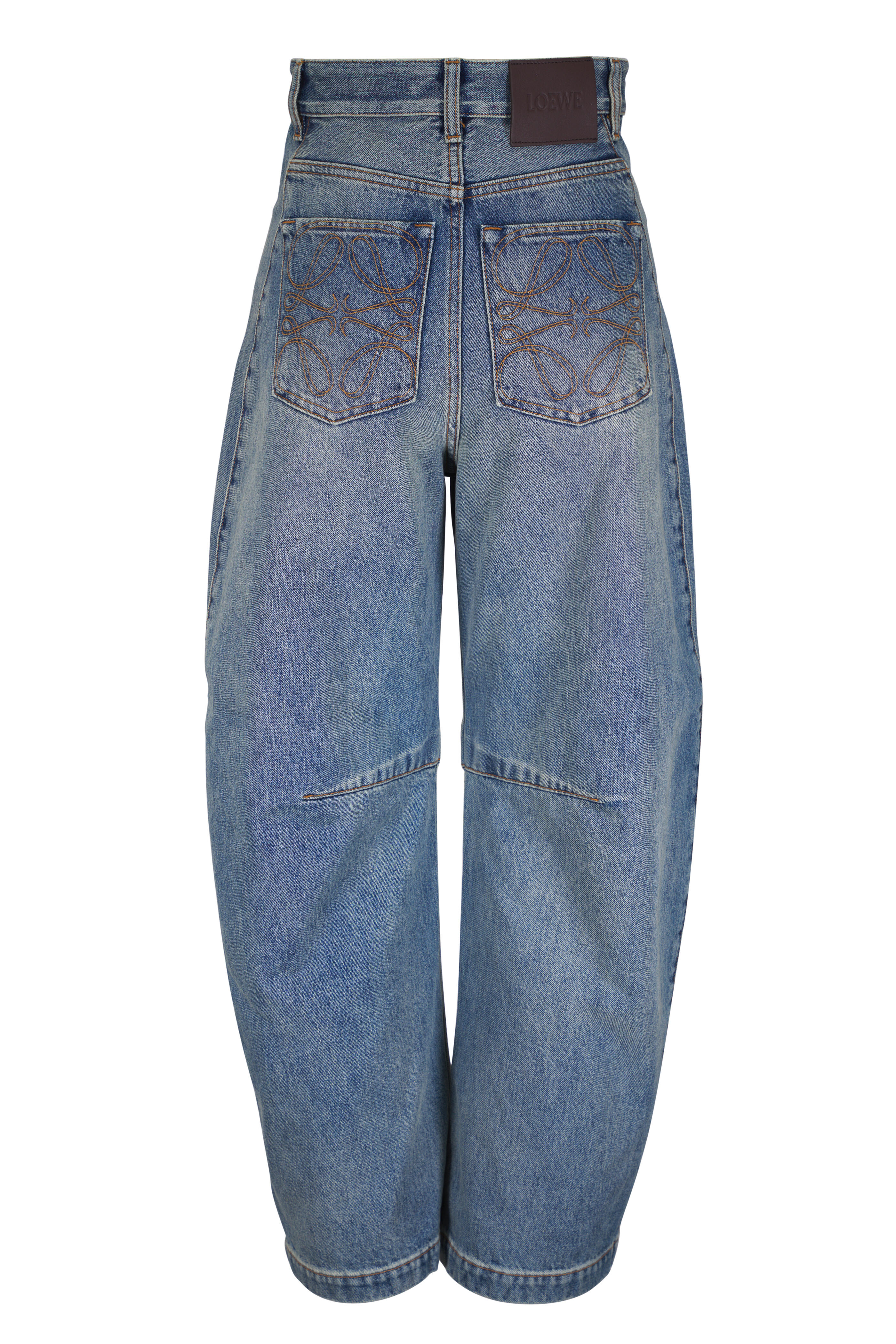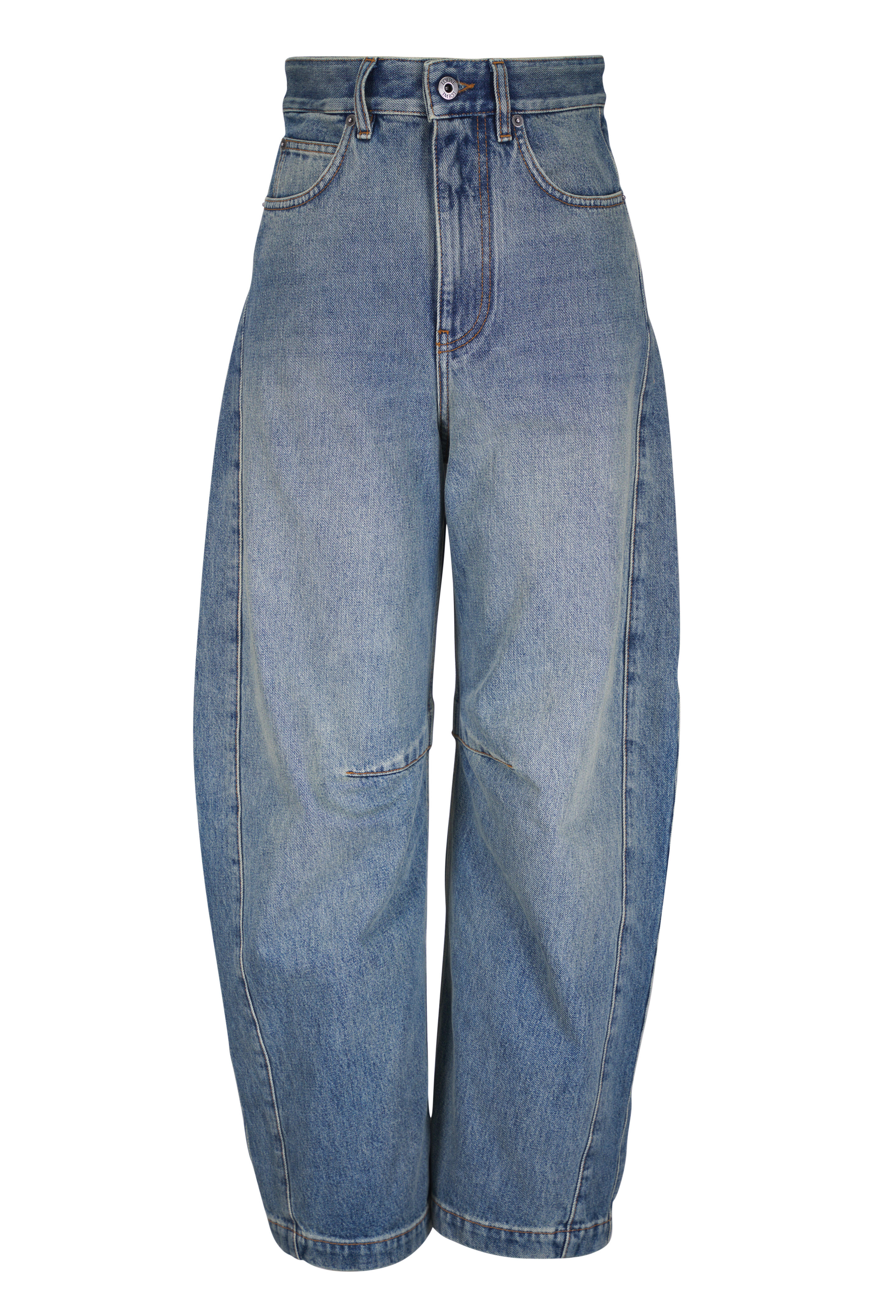 Zip‑fly with button. Five‑pocket styling. Barrel‑leg silhouette. Made in Italy. 100% cotton. Machine wash.