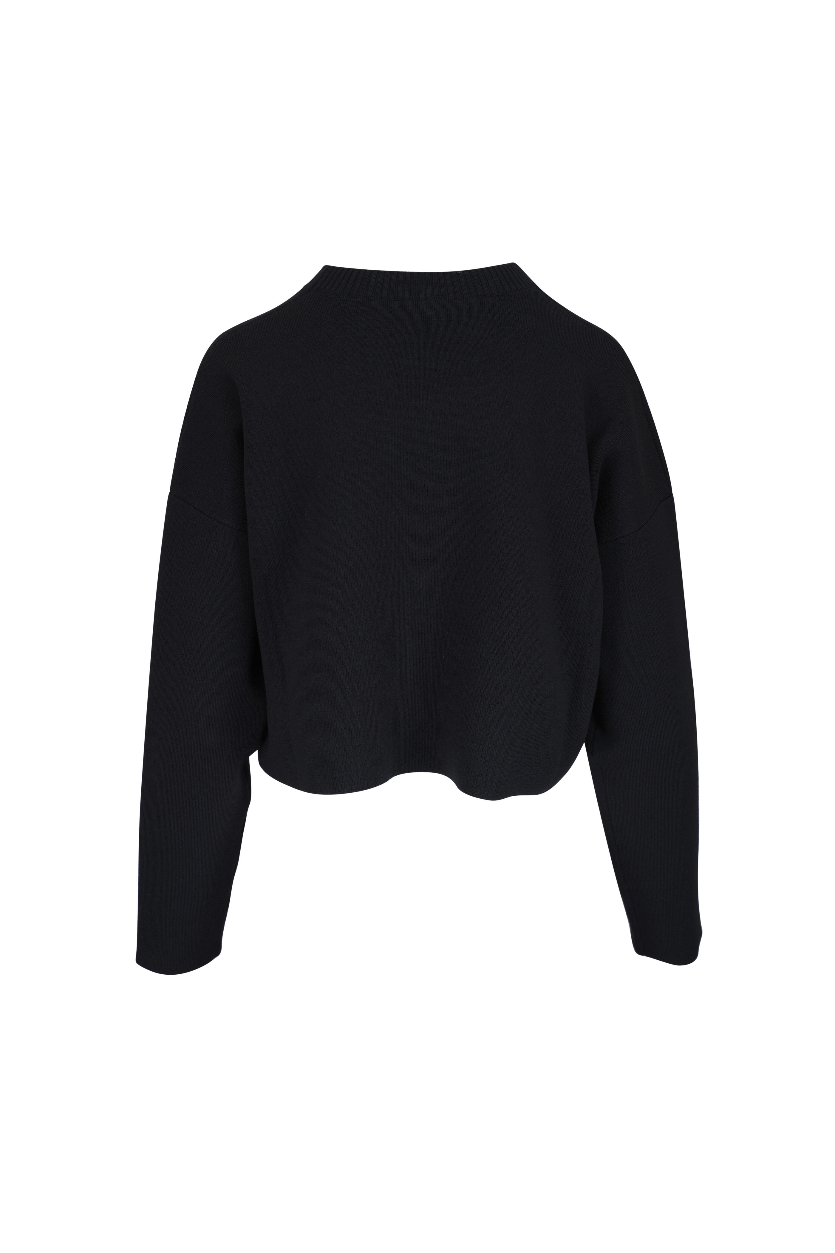Crew neckline. Slip on style. Ribbed knit trim. Hand-stitched logo on the hip. Straight hem. Made in Italy. 57% wool, 25% viscose, 17% polyamide, 1% elastane. Dry clean.