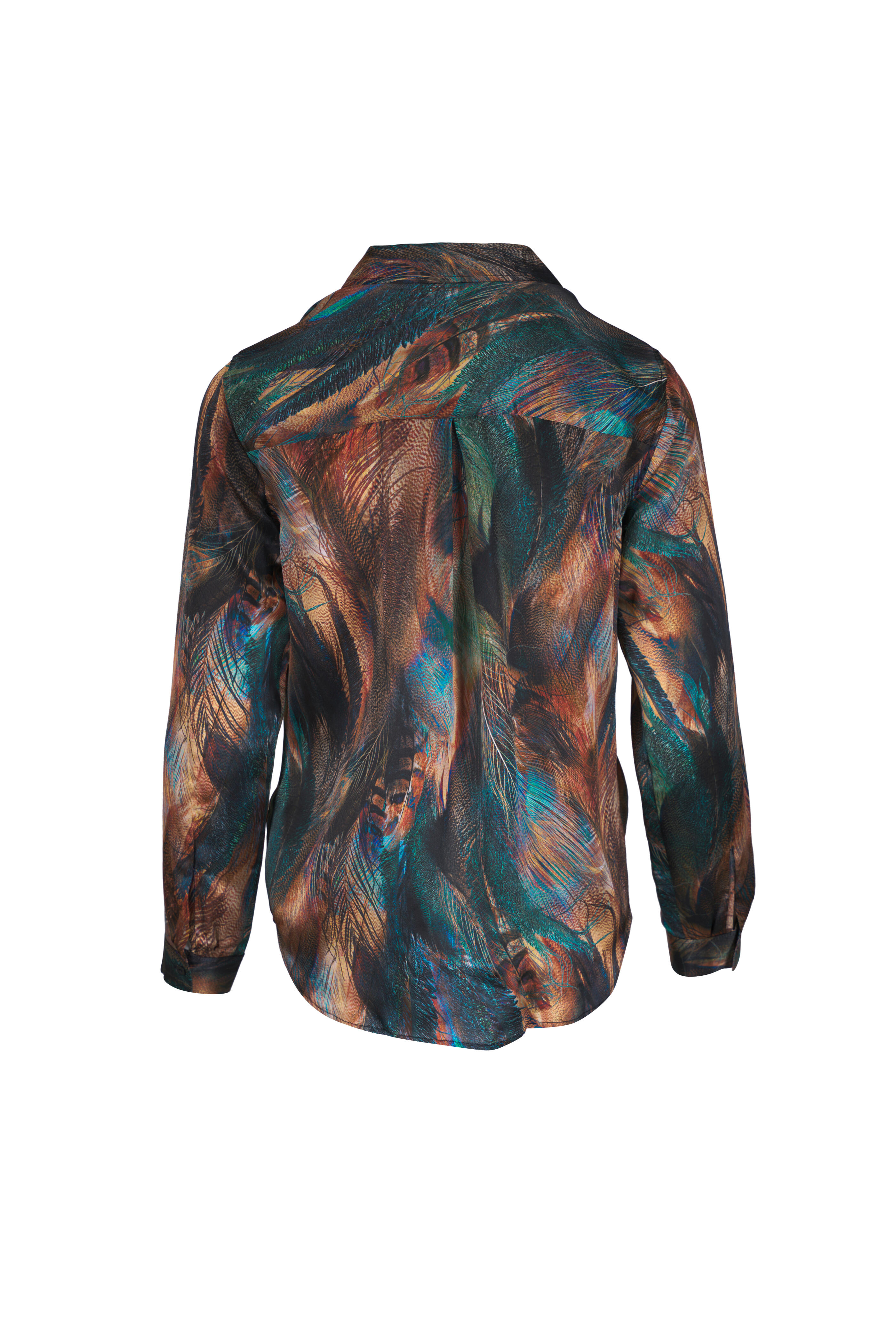 Tyler Teal Feather Print Silk Blouse