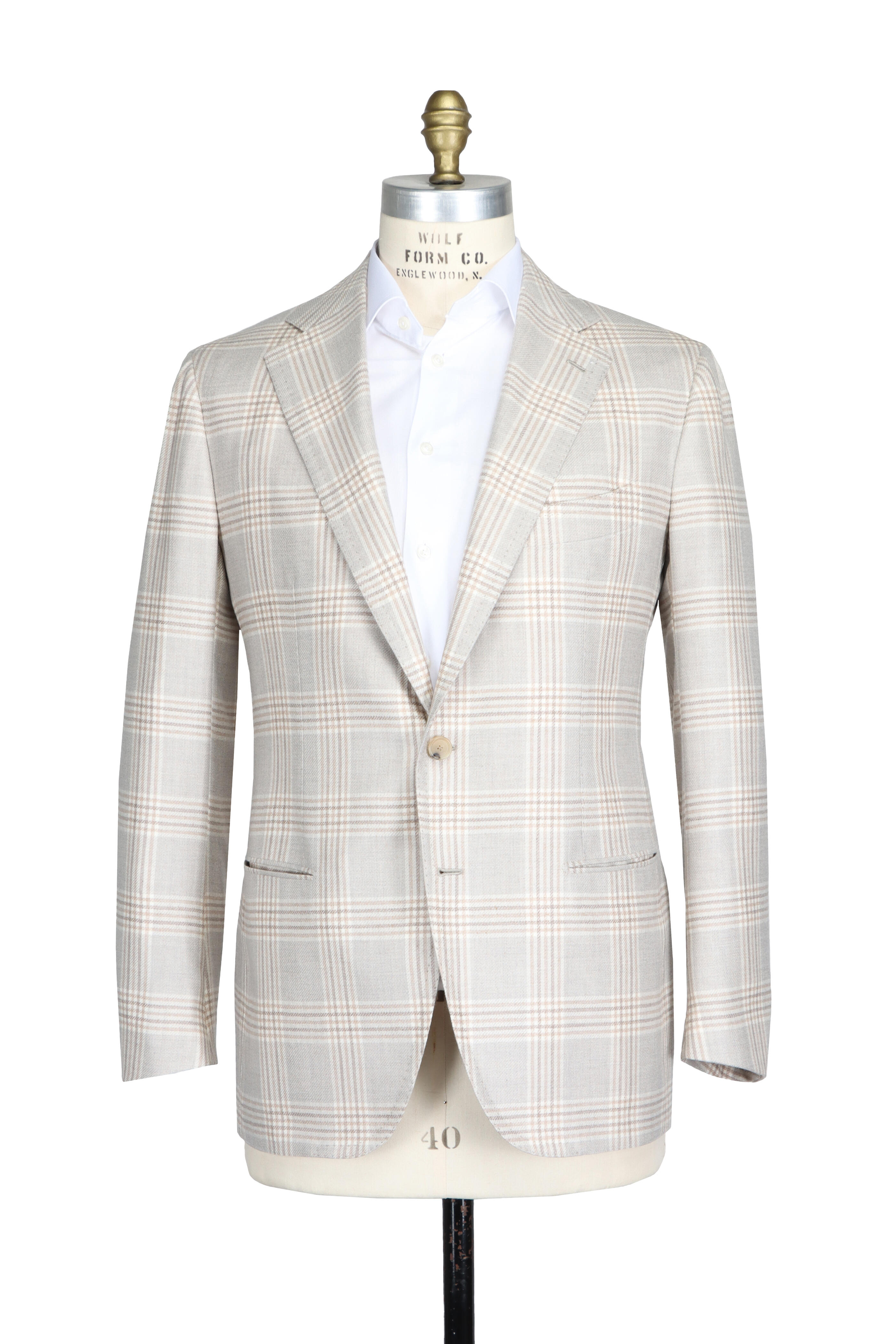 Cream & Tan Cashmere & Silk Plaid Sportcoat