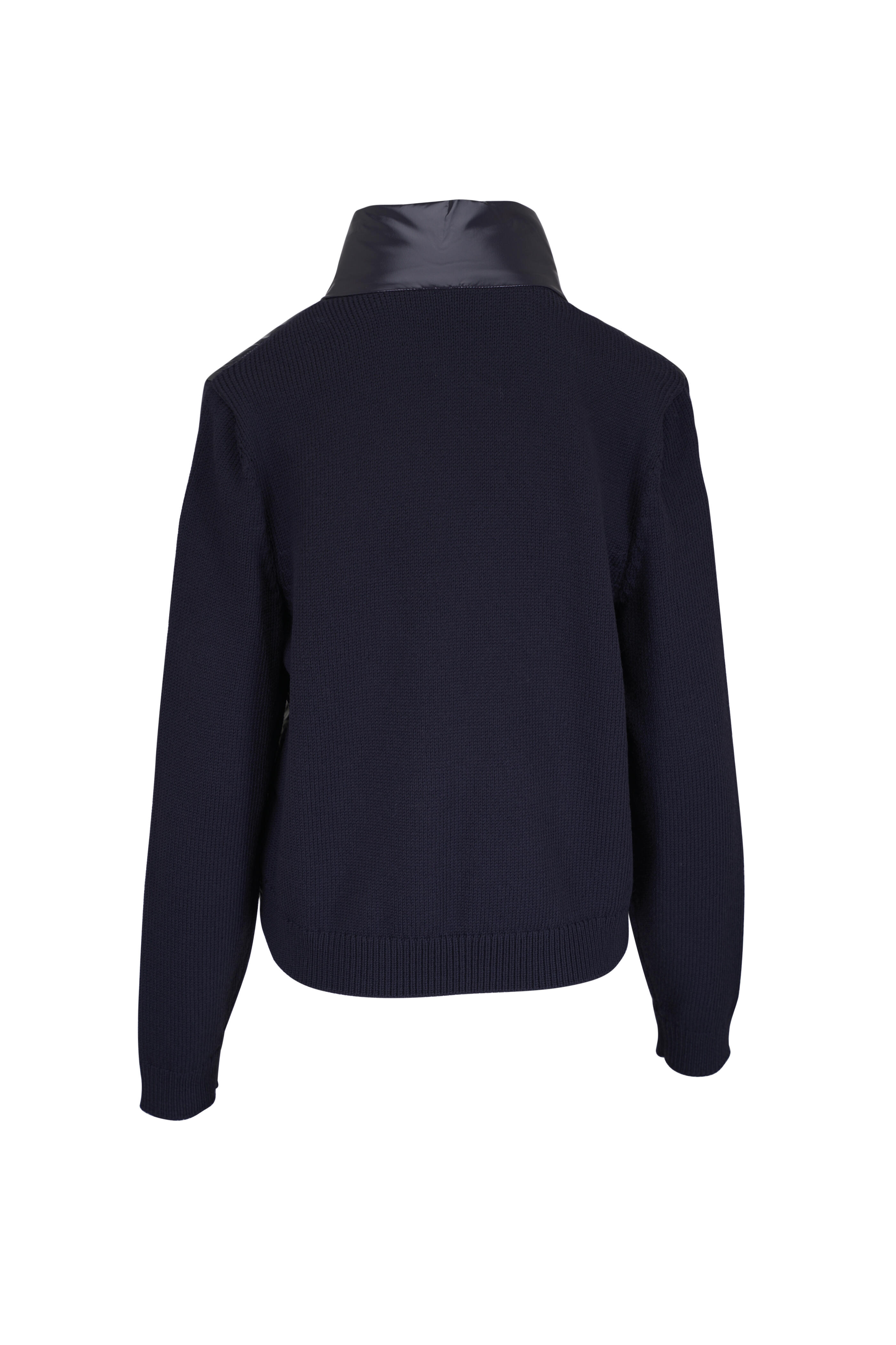 Stand collar. Two way front zip. Side zip pockets. Down-filled front. Imported. Front: 100% polyamide; base fabric: 100% virgin wool; front lining: 100% polyamide; fill: 90% down, 10% feather. Dry clean.