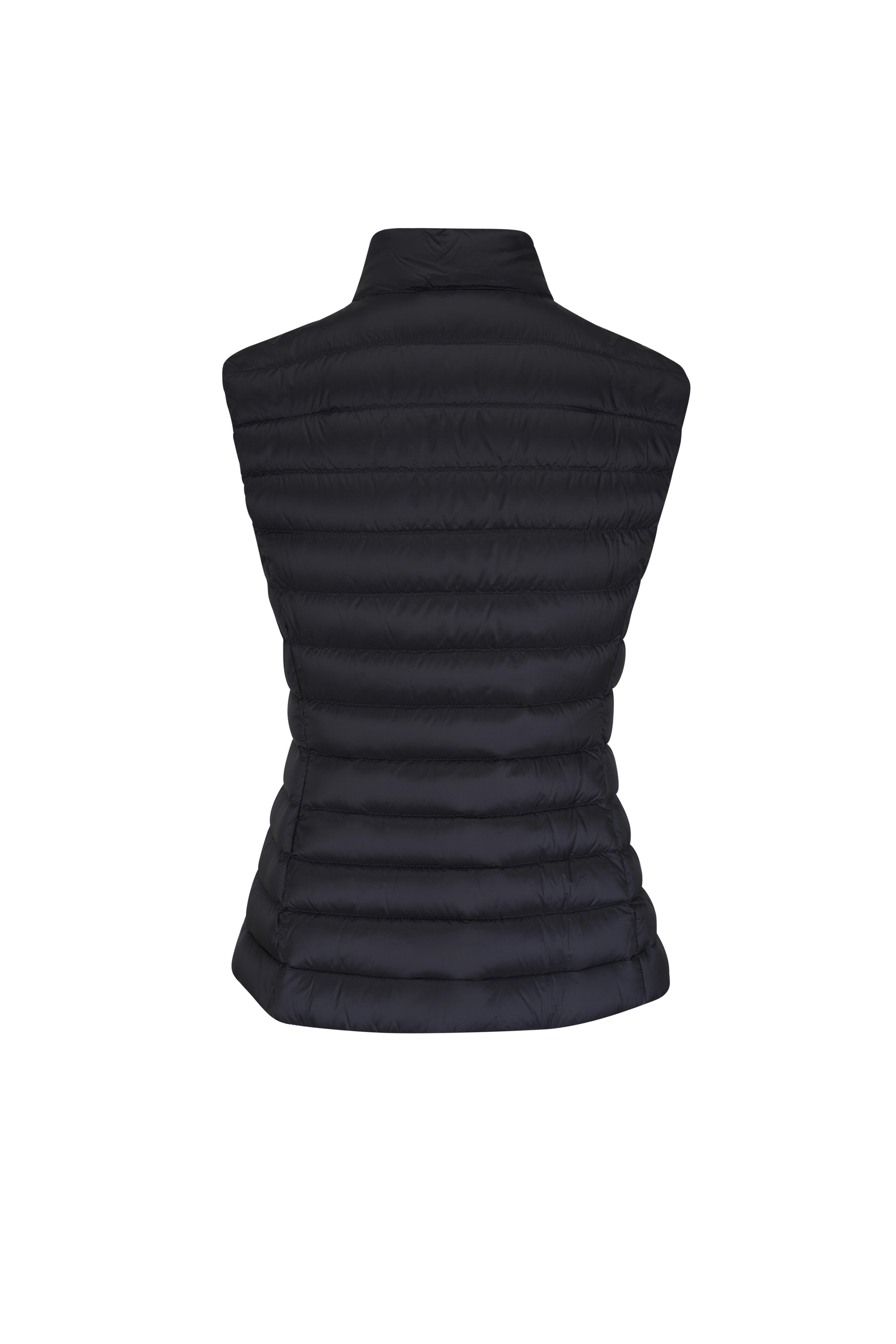 Stand collar with snap-button closure. Side zip pockets on seams. Two-way front zip closure. Imported. 22½" shoulder to hem (size 0). 100% polyamide; fill: 90% goose down, 10% feathers. Dry clean.