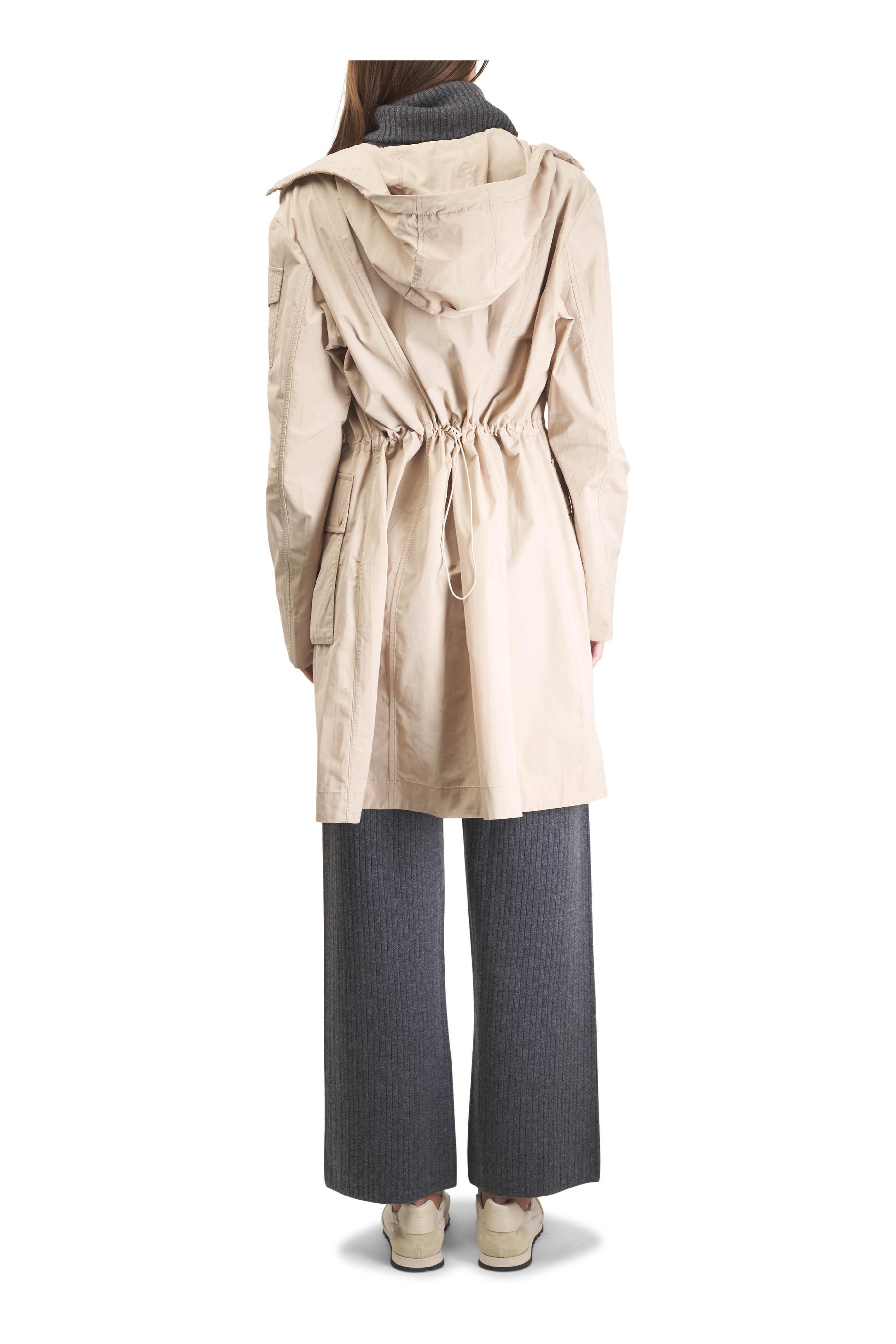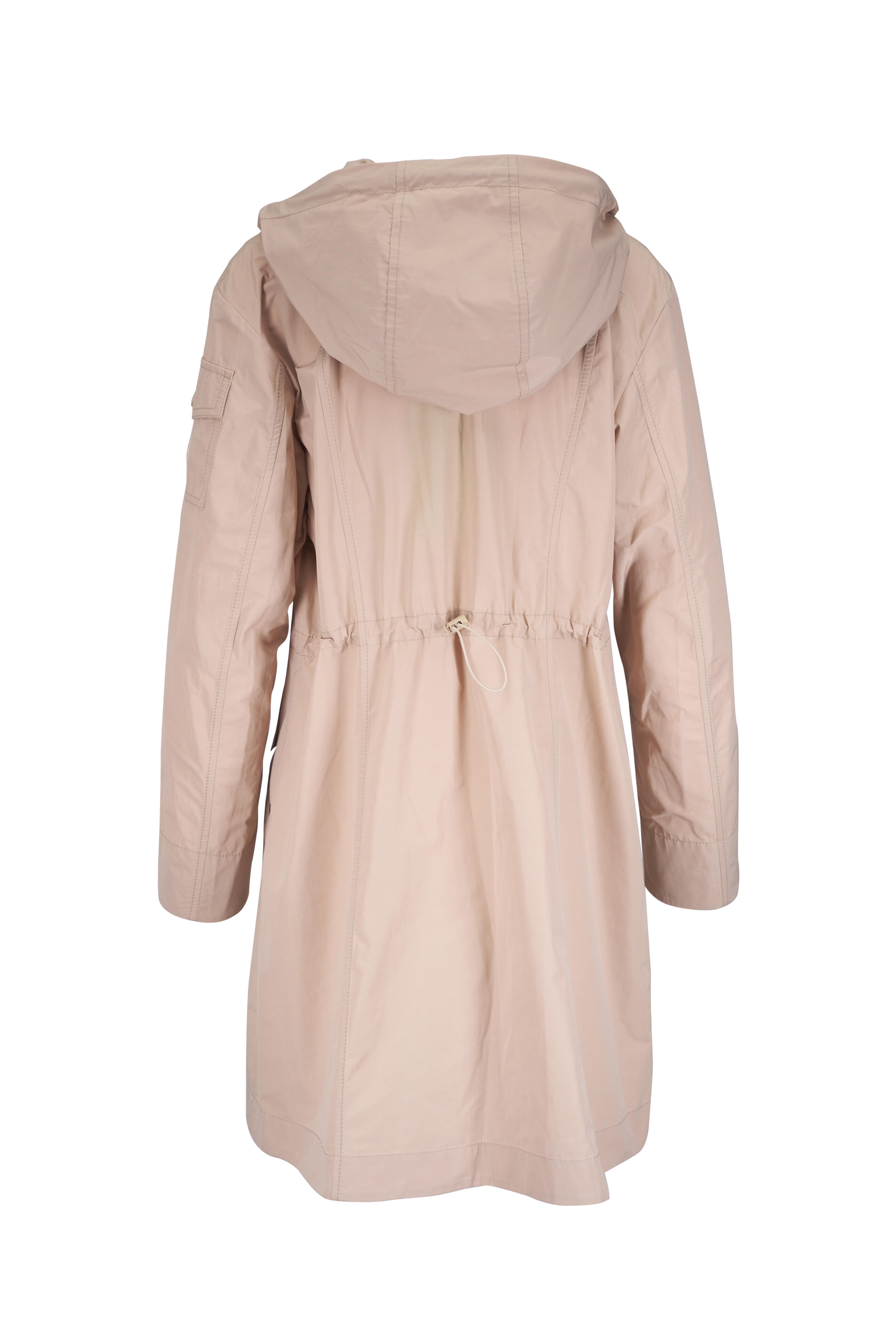 Attached drawstring hood. Concealed front zip. Lower snap patch pockets; one arm snap patch pocket. Imported. 37" shoulder to hem (size 10). 63% polyester, 37% cotton. Machine wash.