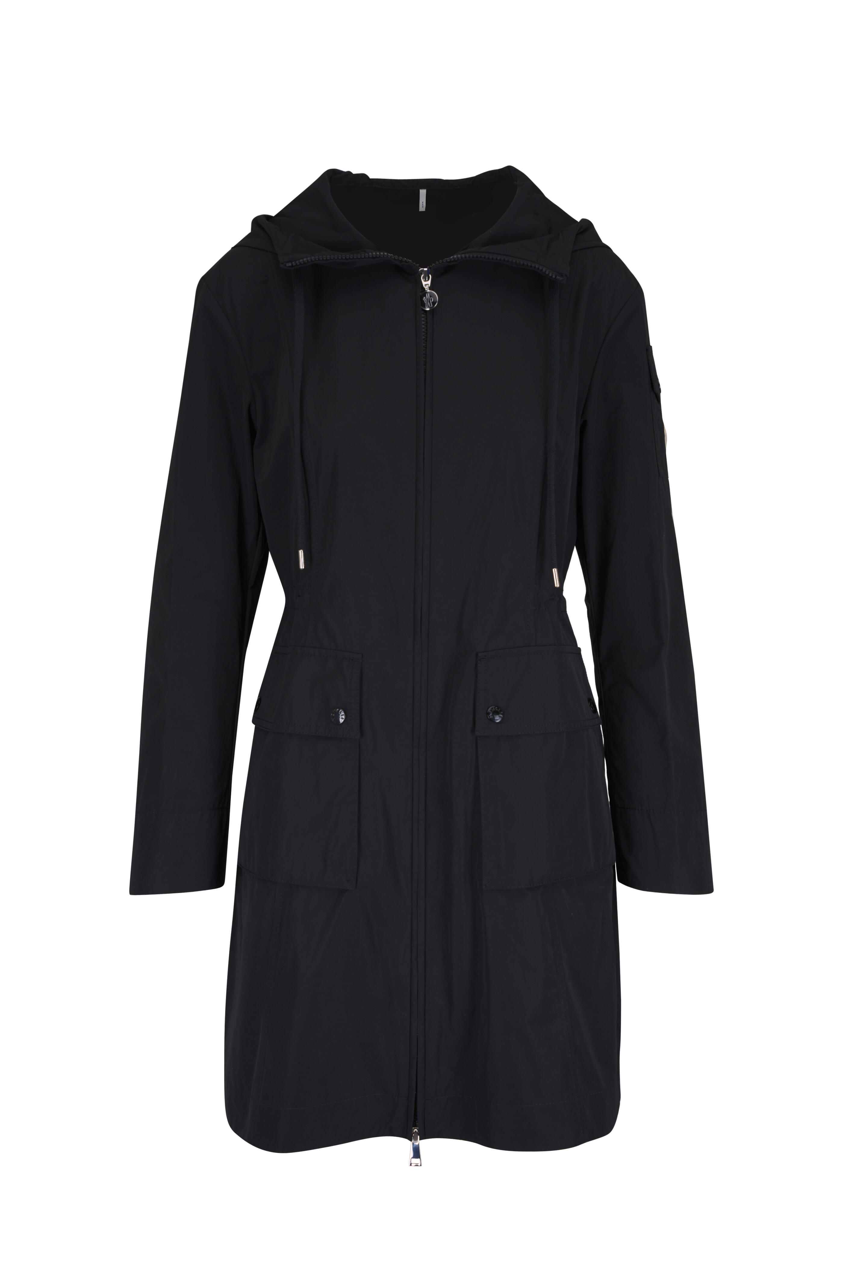 Fixed hood with drawstring. Front two-way zip placket. Lower patch pockets with snap button closure; sleeve pocket. Waistband with drawstring fastening. Imported. Approximately 35 ½" shoulder to hem (measurements taken from size 4). 60% polyester, 40% cotton. Machine wash.