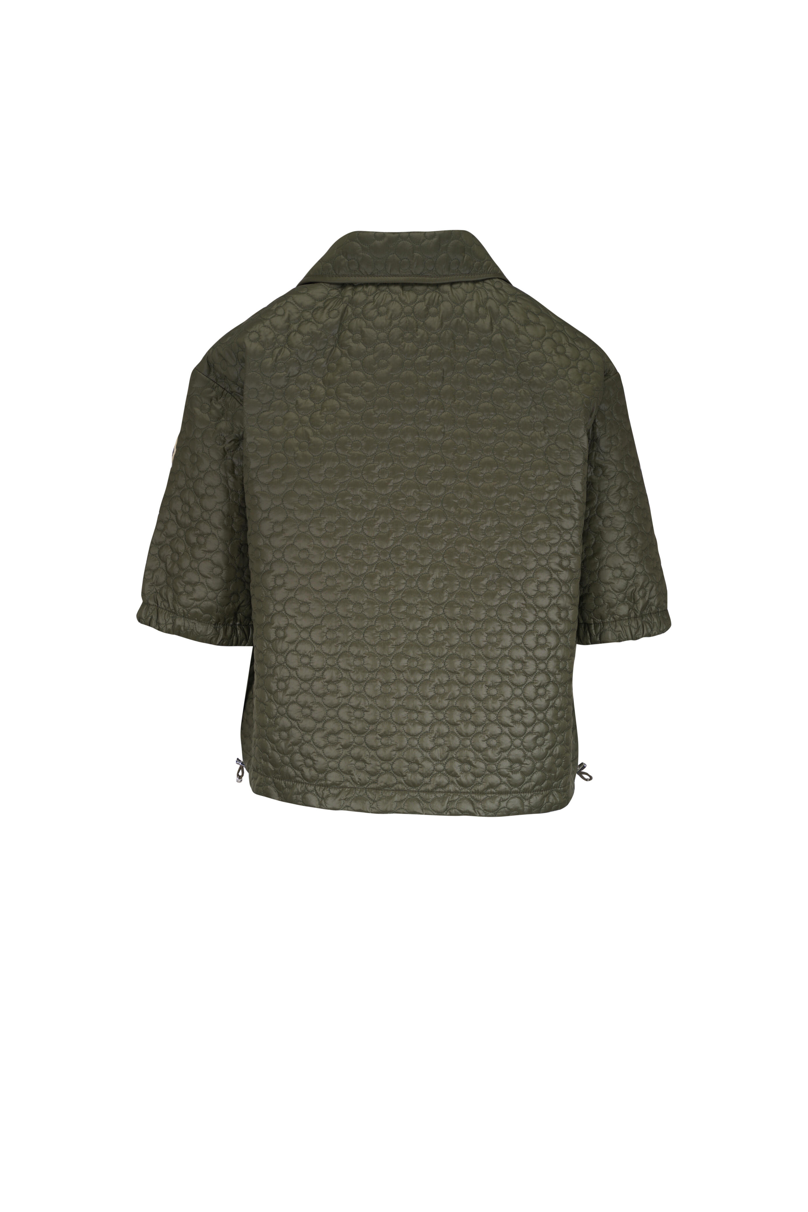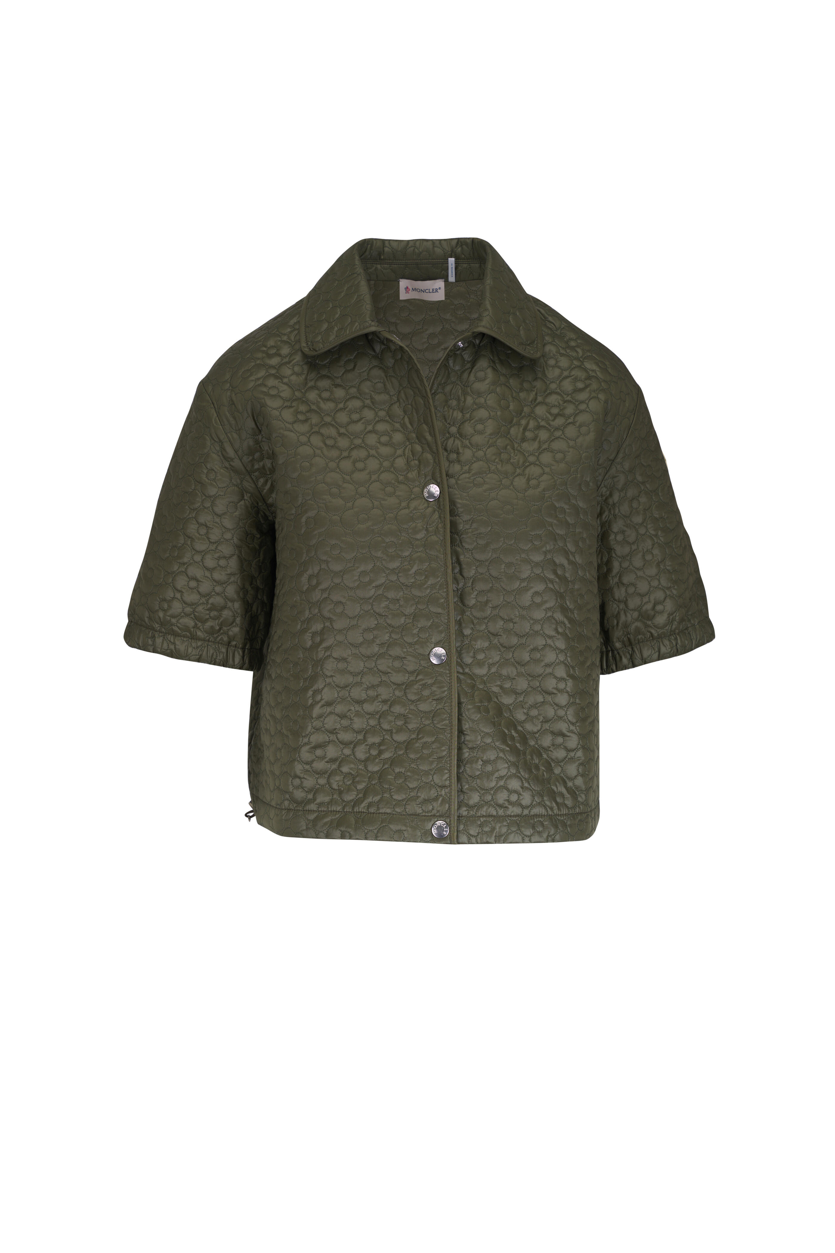 Spread collar. Front snap button placket. Elasticized cuffs. Adjustable drawstring at waistband. Imported. Approximately 21" shoulder to hem (measurements taken from size 6). 100% polyamide; fill: 100% polyester. Dry clean.