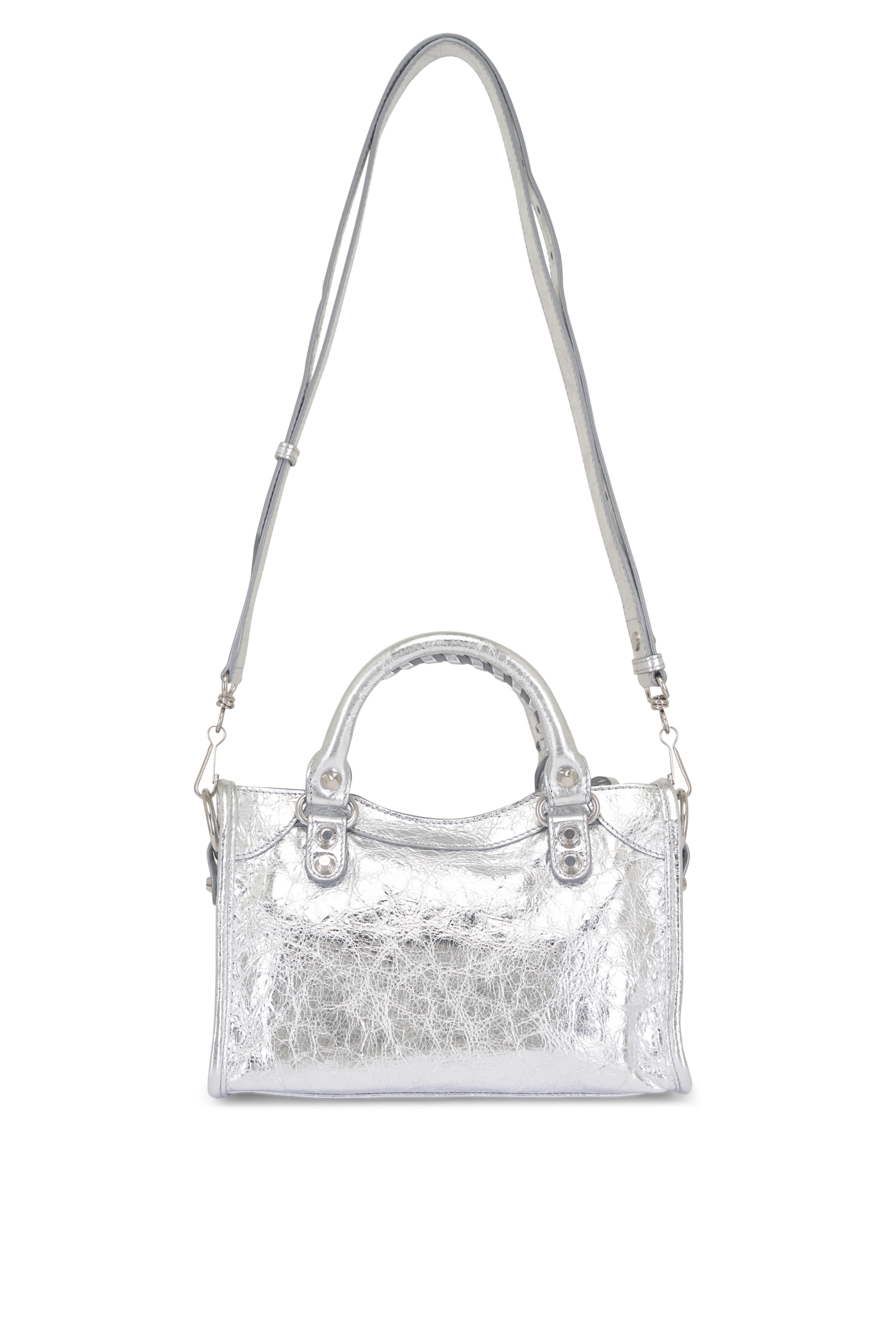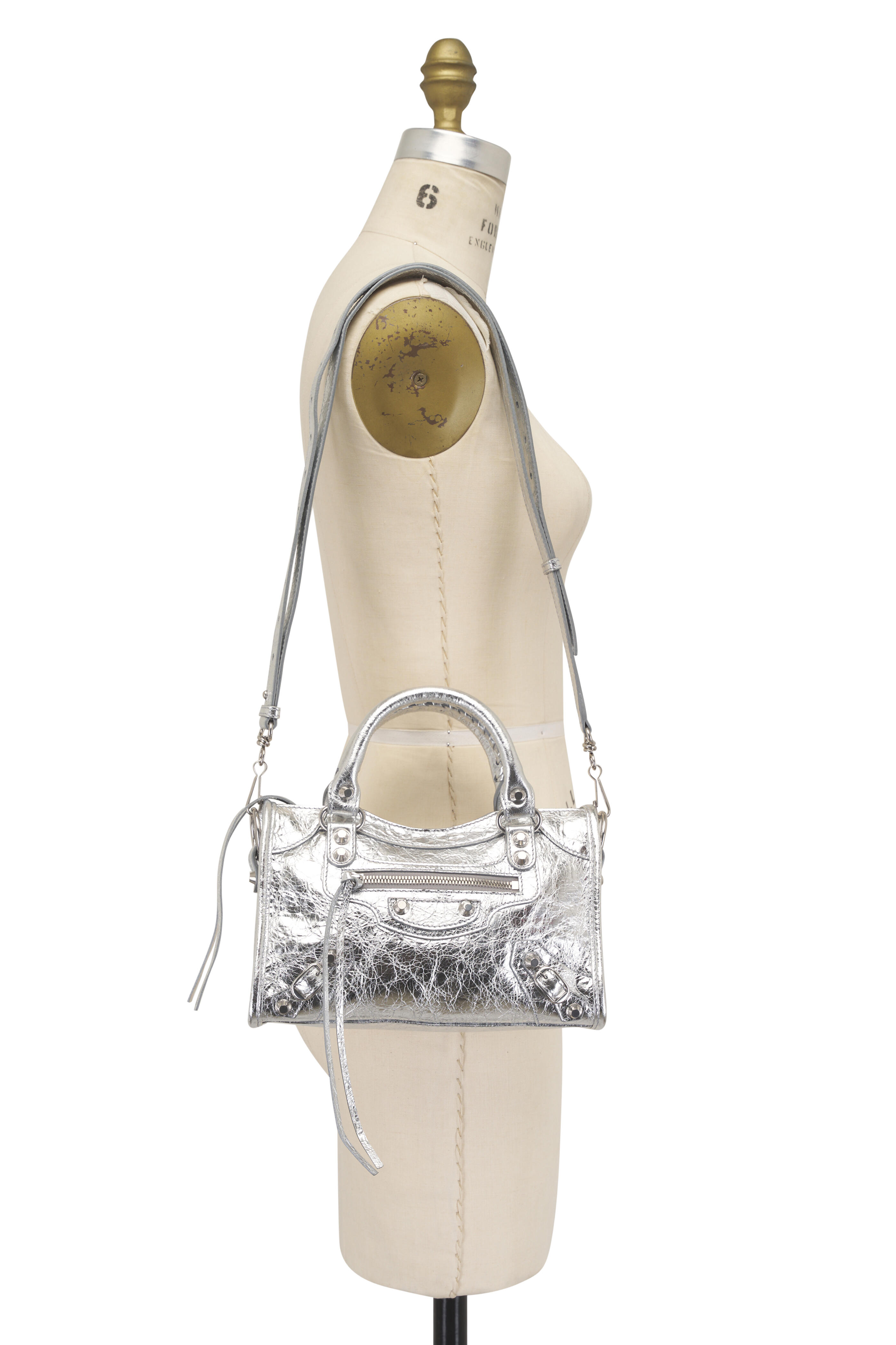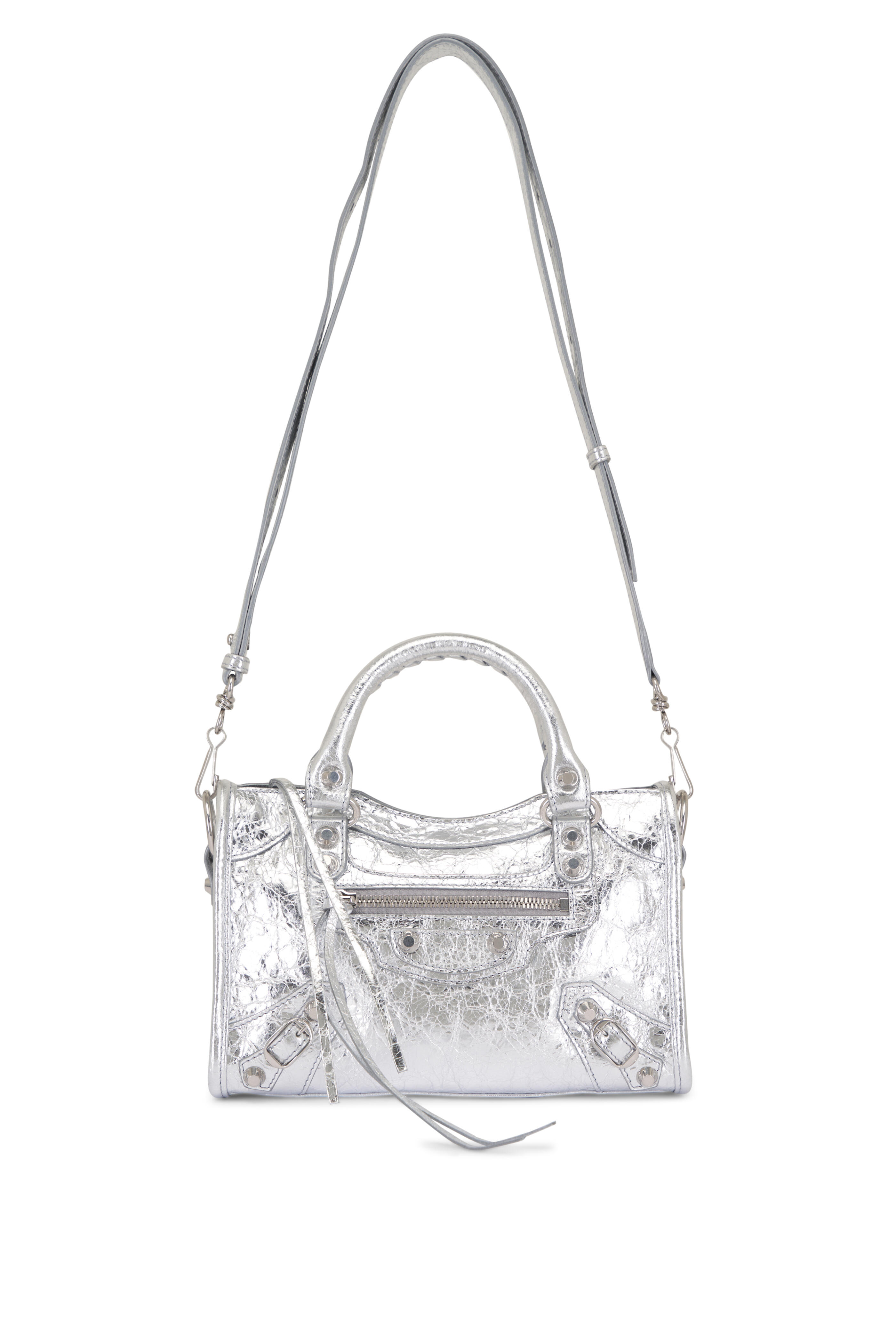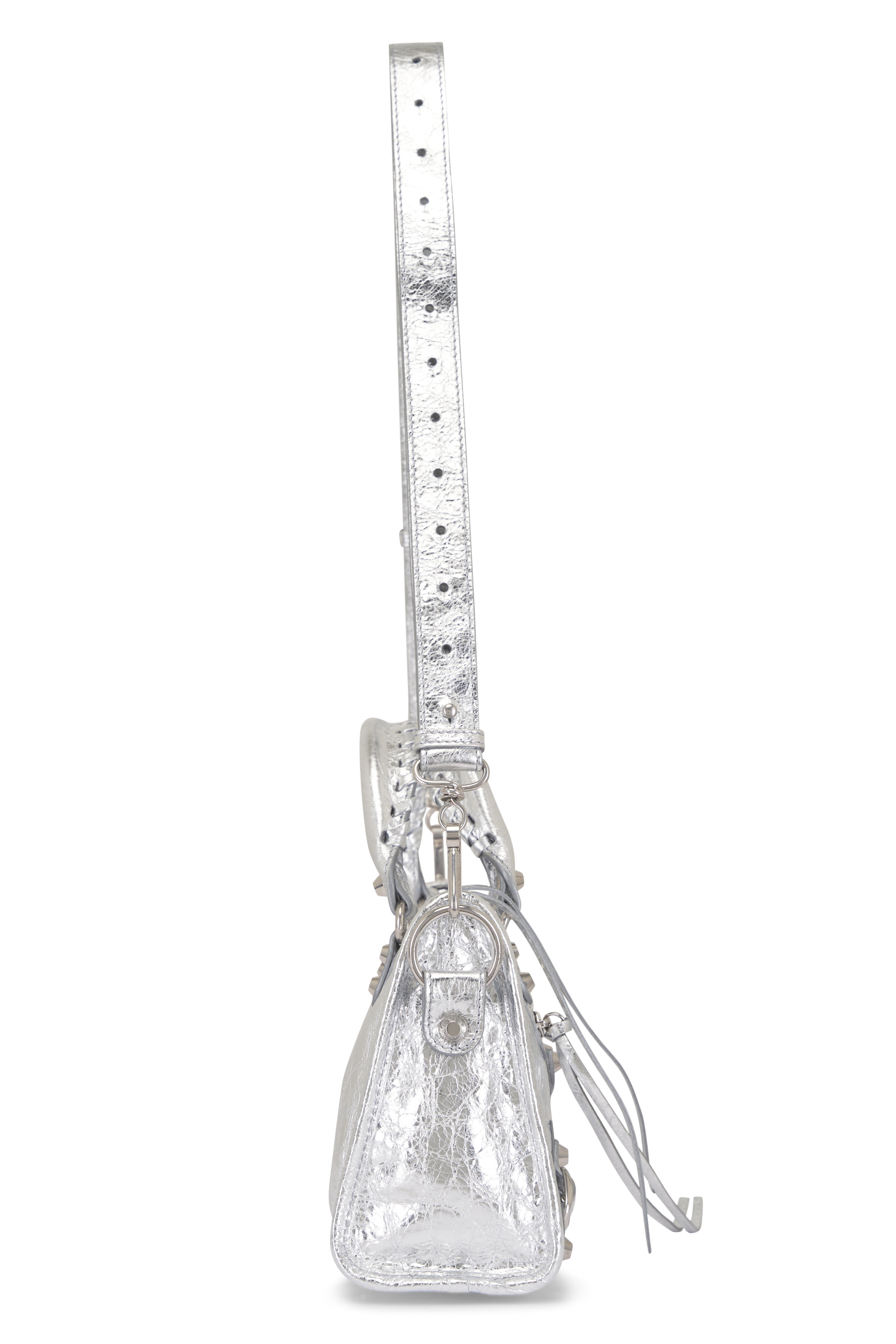 Arena Storico lambskin. Top zip closure; knotted leather puller. Dual leather hand-braided handles; removable and adjustable shoulder strap. Front zip pocket with knotted leather puller; one inner zipped pocket. Cotton canvas lining. Silver tone hardware. Made in Italy. Length: 24 cm | 9.45". Height: 16 cm | 6.3". Width: 6.5 cm | 2.5". Handle drop: 9 cm | 3.5". Strap drop: 55 cm | 21.6". Can fit the largest smartphones.