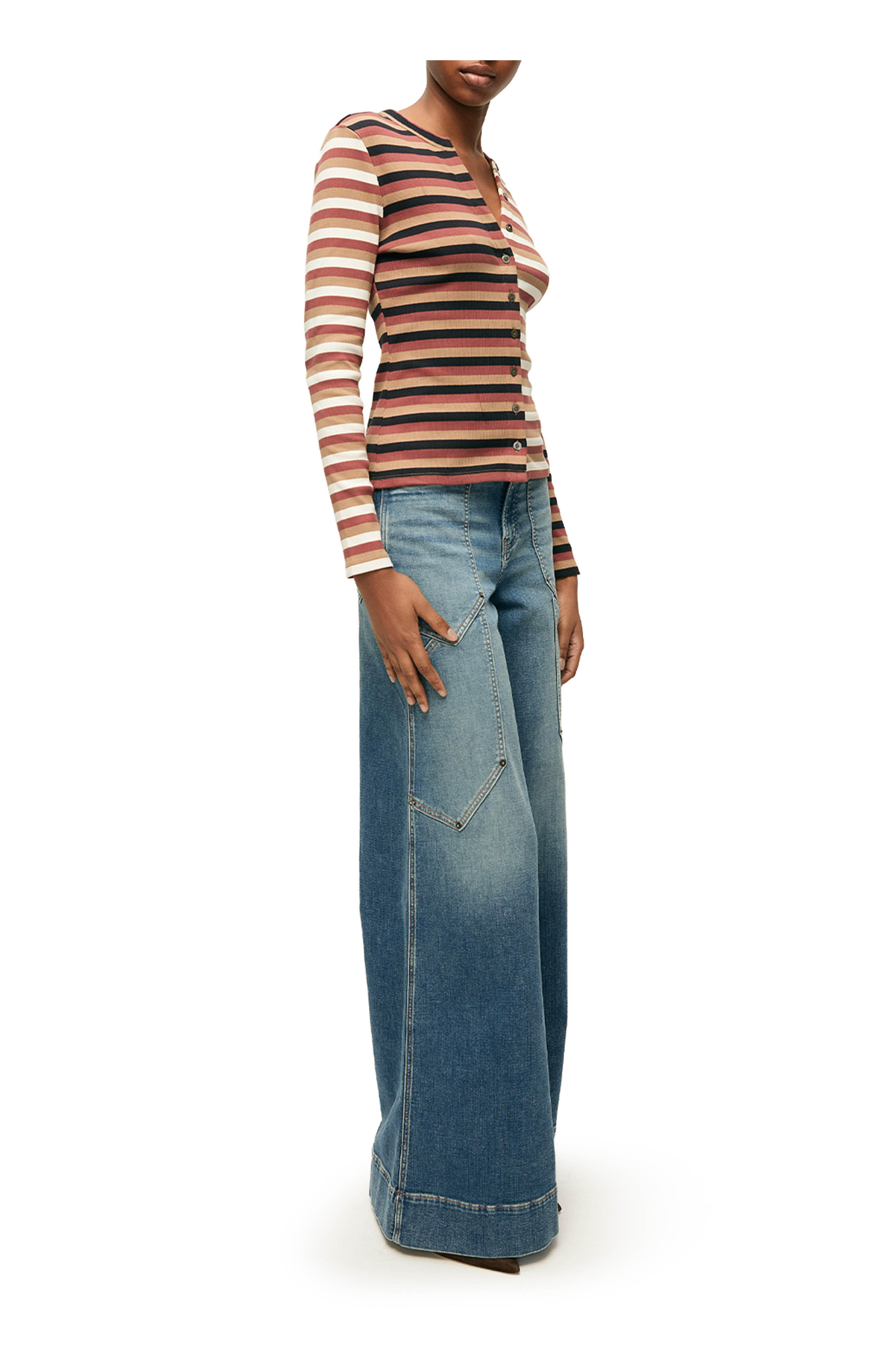 Dilia Malt, Navy & Red Oak Long Sleeve Top