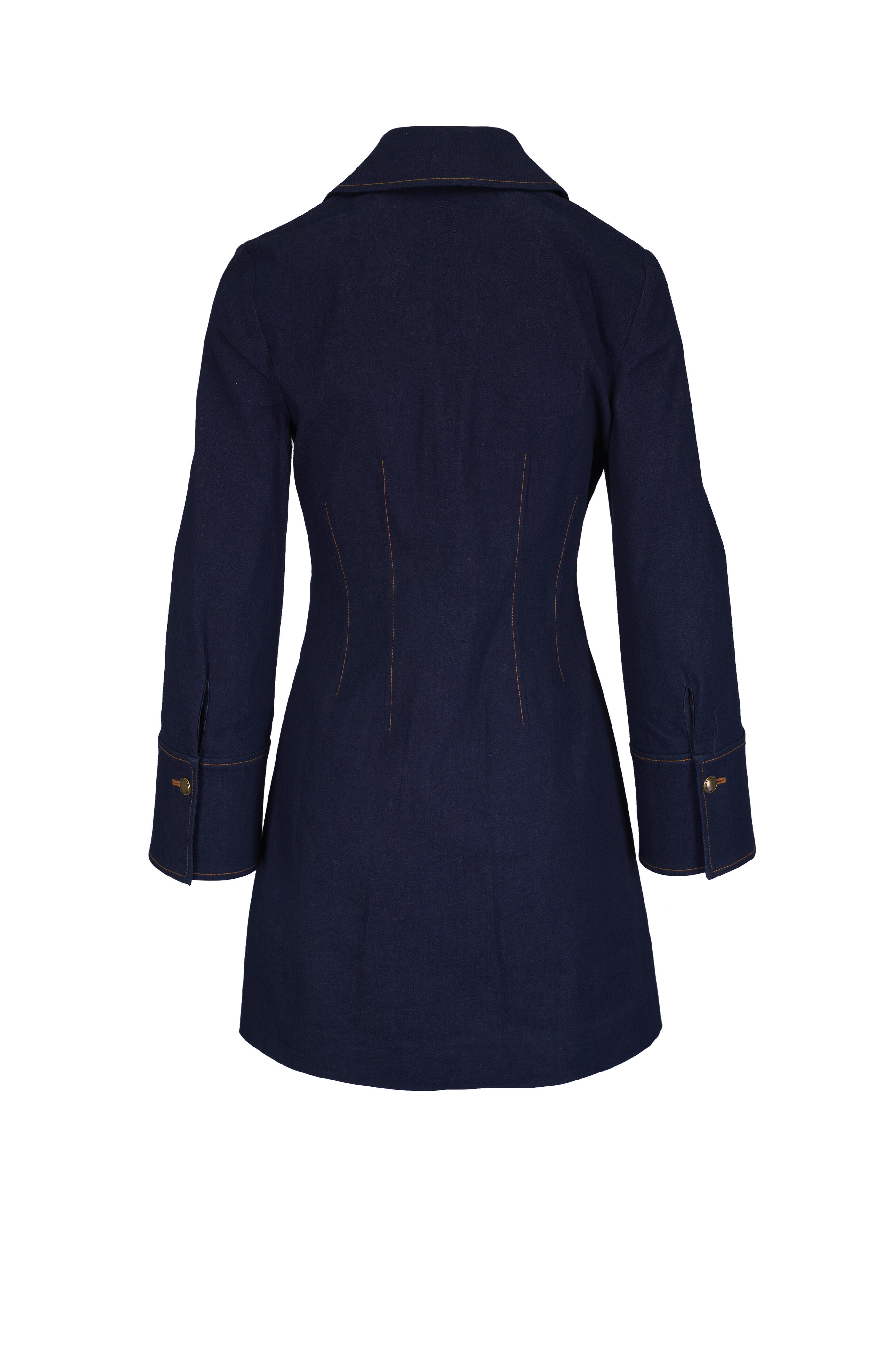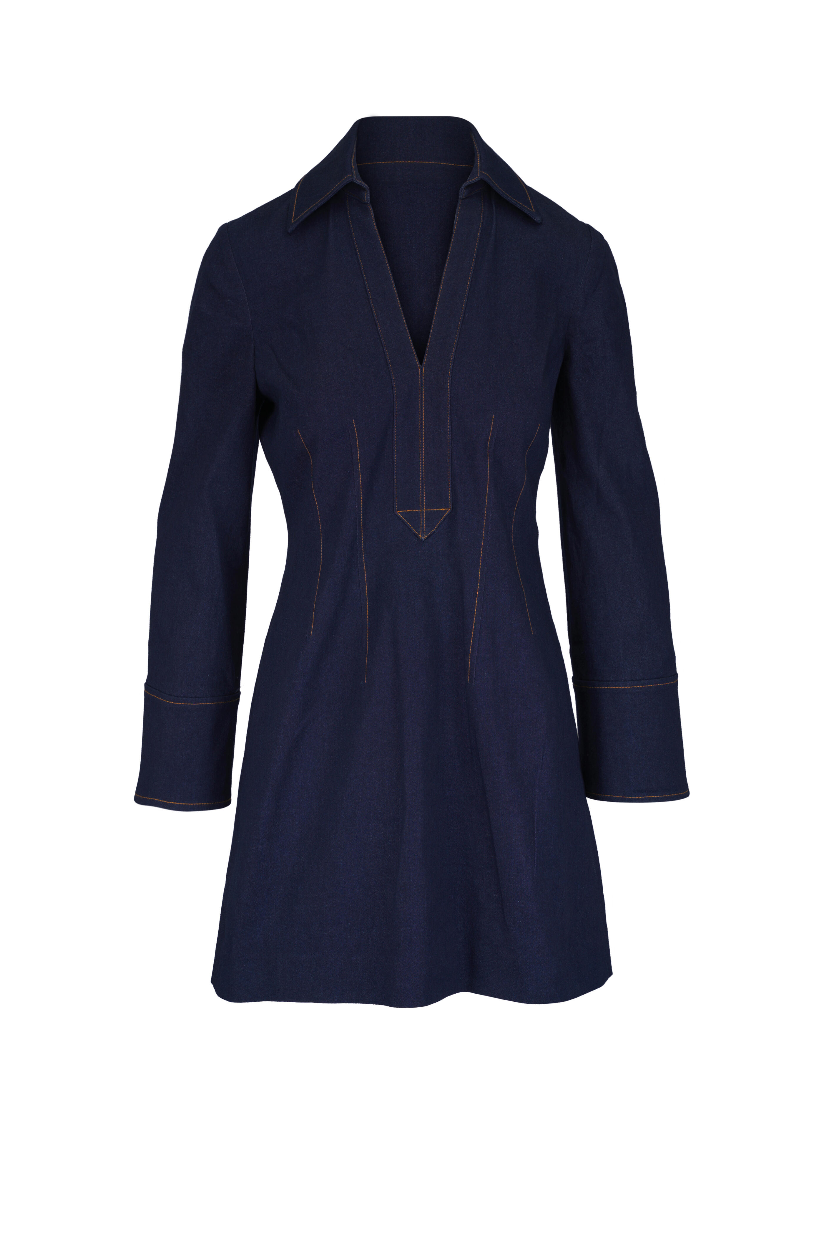 Spread collar. Split neckline. Buttonless half placket. Flared long sleeves. Single button elongated cuffs. Imported. Approximately 33.75" shoulder to hem (measurements taken from size 2). 75% cotton, 23% polyester, 2% elastane. Dry clean.