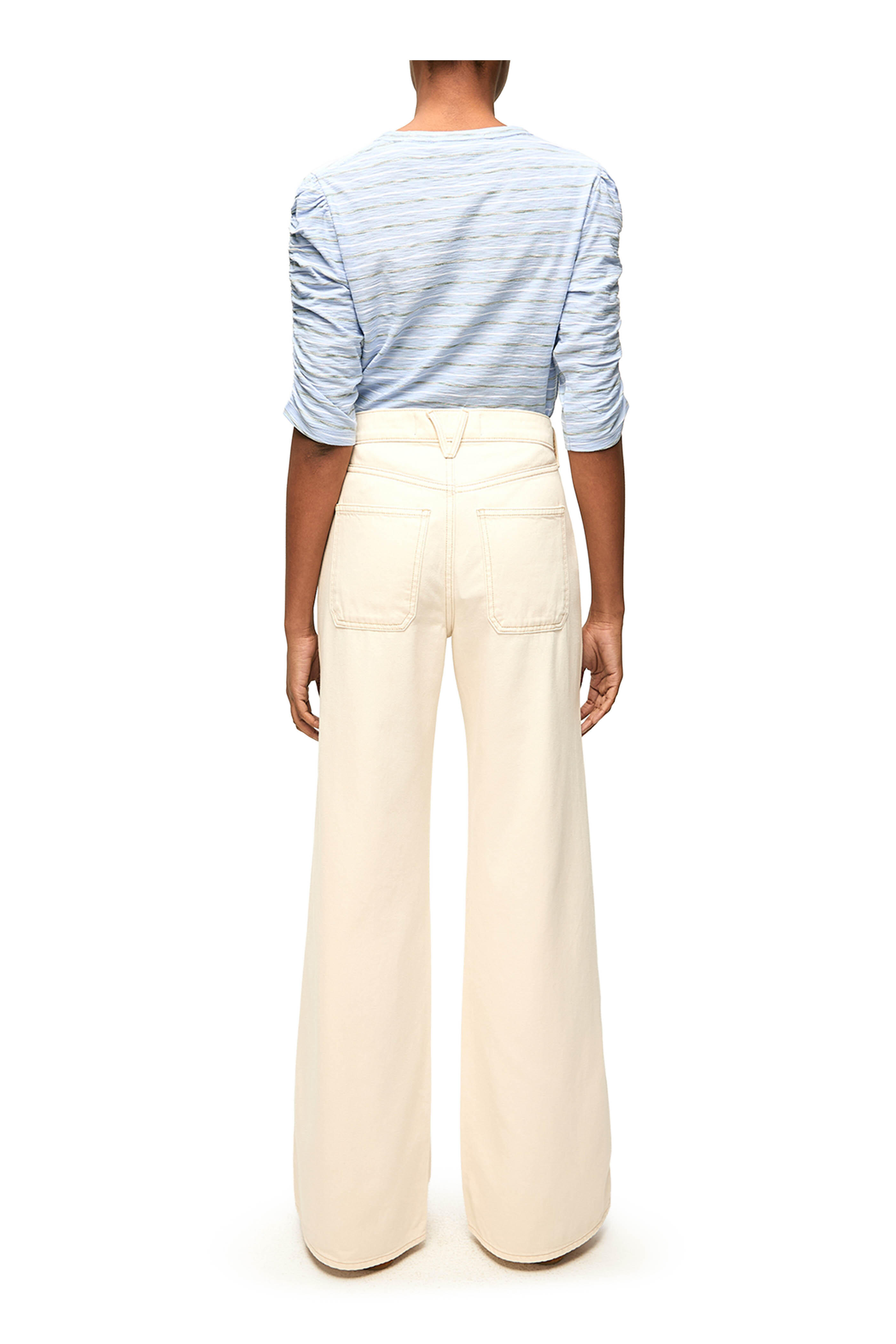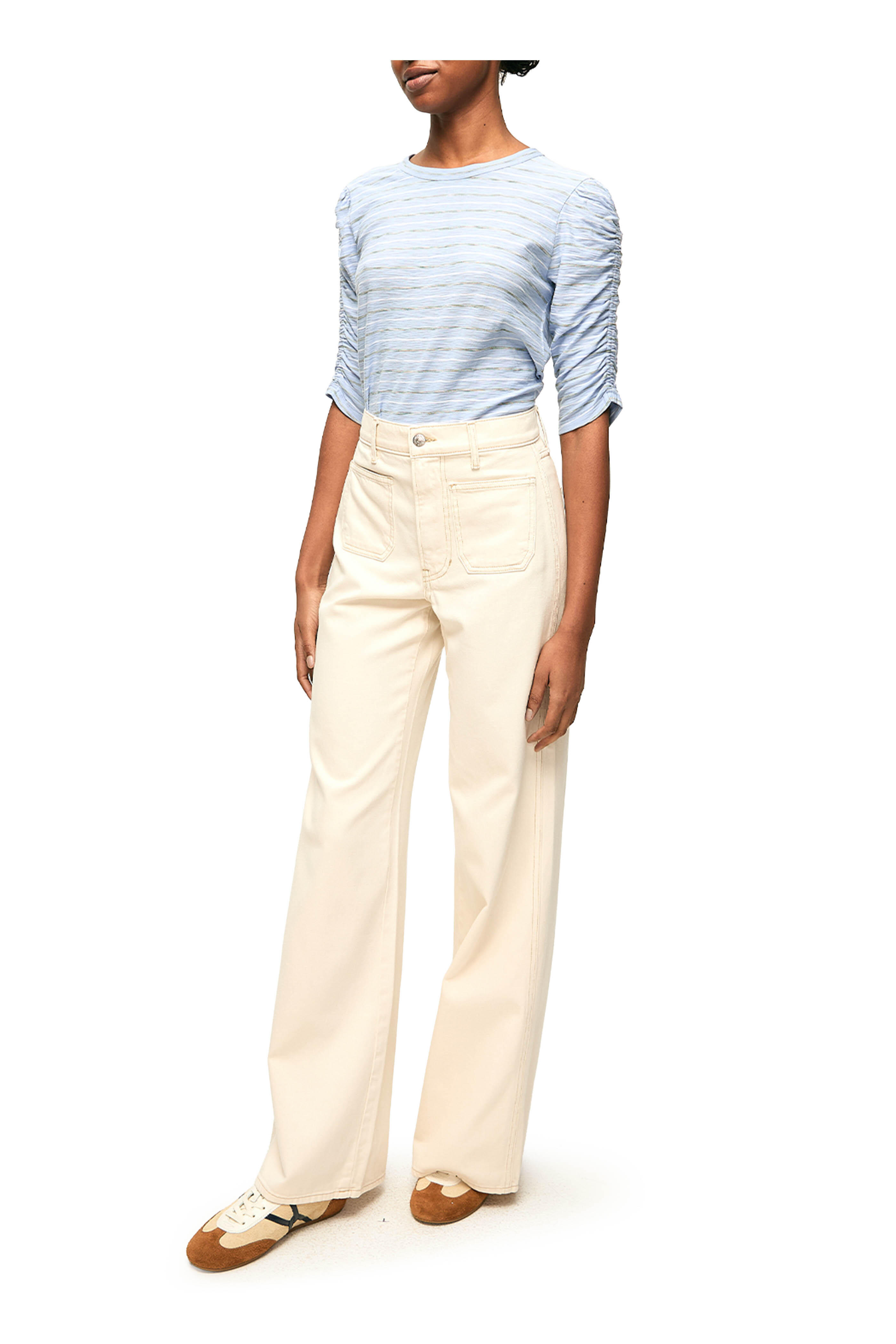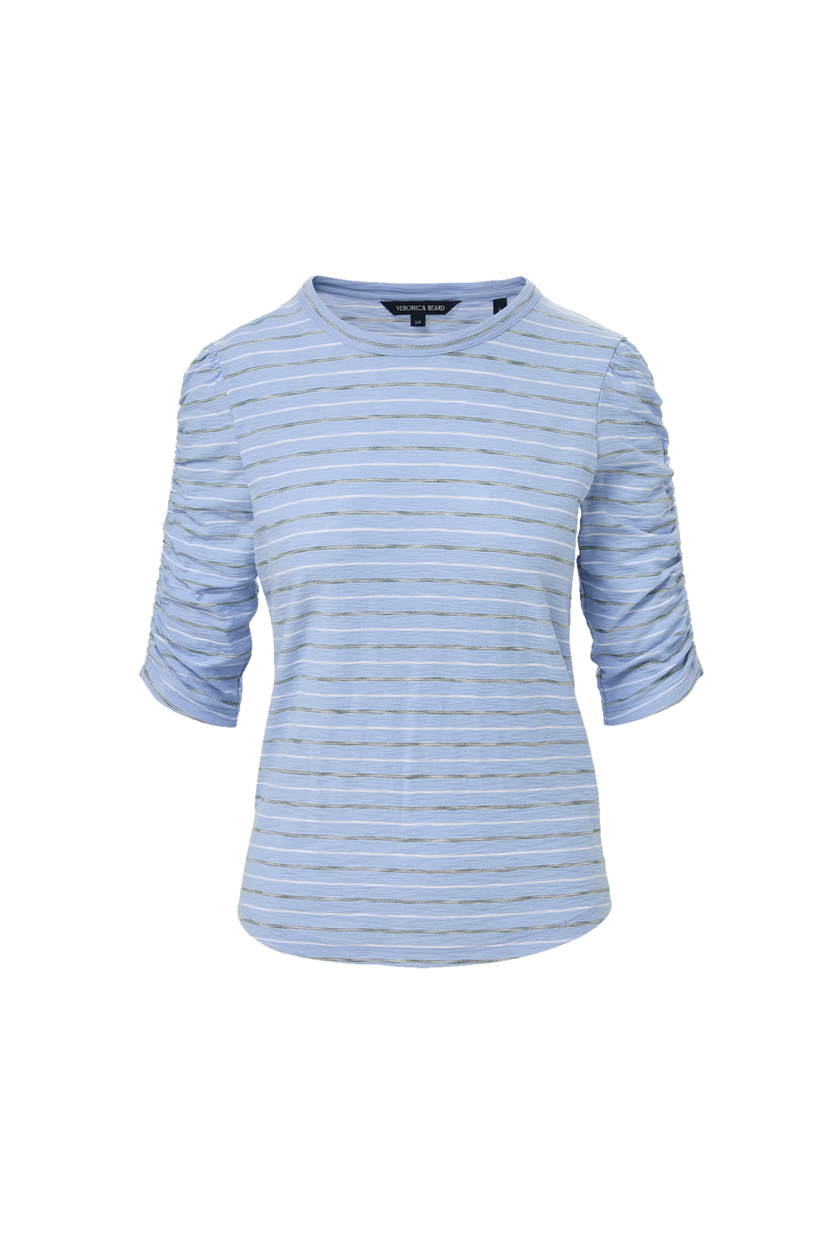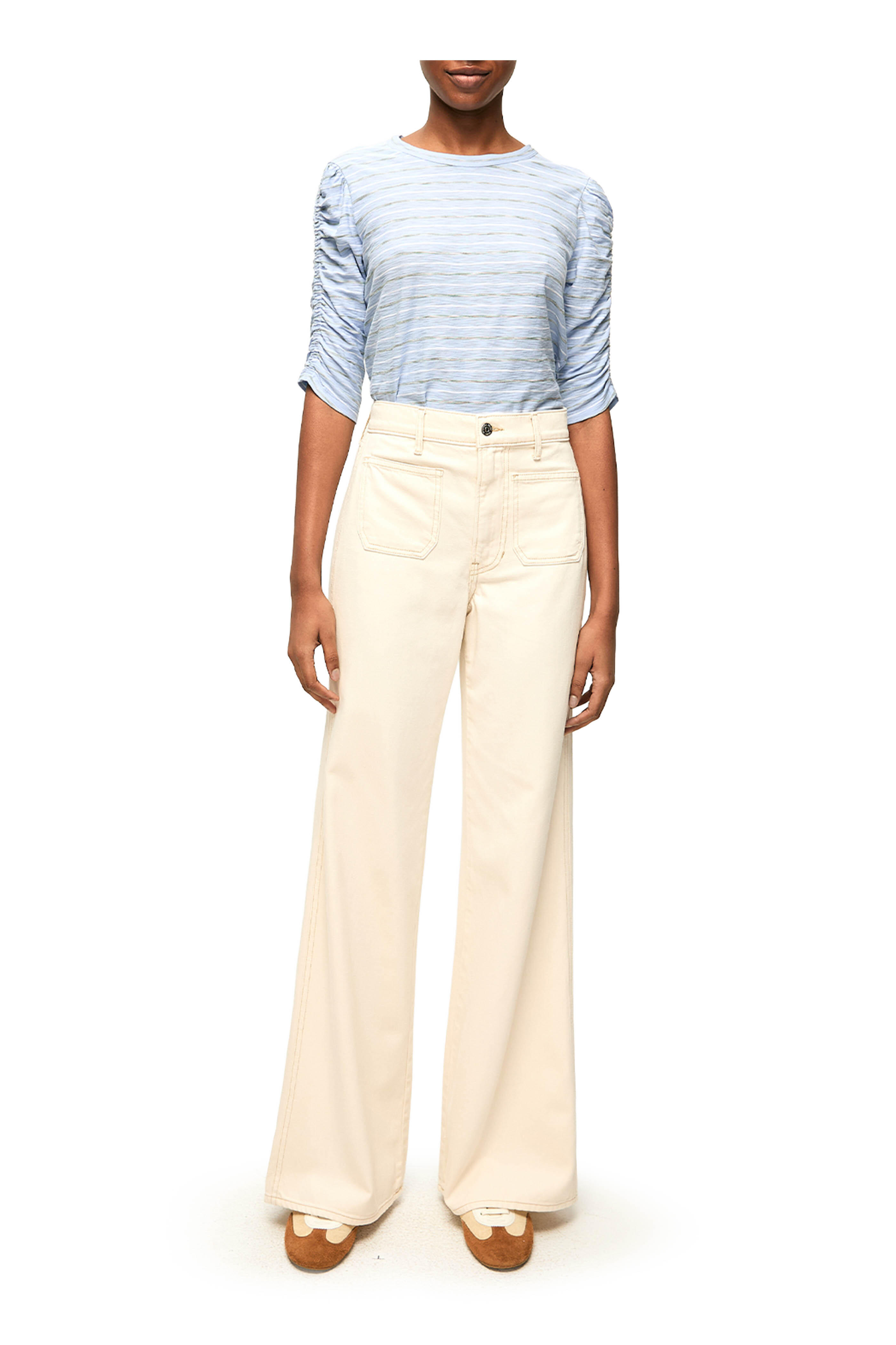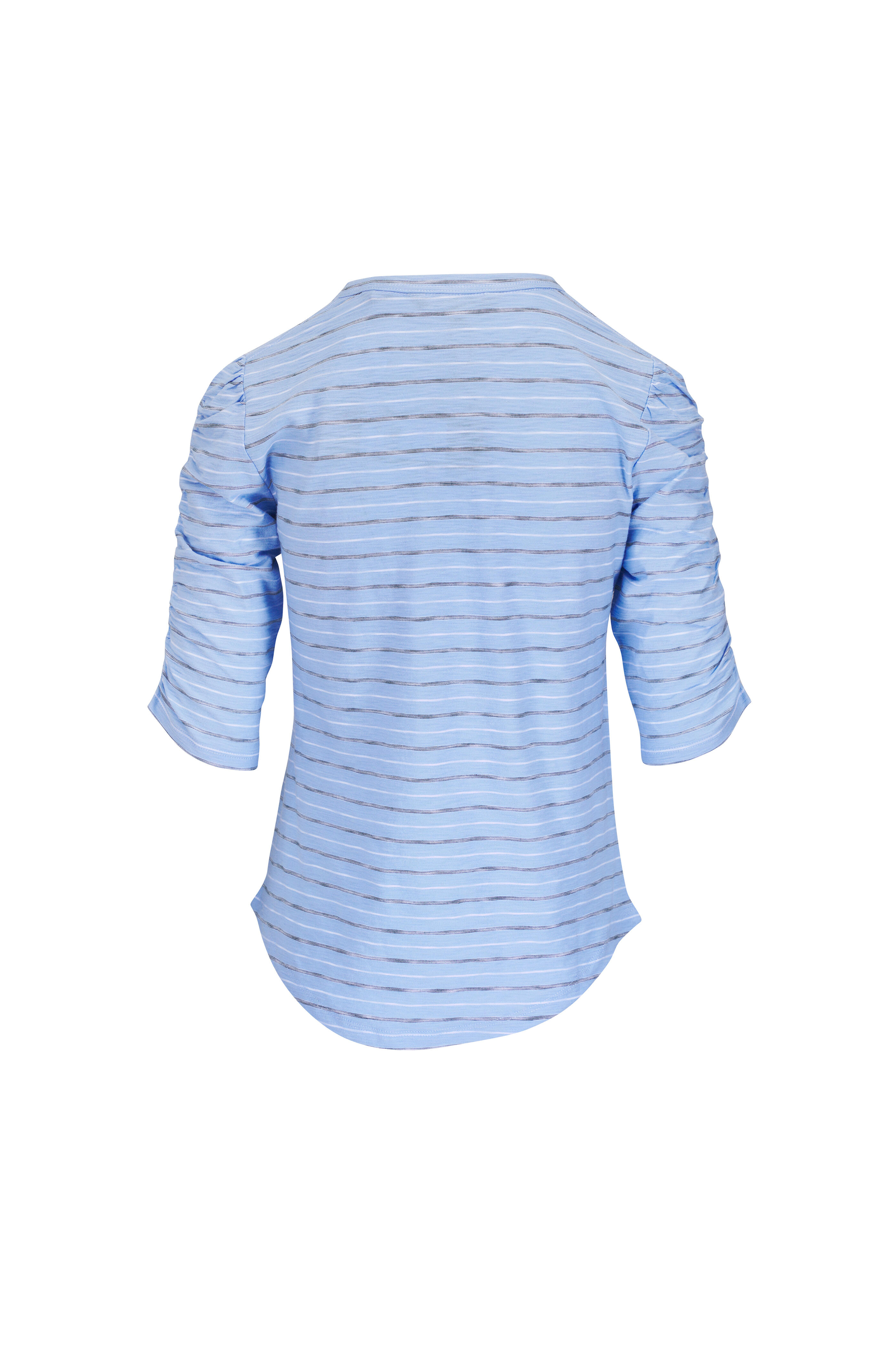 Crew neckline. Slip-on style. Ruched sleeves. Rounded hem. Made in Italy. Shoulder to hem 23" (size s). 100% Pima cotton. Machine wash.