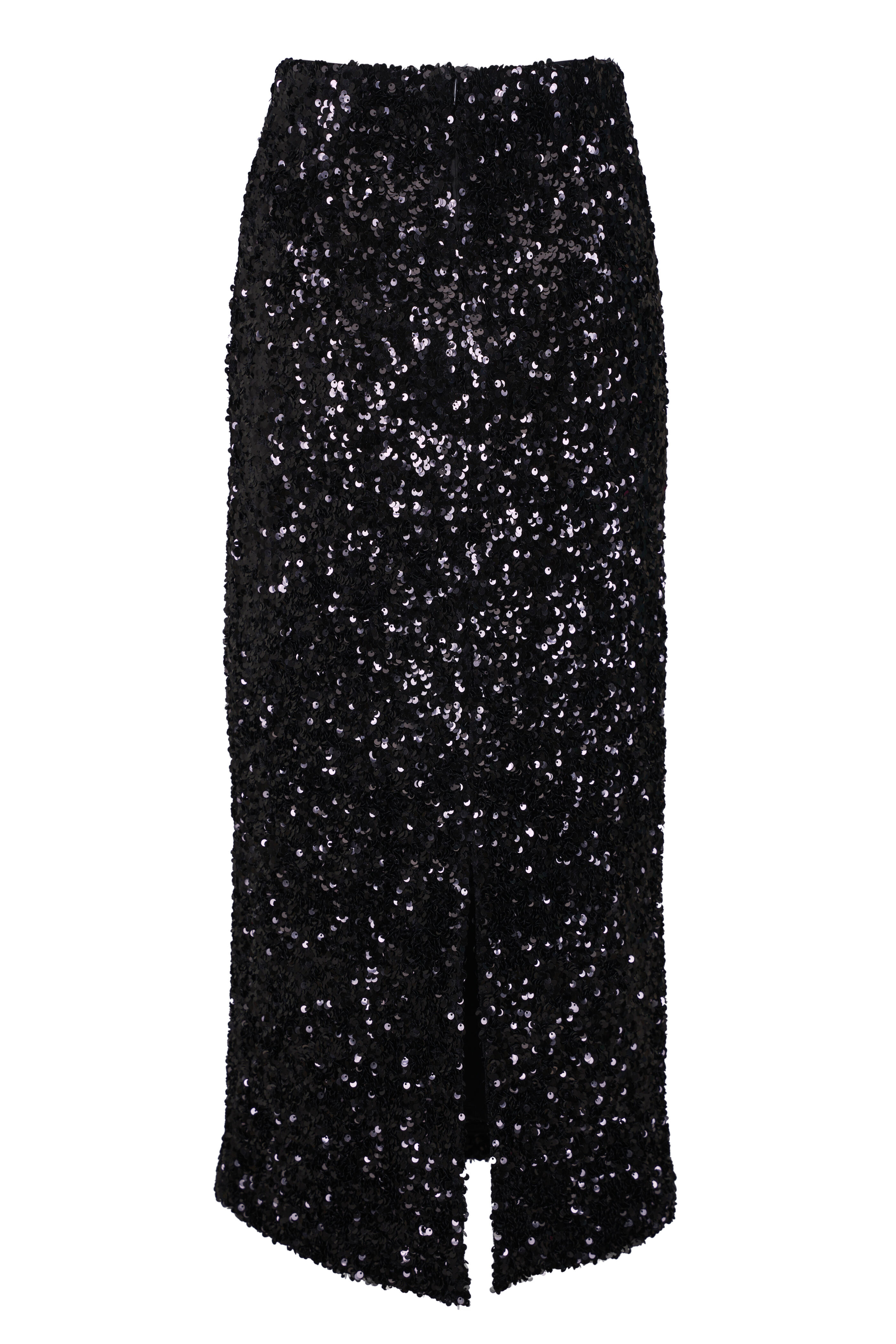 Concealed back zip. Elasticized interior waist. Side slit. Imported. 35" Length. 100% polyester; Lining: 100% polyester. Hand wash.