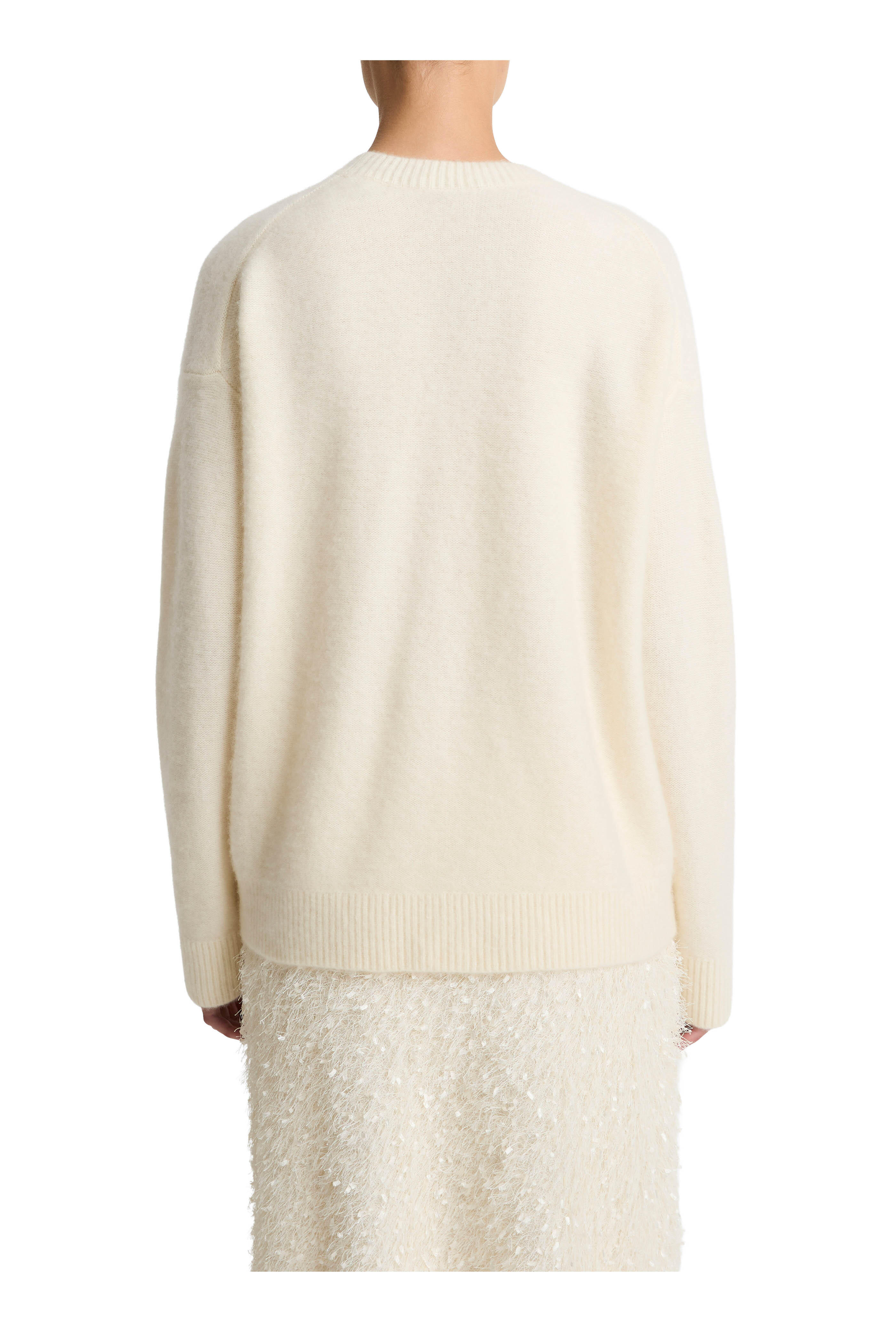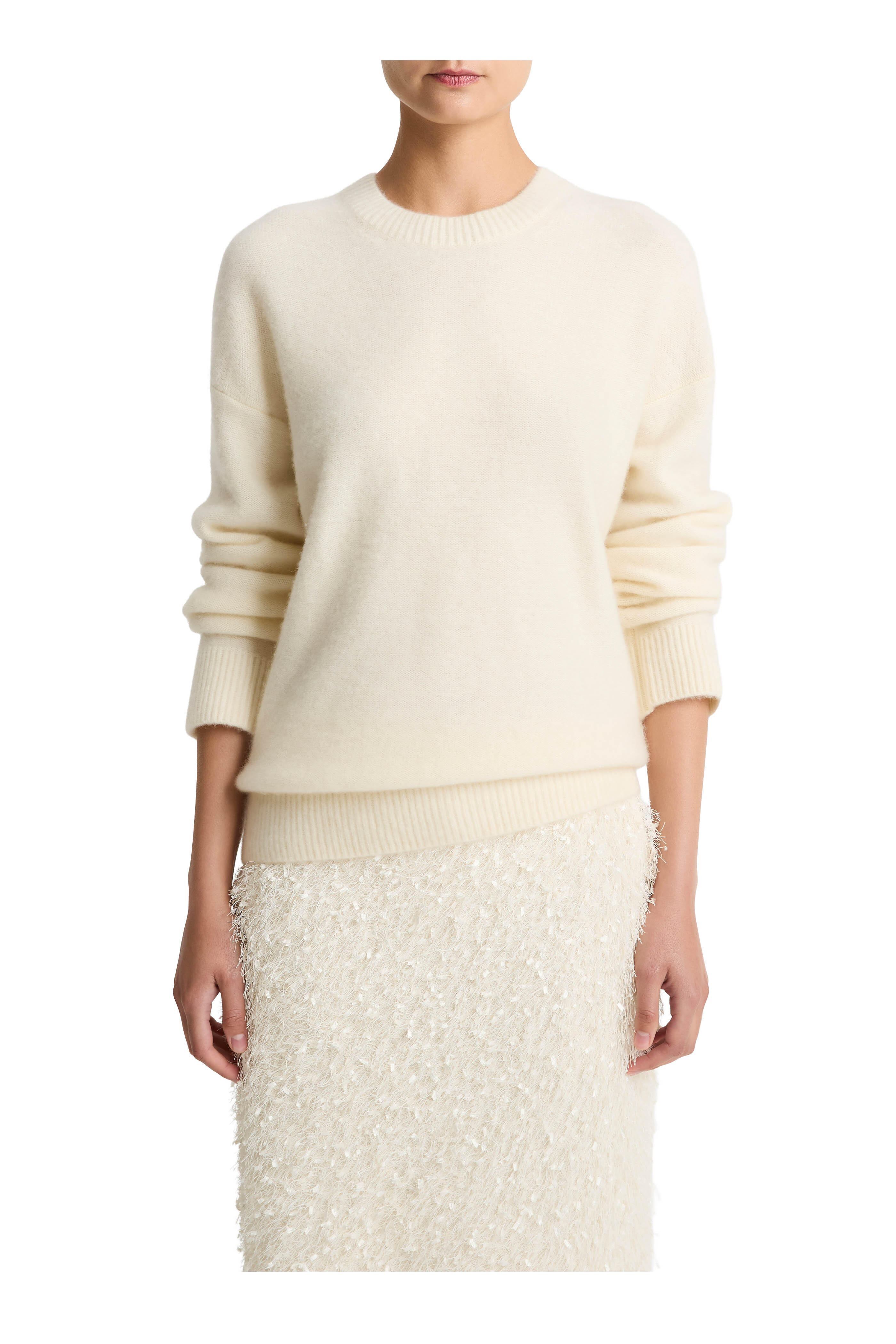 Crewneck. Drop shoulders. Ribbed trims. Imported. 100% cashmere. Hand wash.