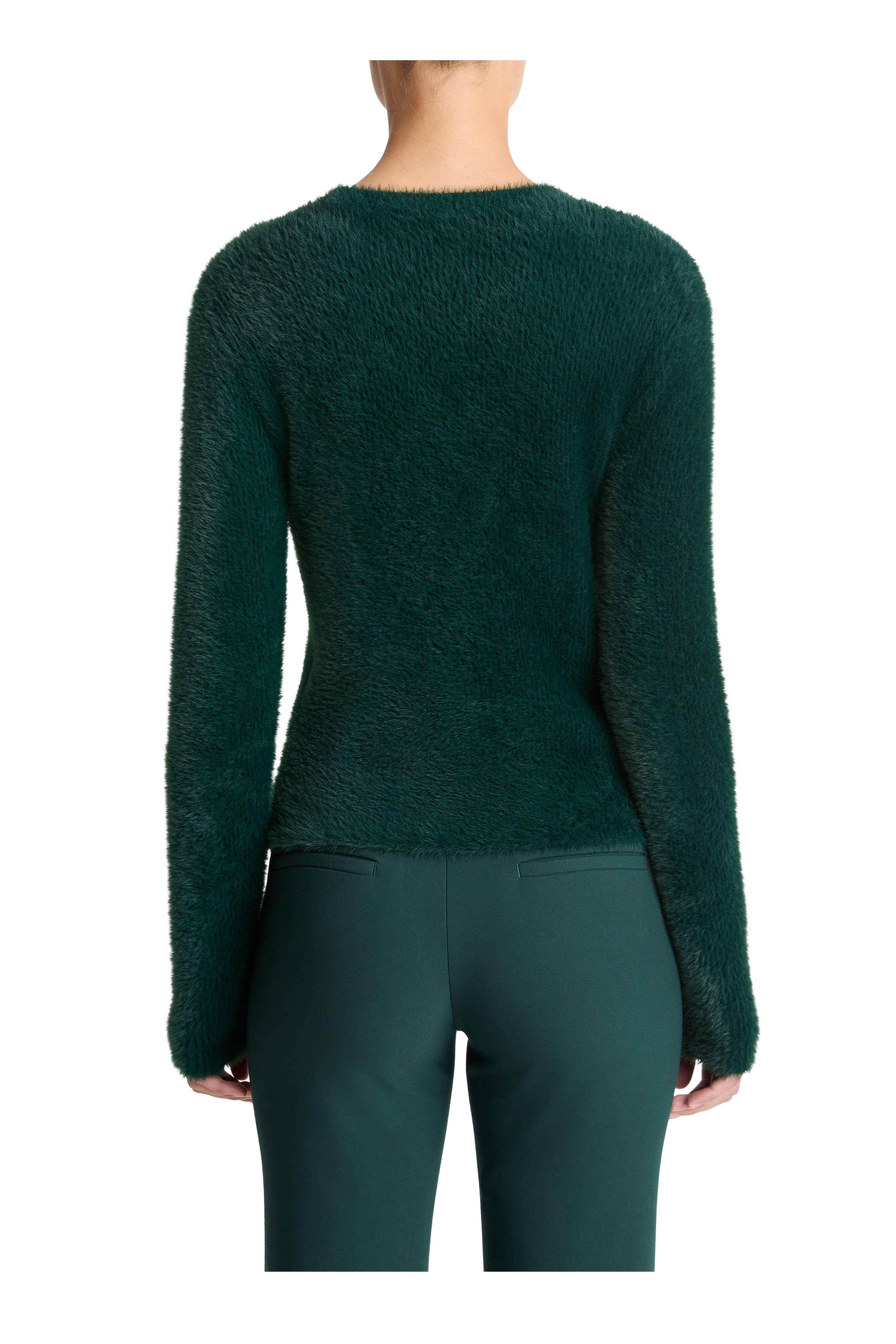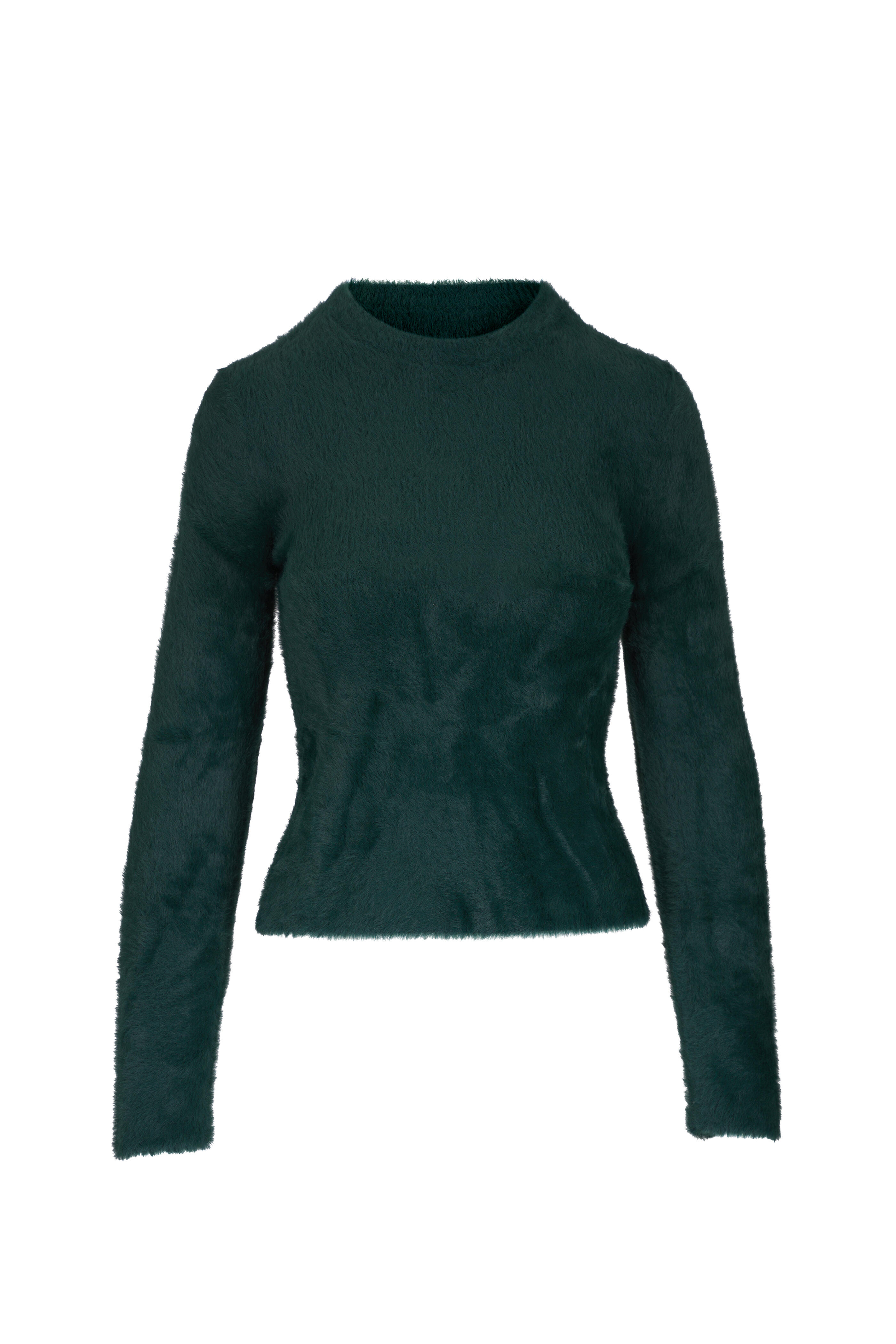 Crew neckline. Pullover style. Ribbed trims. Straight hem. Imported. Shoulder to hem 20" (size xs). 86% Nylon, 9% viscose, 5% polyester. Hand wash.