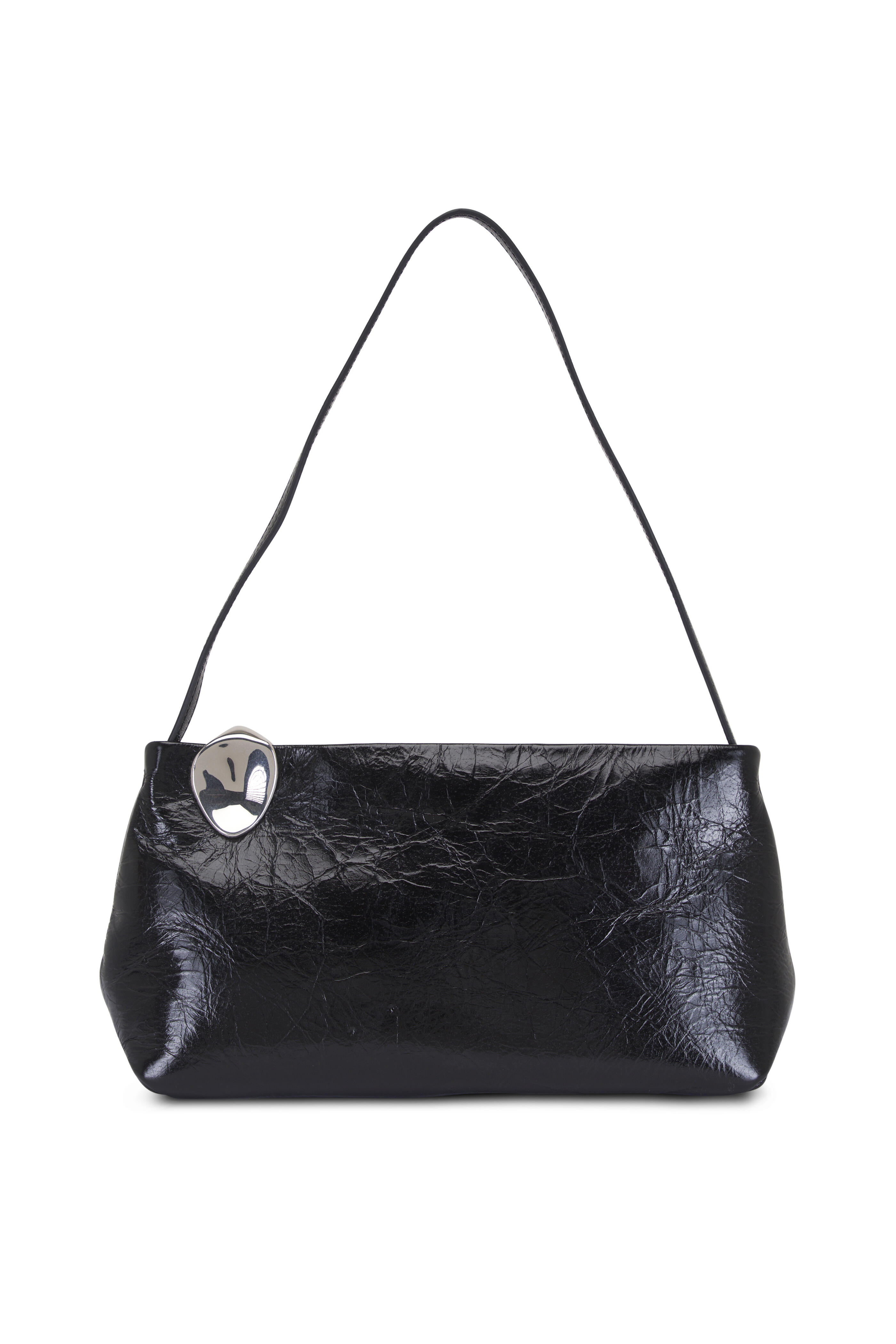 Laminated nappa leather. Flap top with interior zip closure. Single top handle. One main compartment. Leather lining. Made in Italy. Approx 14.96" W x 6.89" H x 4.72" D. Shoulder strap drop: 9".
