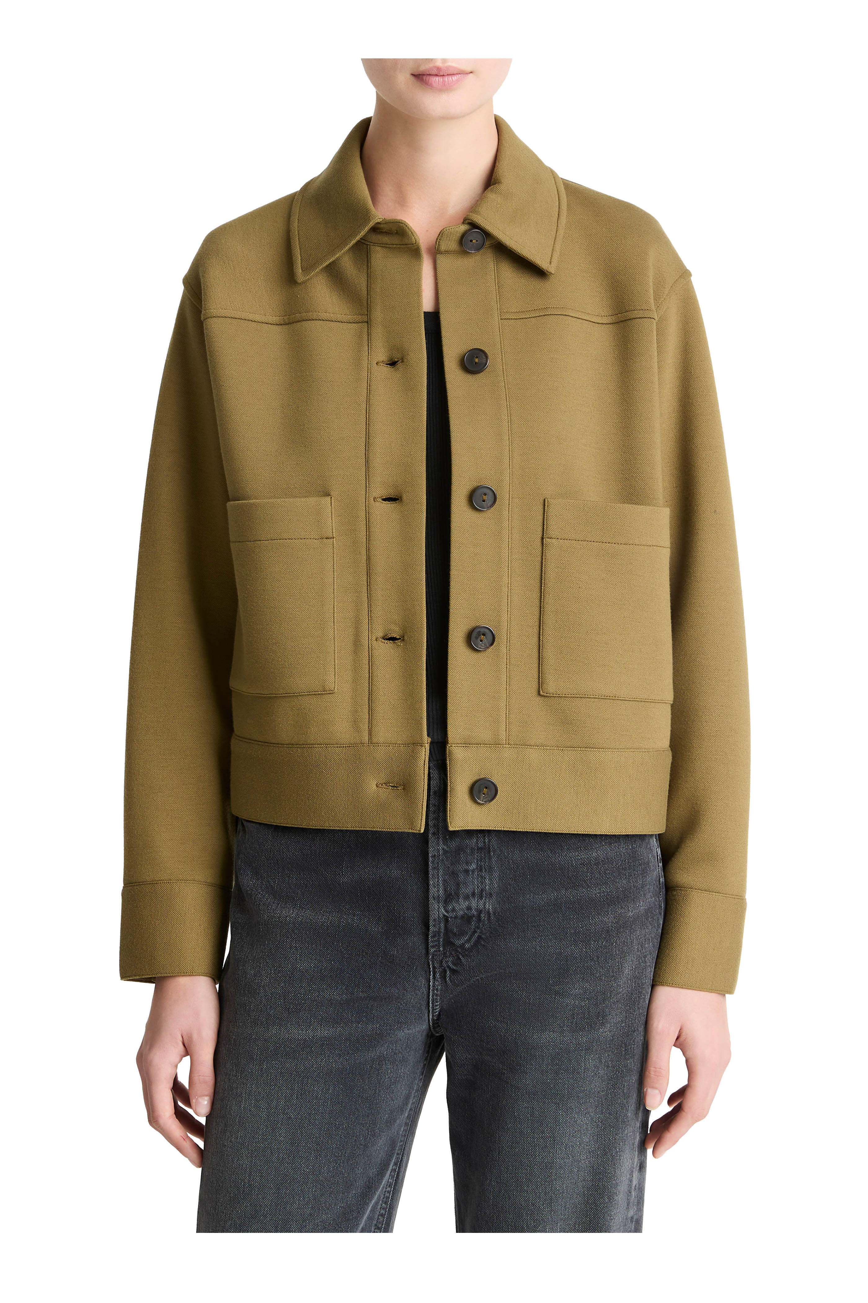 Dark Olive Stone Double-Face Cropped Jacket