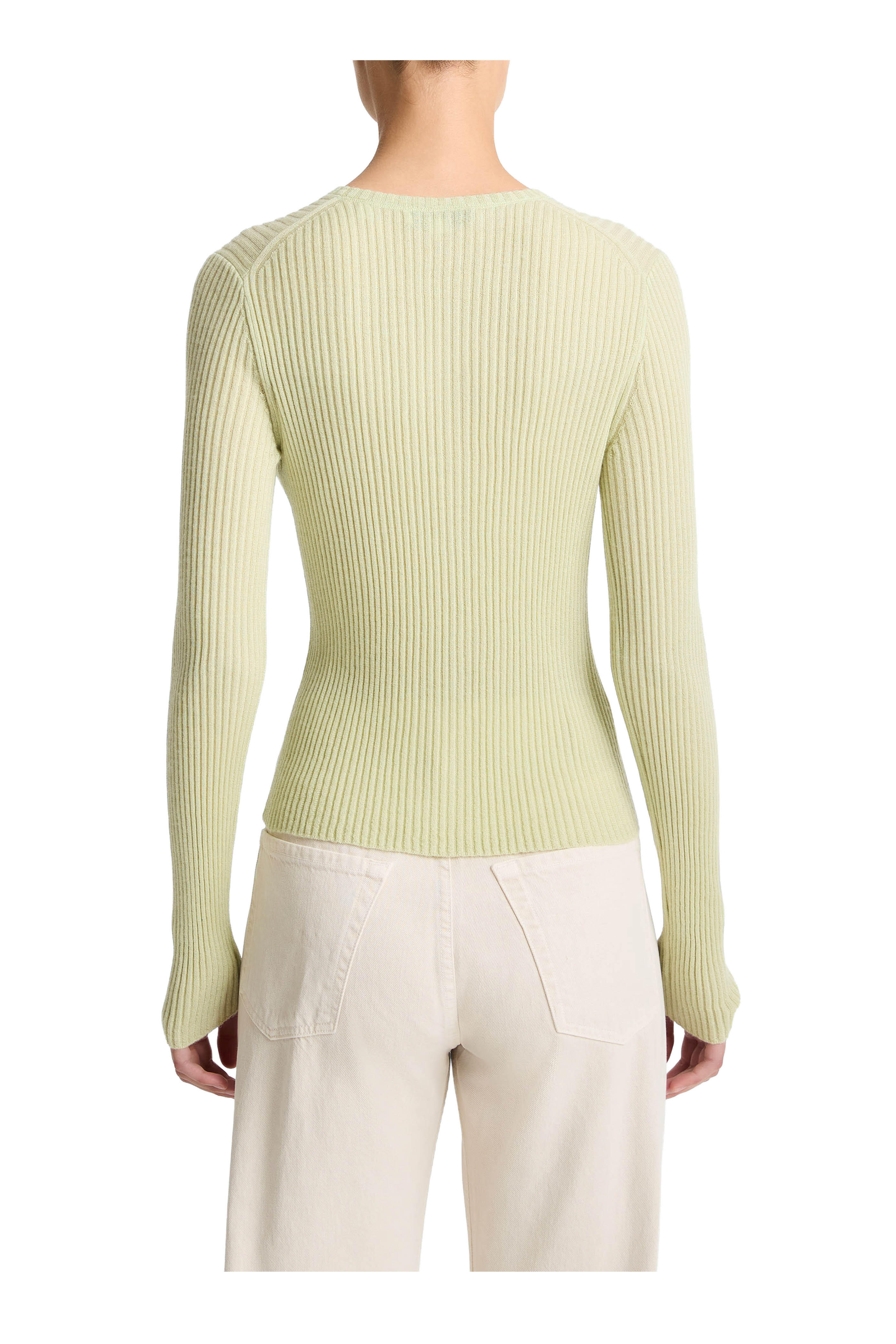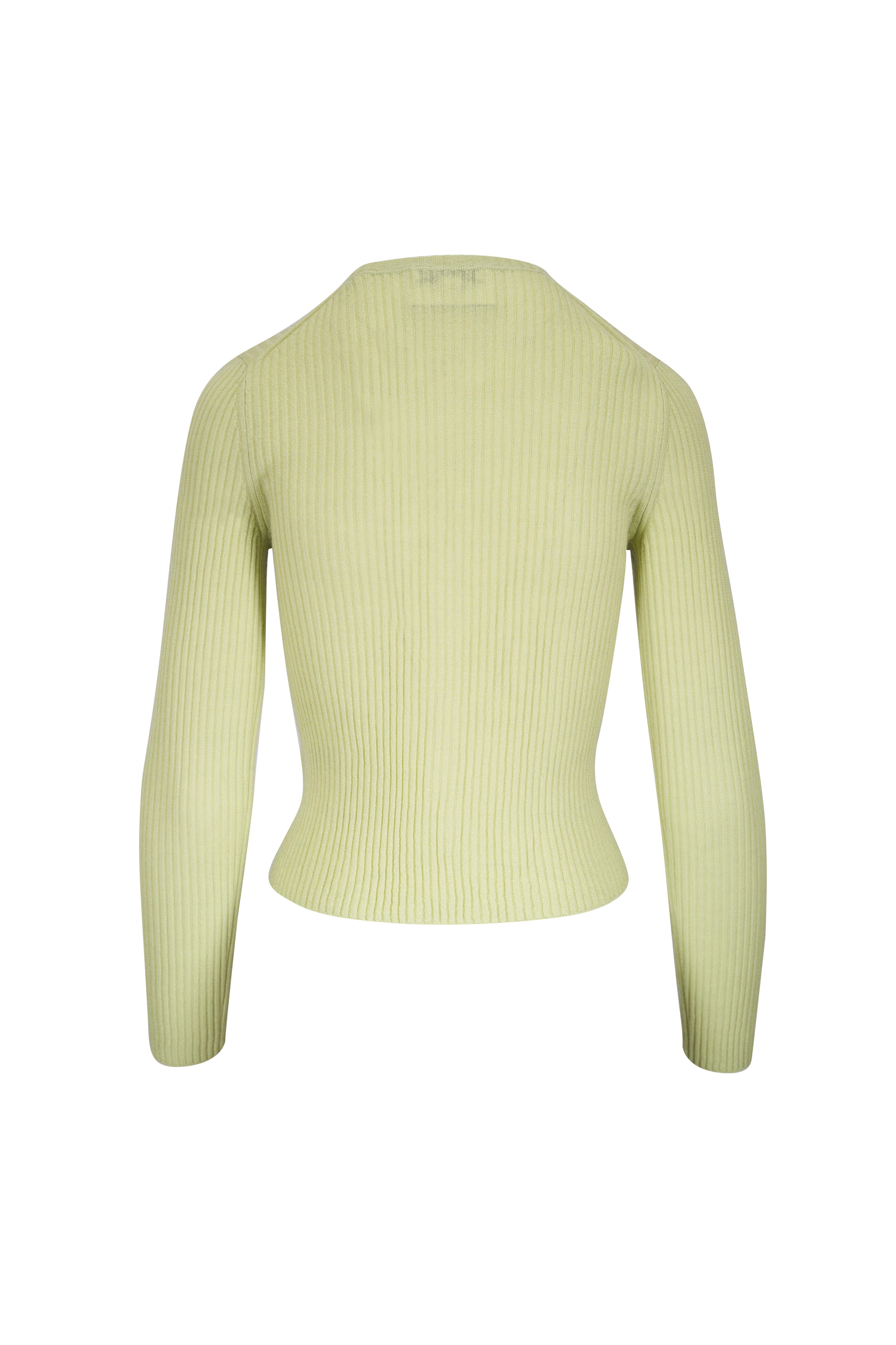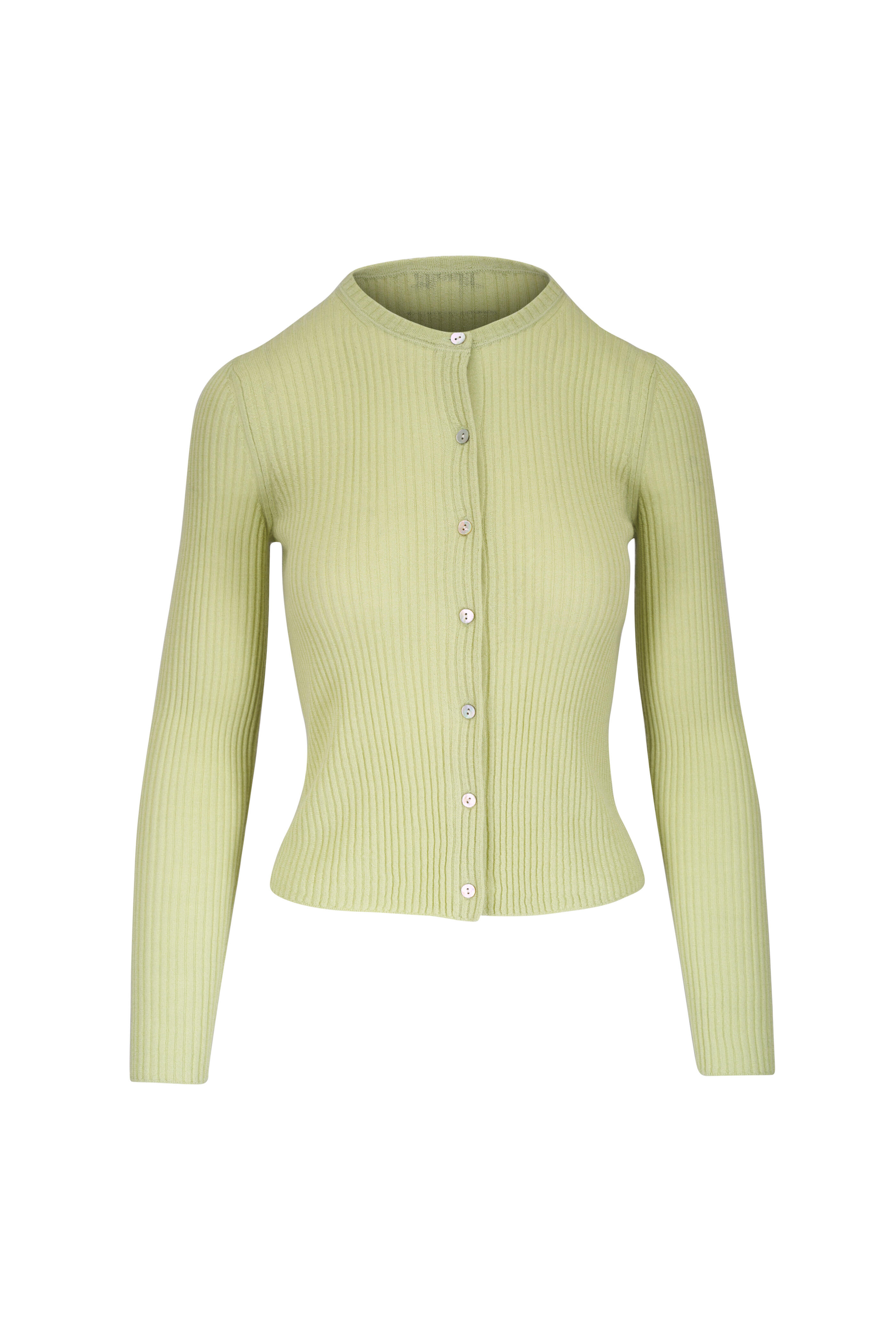 Pale Fern Ribbed Cashmere & Silk Cardigan