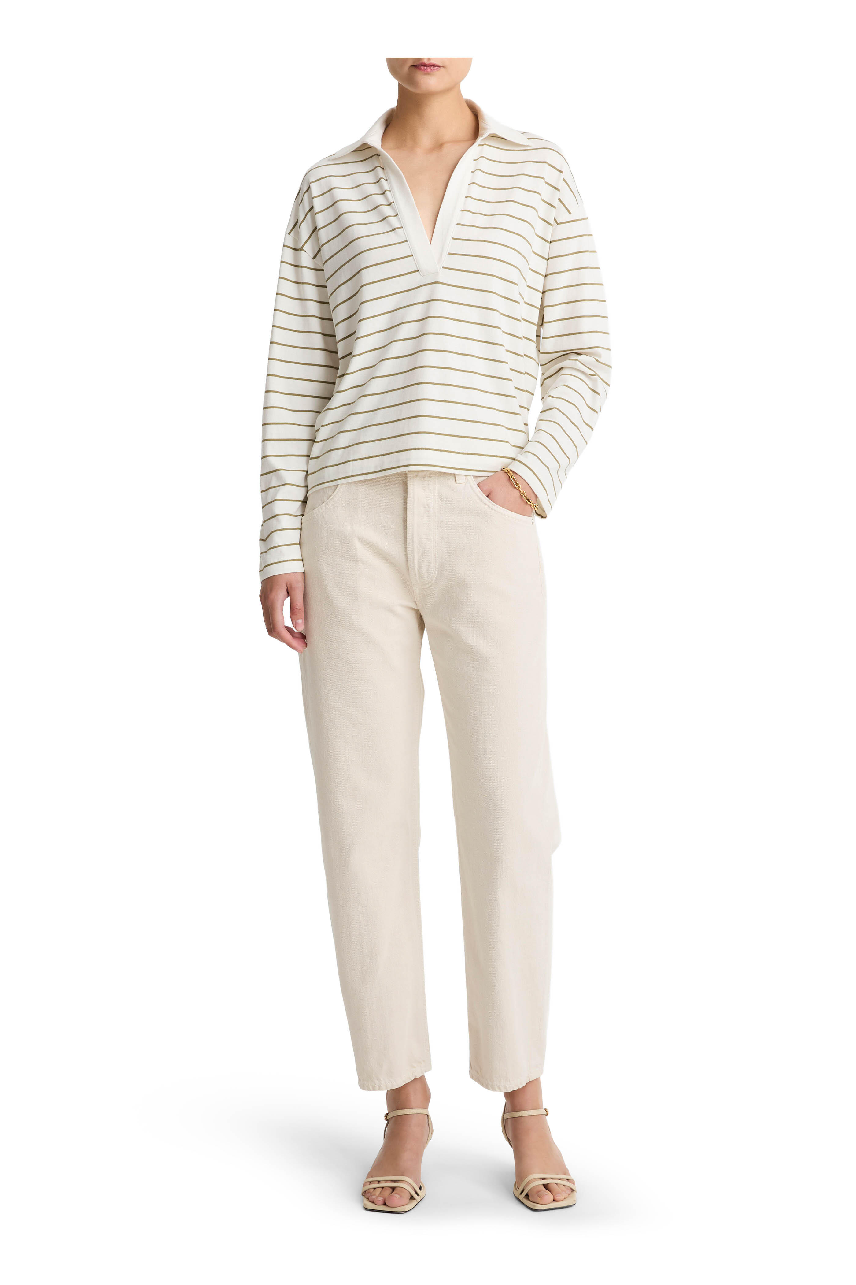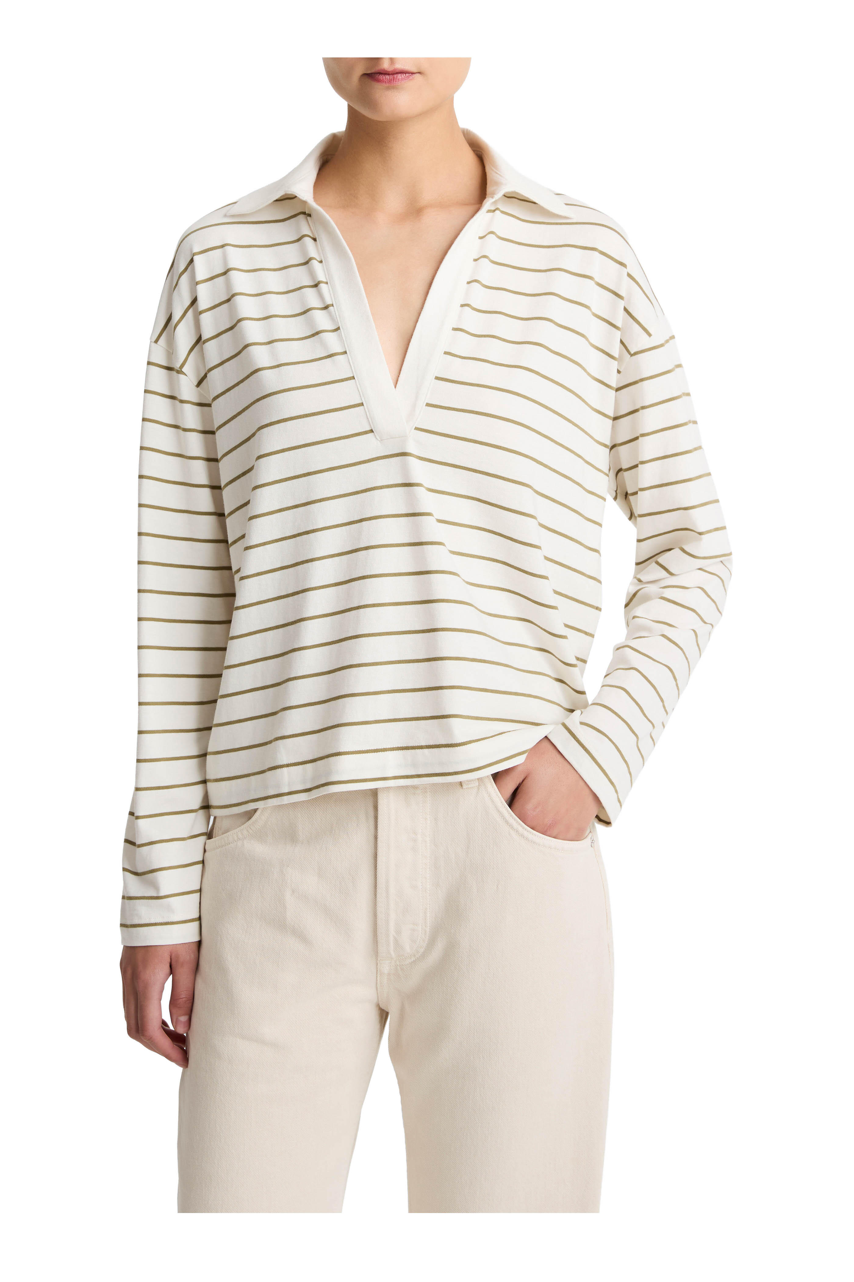 Polo collar. Relaxed silhouette. Made in Peru. 22.25" length. 100% cotton. Machine wash.