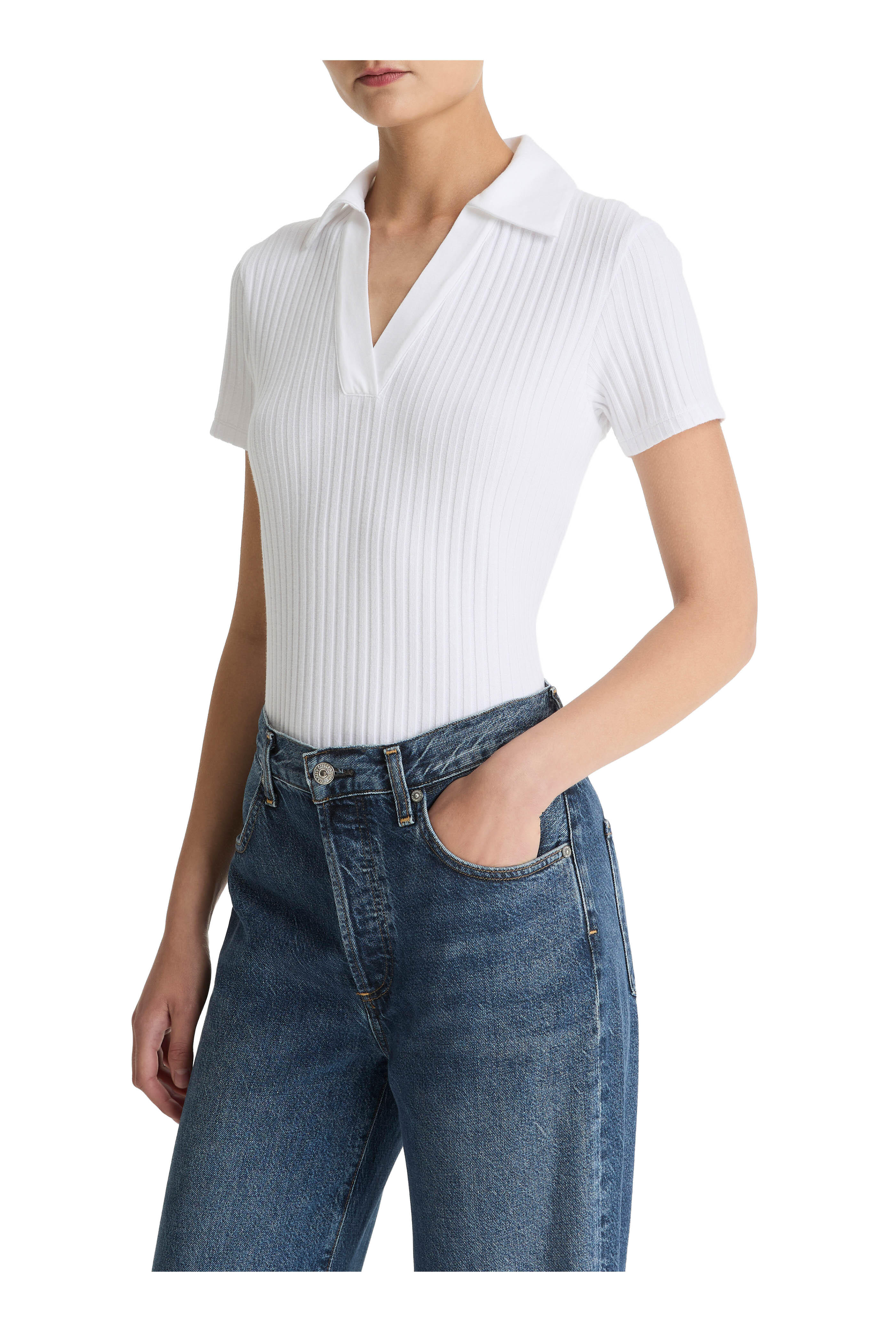 • Vince - White Ribbed Polo