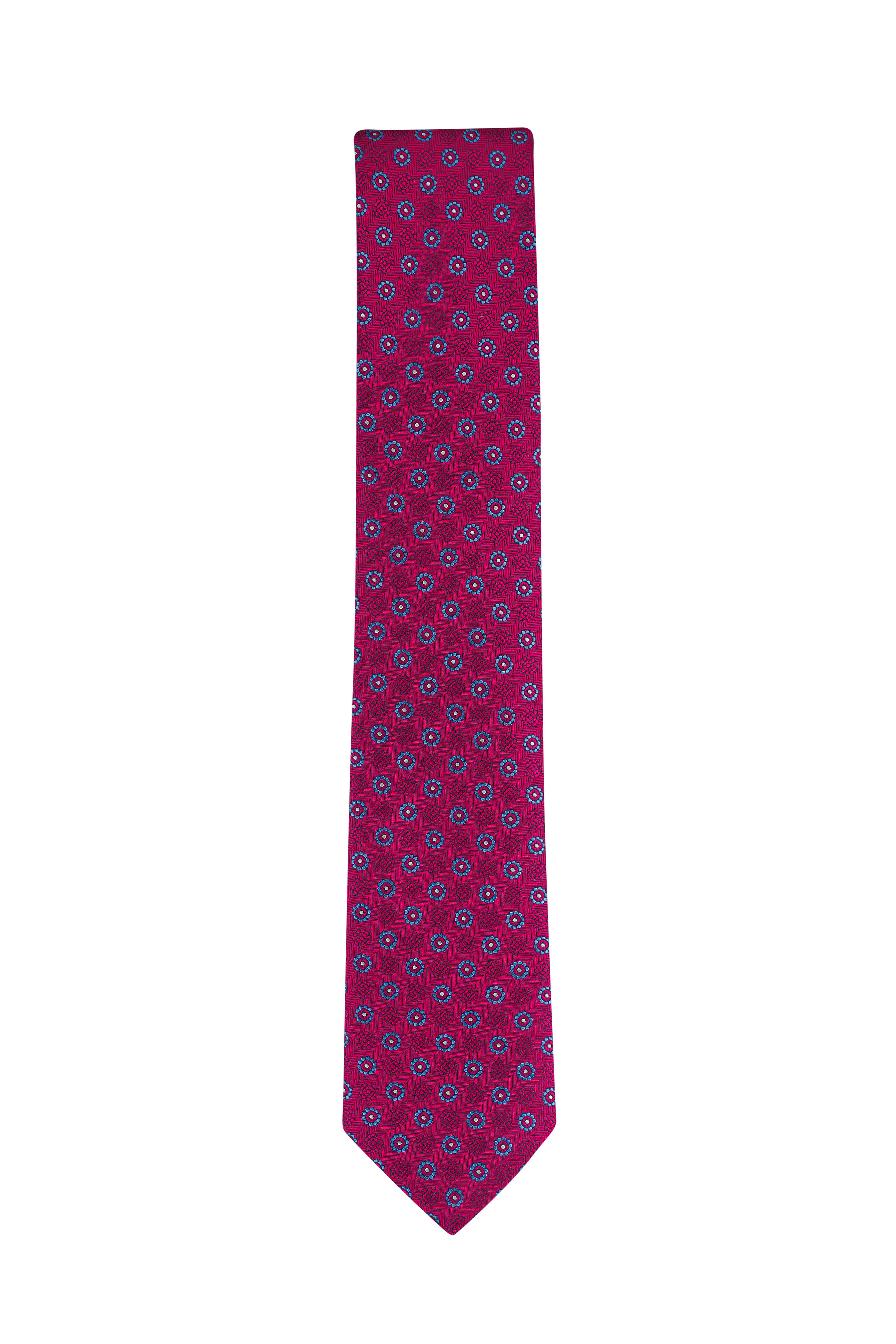 Red Medallion Print Silk Necktie