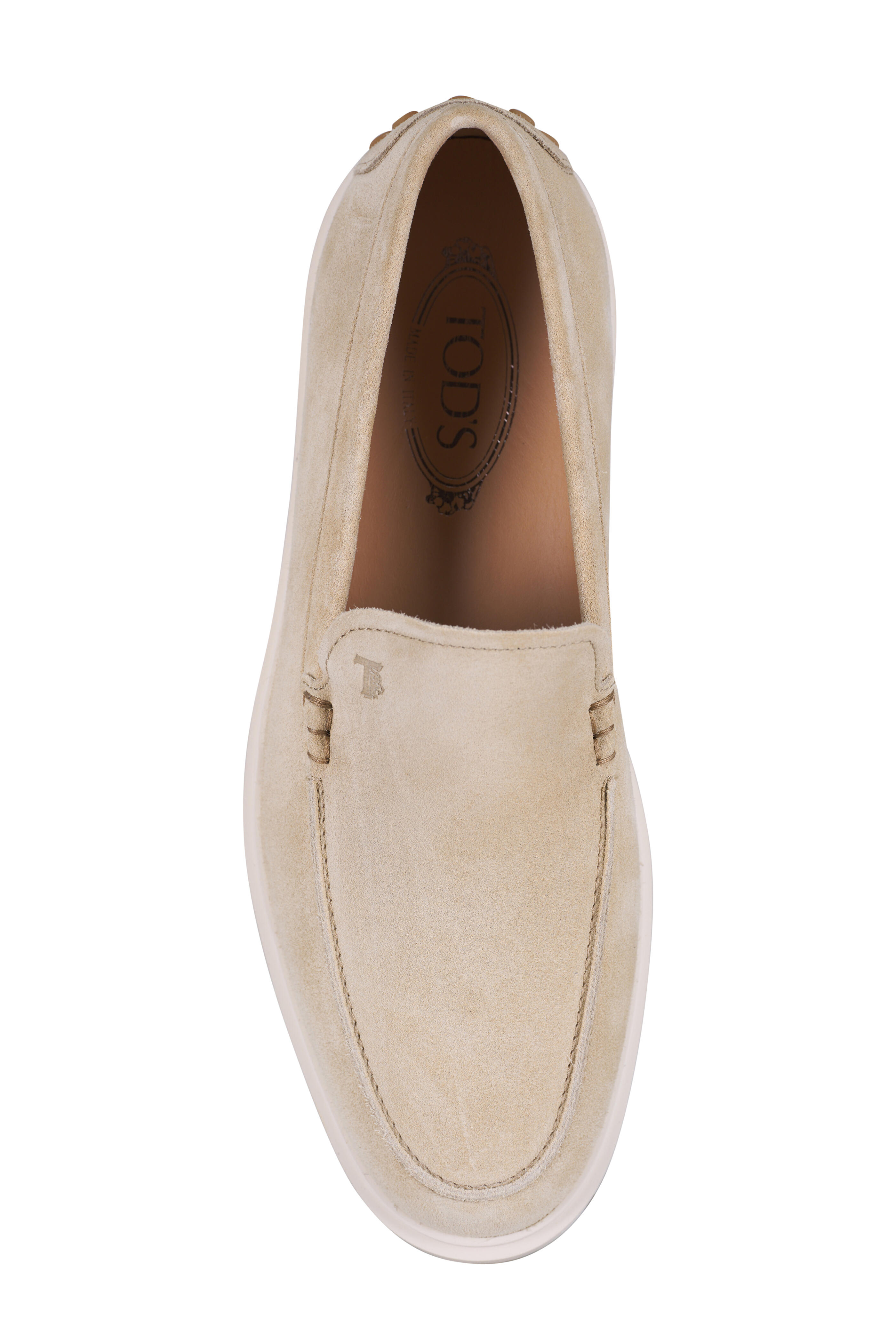 Suede upper. Round apron toe. Notched vamp. Leather lining and insole. Pebbled rubber lug sole. Made in Italy.