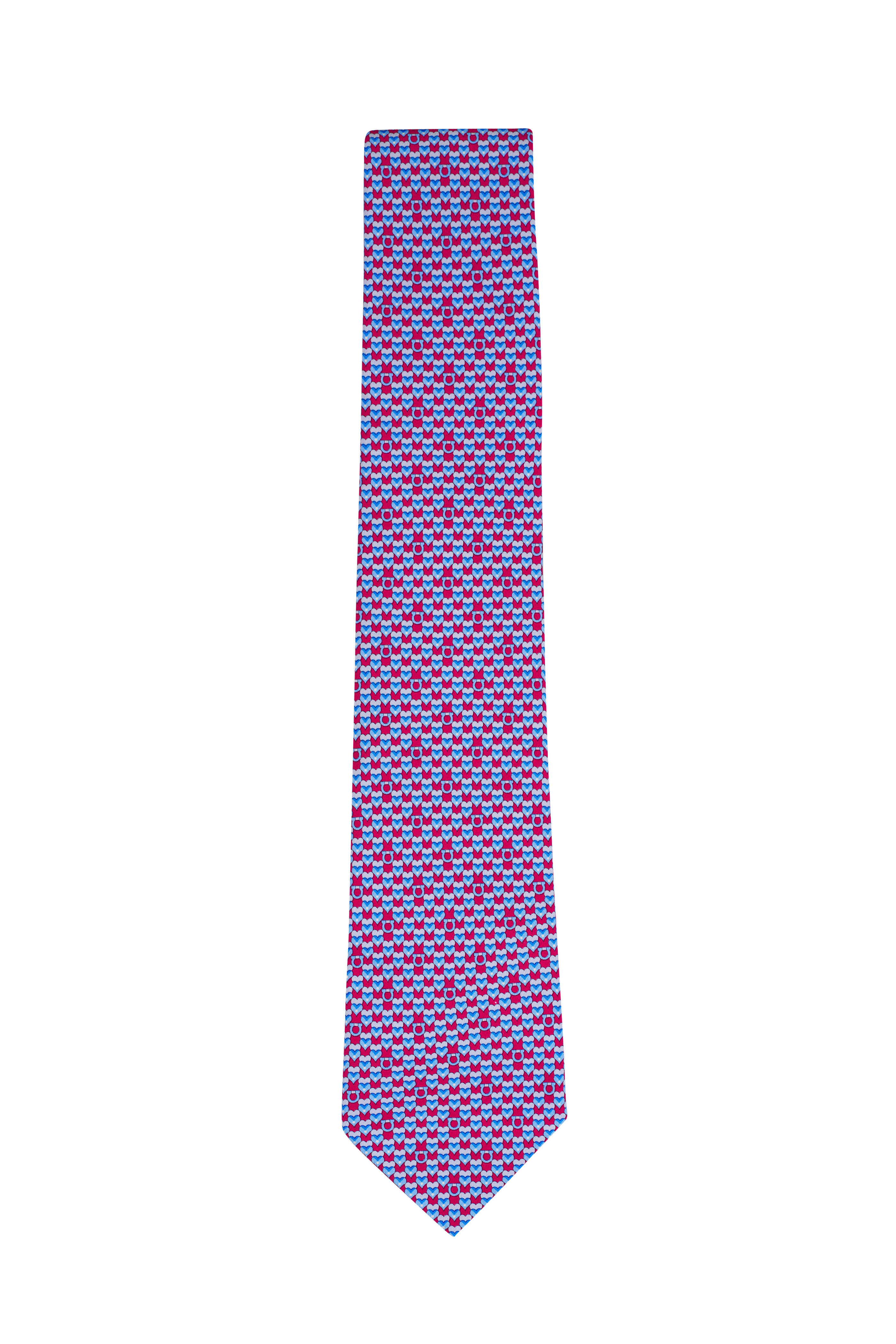 Red & Blue Heart Print Silk Necktie
