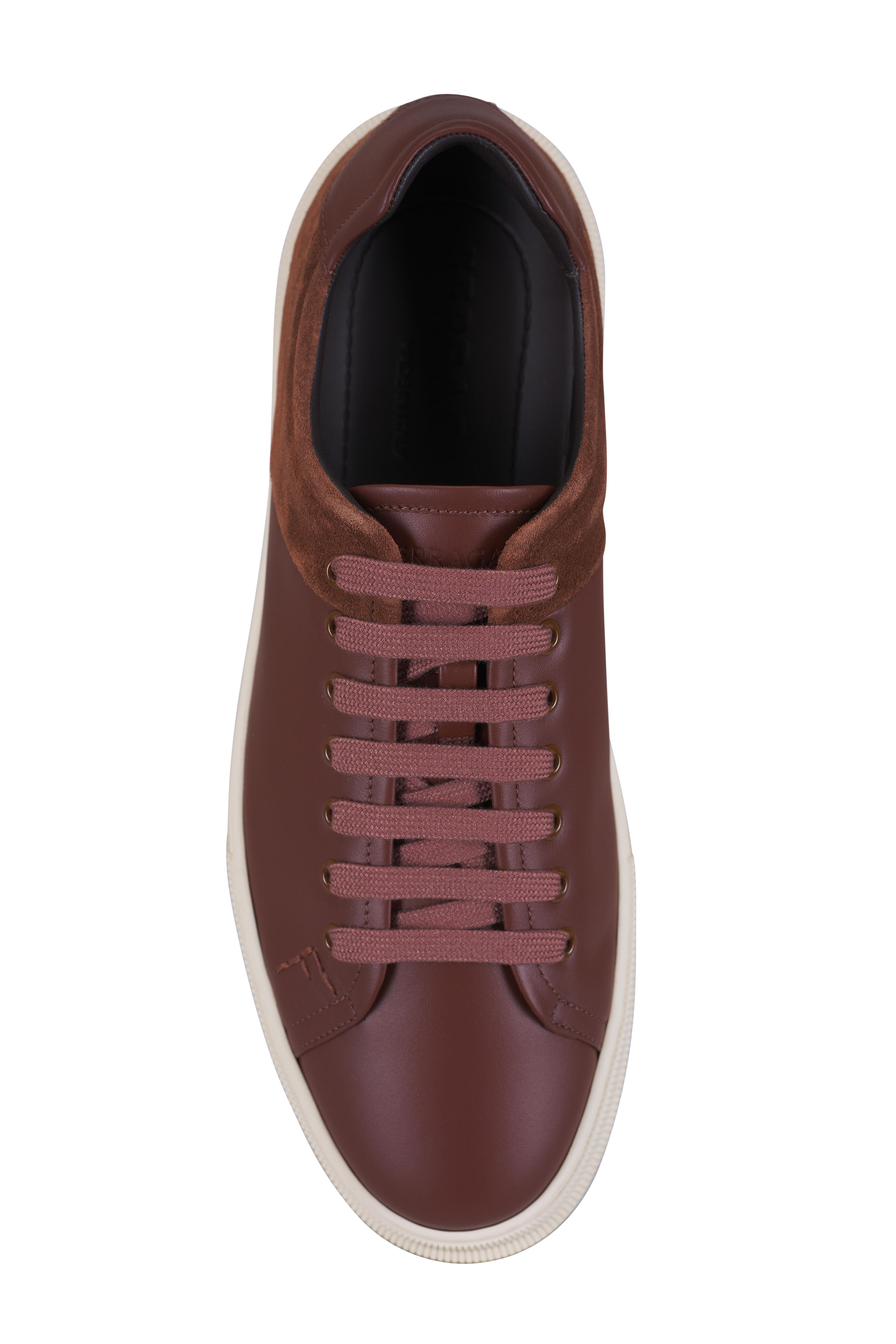 Leather upper. Round toe. Lace-up closure; suede eyelets. Slip on style. Leather lining; cushioned insole. Rubber sole. Made in Italy.