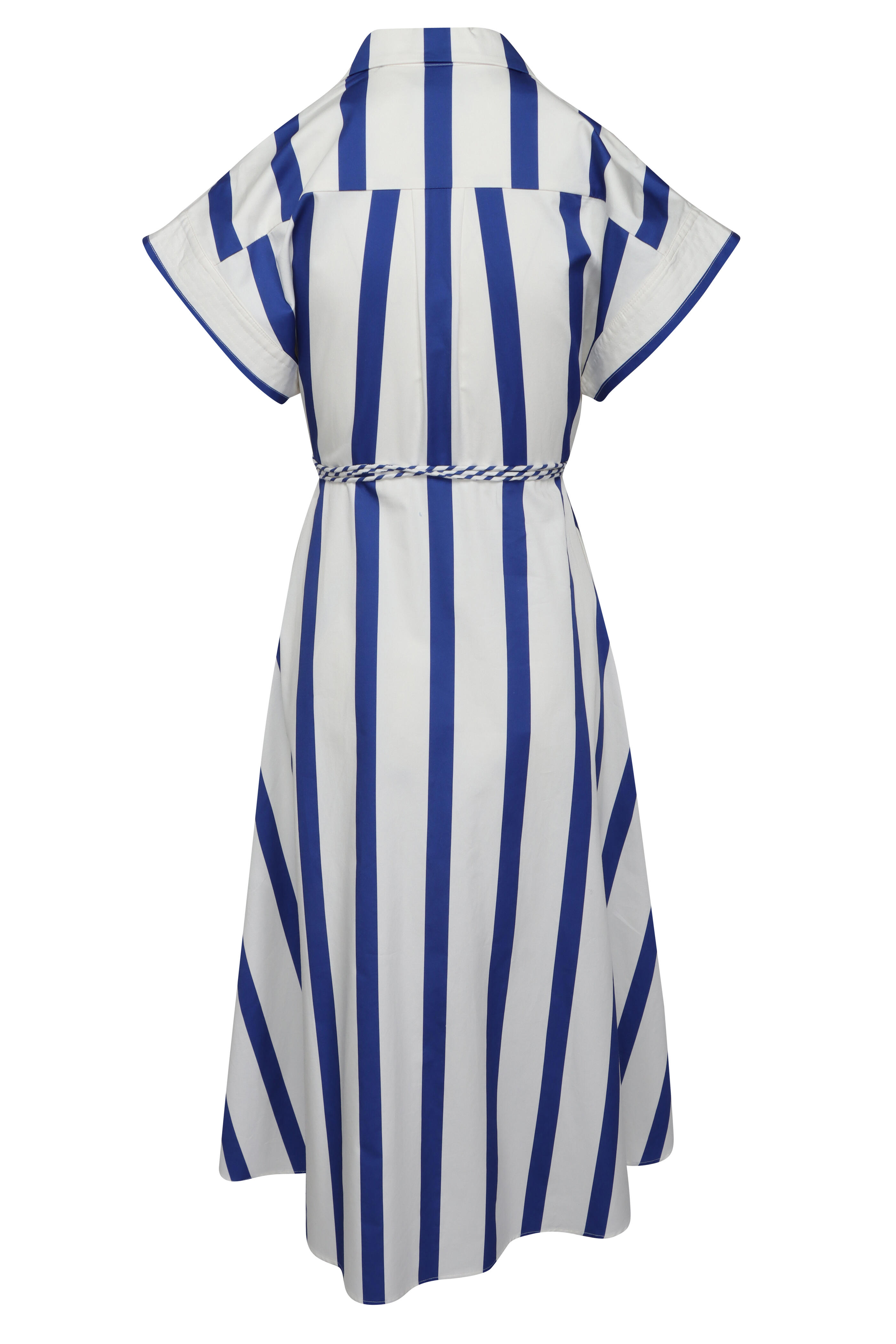 Peak collar. Short dolman sleeves. Button front closure. Removable self-tie belt. Side slip pockets. Aline silhouette. Imported. Bust 36.2” (US 4). Waist 28.3” (US 4). Length 49.2” (US 4). Midi length. 100% cotton outer and detail.