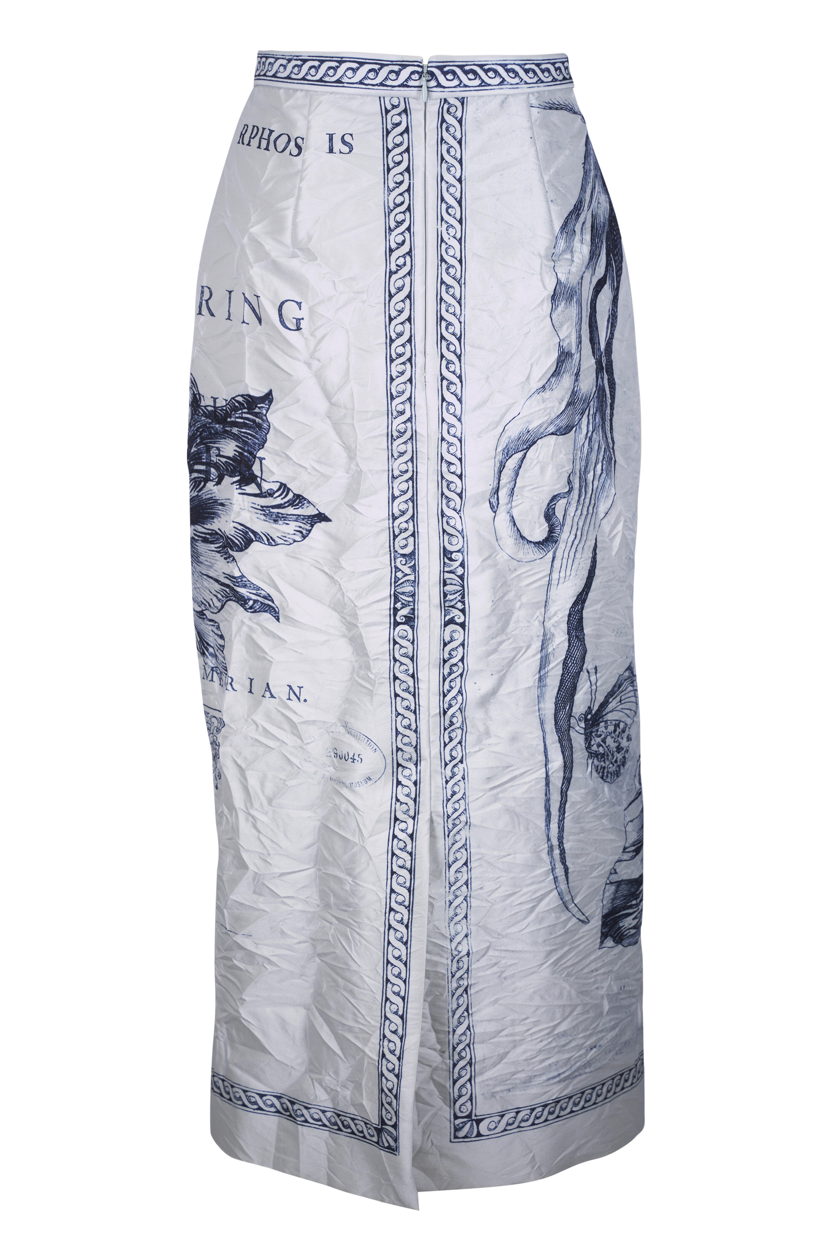 Botanical Engraving Dove Gray Crinkle Midi Skirt
