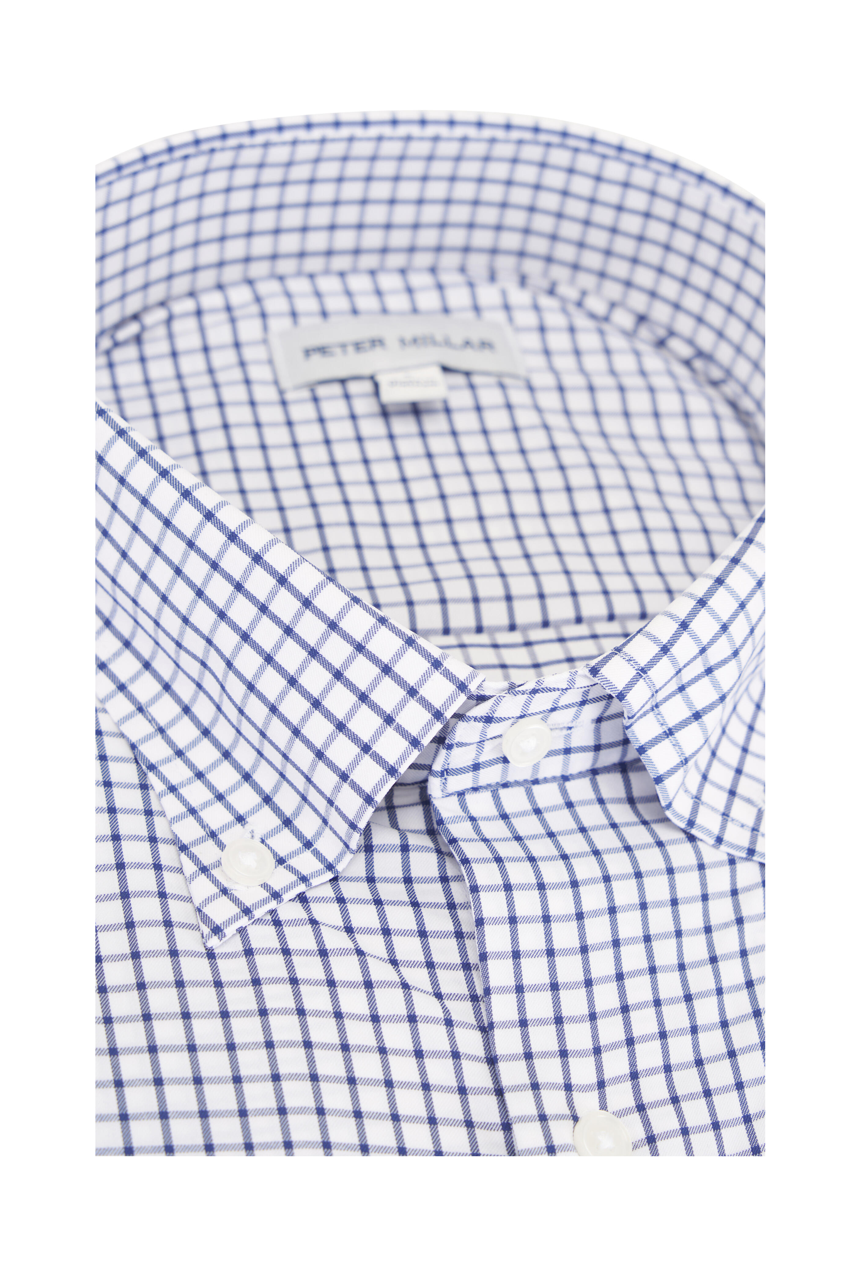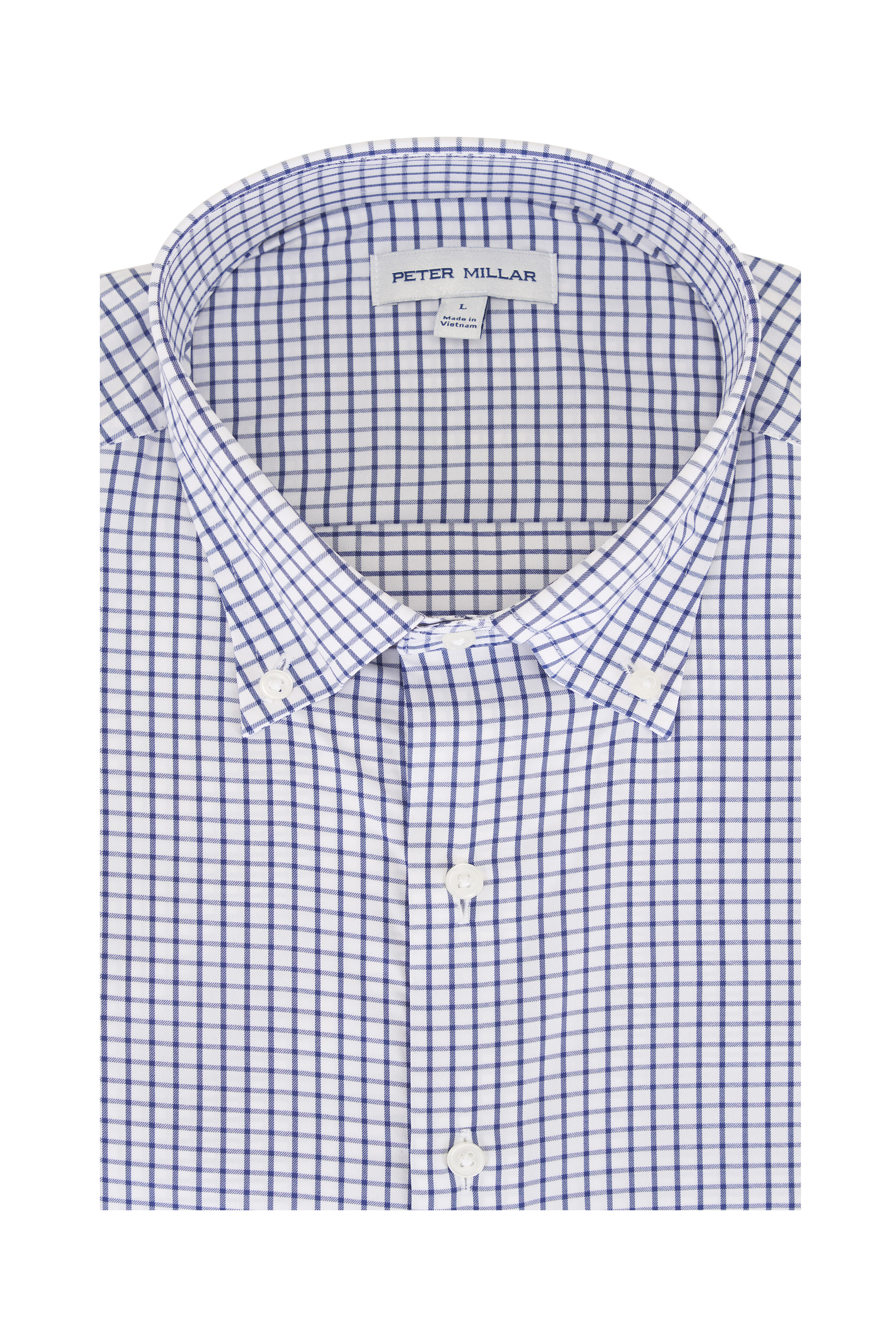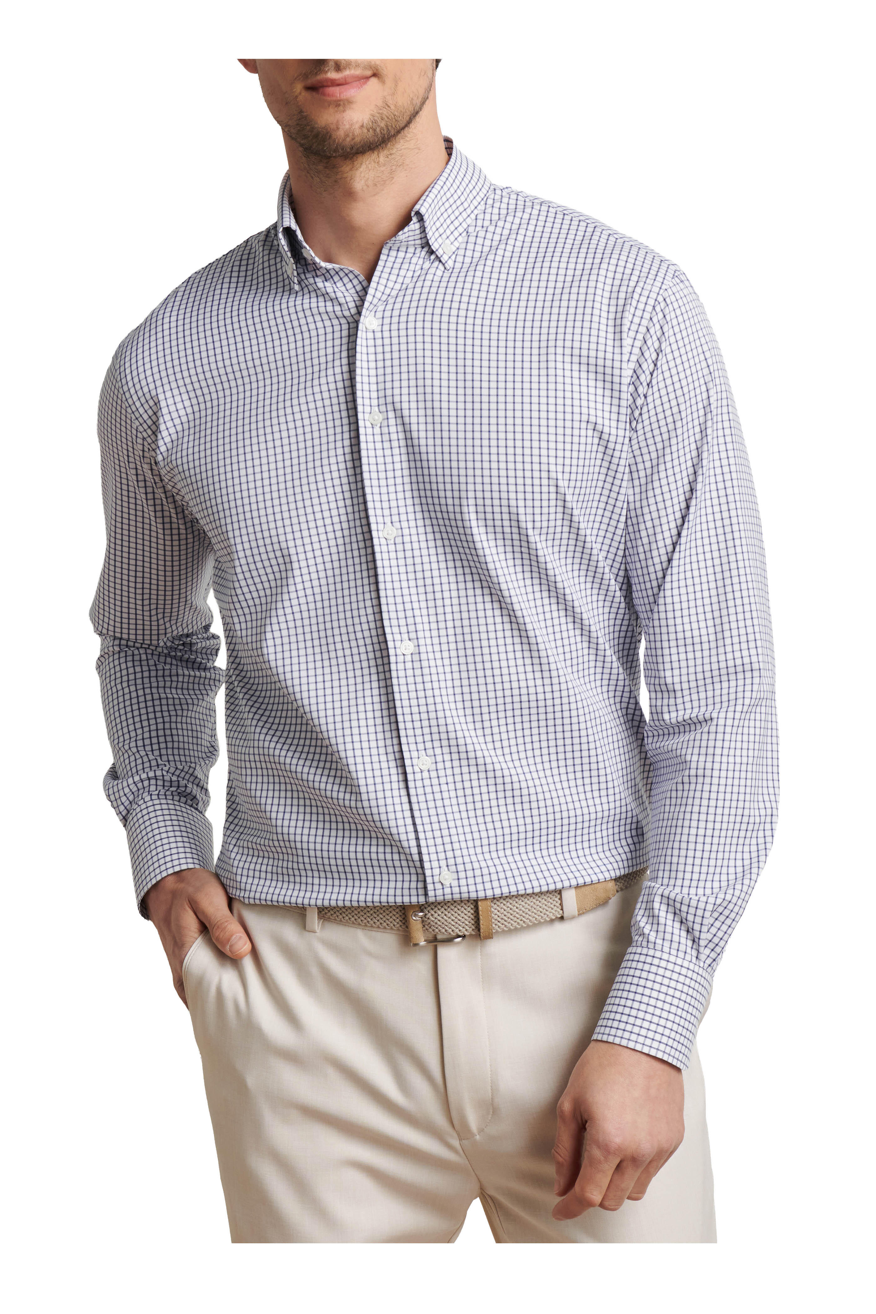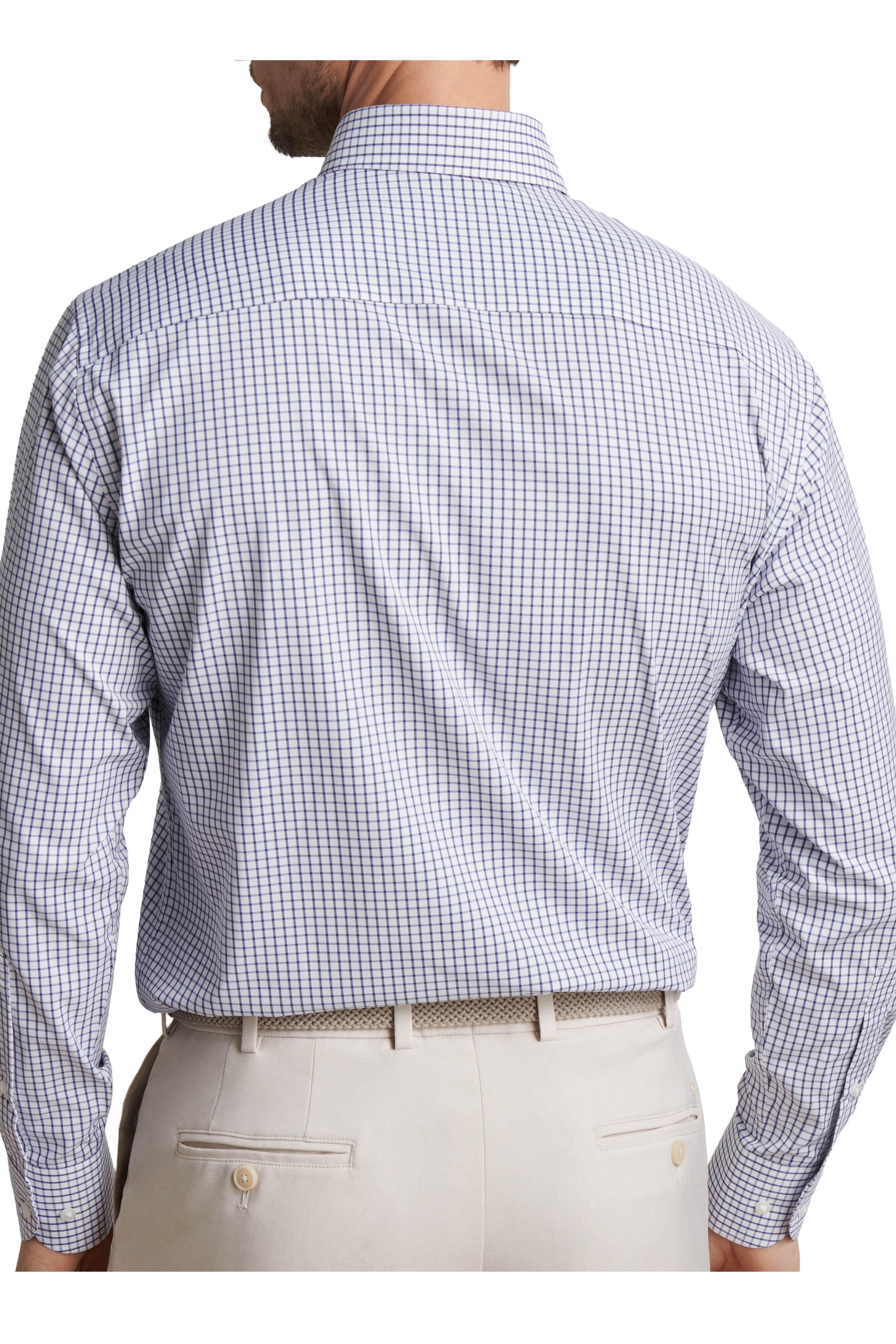 Button down pointed collar. French front button placket. Single button barrel cuffs. Imported. 55% nylon, 40% polyester, 5% spandex. Machine wash.
