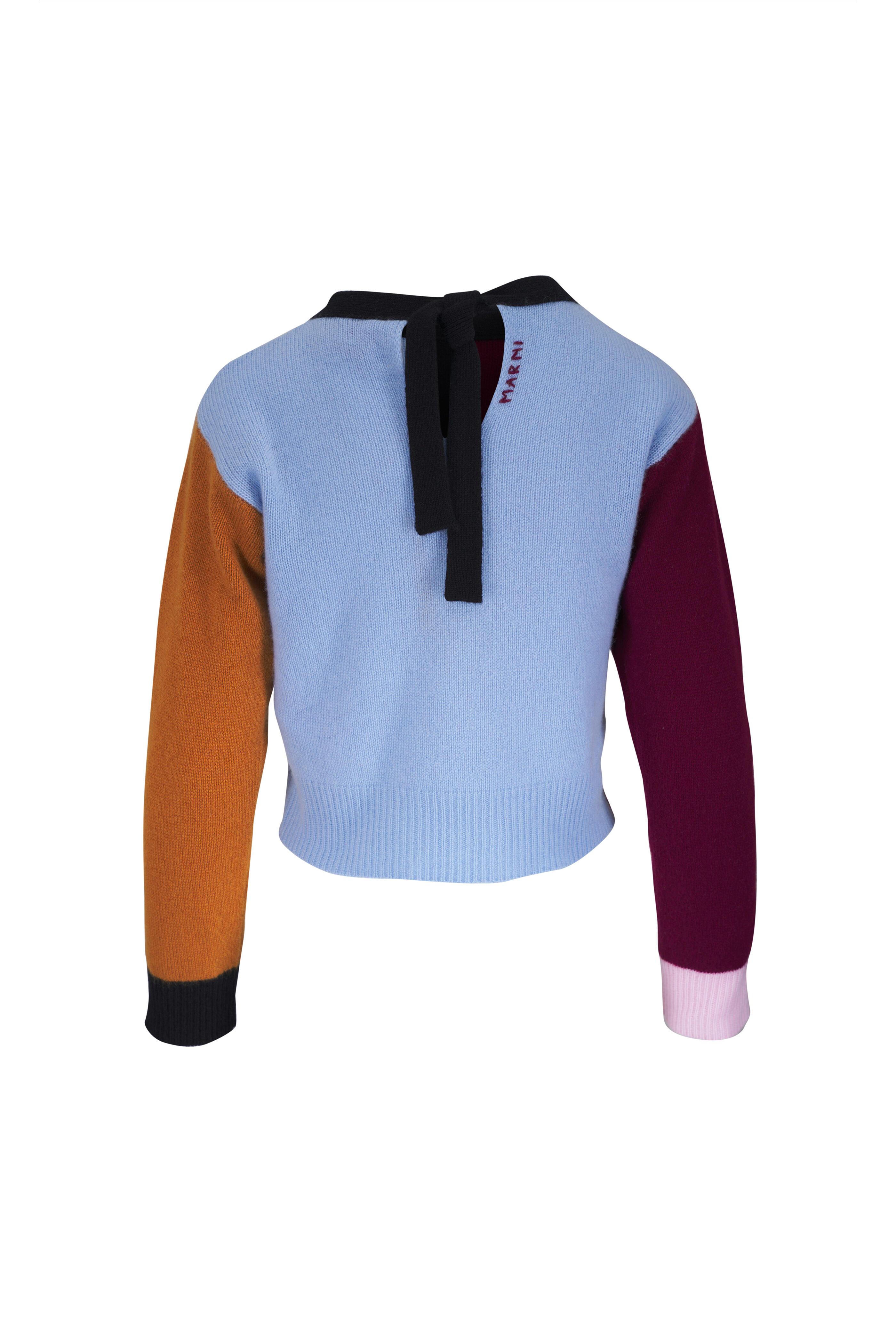 Round neckline. Back opening and tie closure. Ribbed knit trims. Hand-embroidered Marni Mending logo on the back neck. Made in Italy. 100% cashmere. Hand wash.