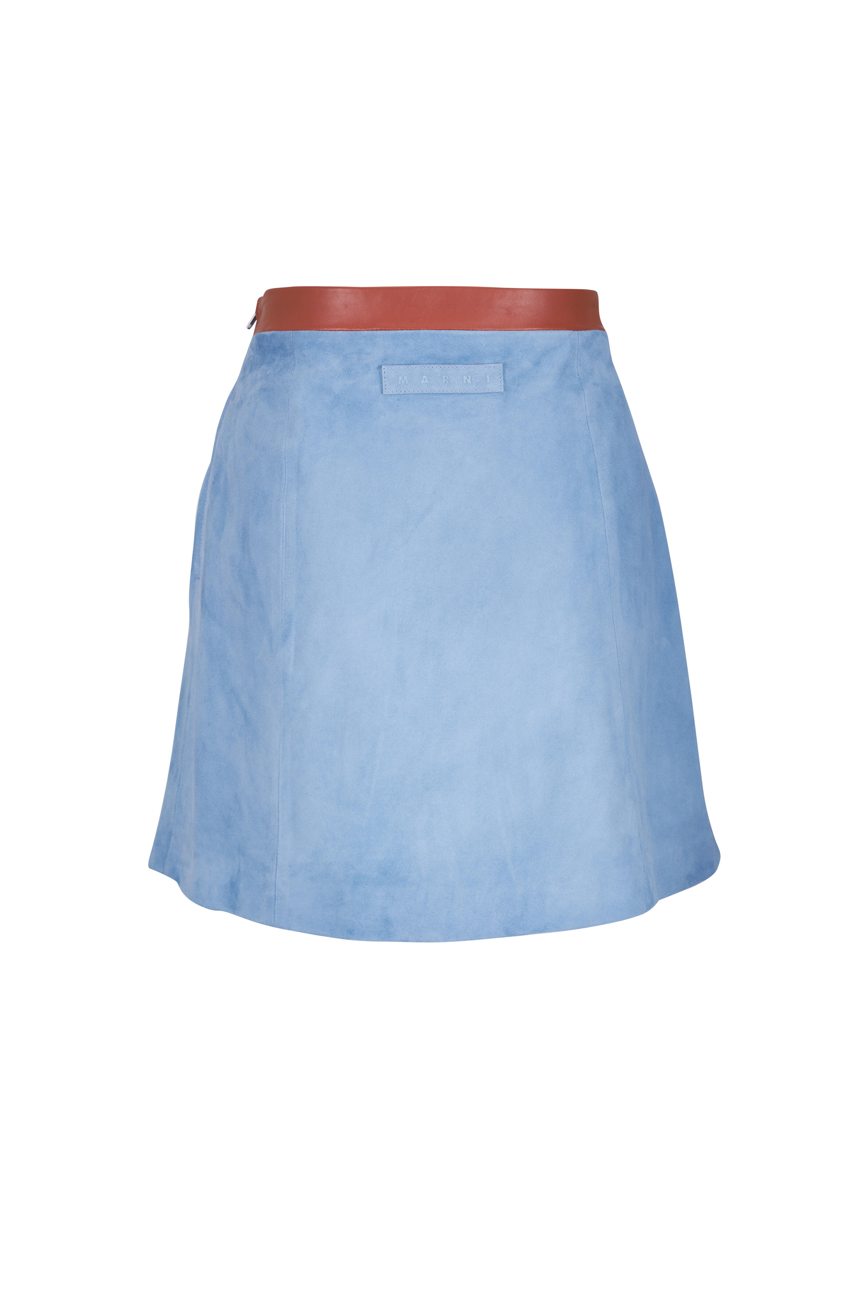 Specialist clean. Concealed side zip. Contrasting napa leather waistband. Embossed Marni patch on back. Made in Italy. 17" length. 100% ovine leather; lined.