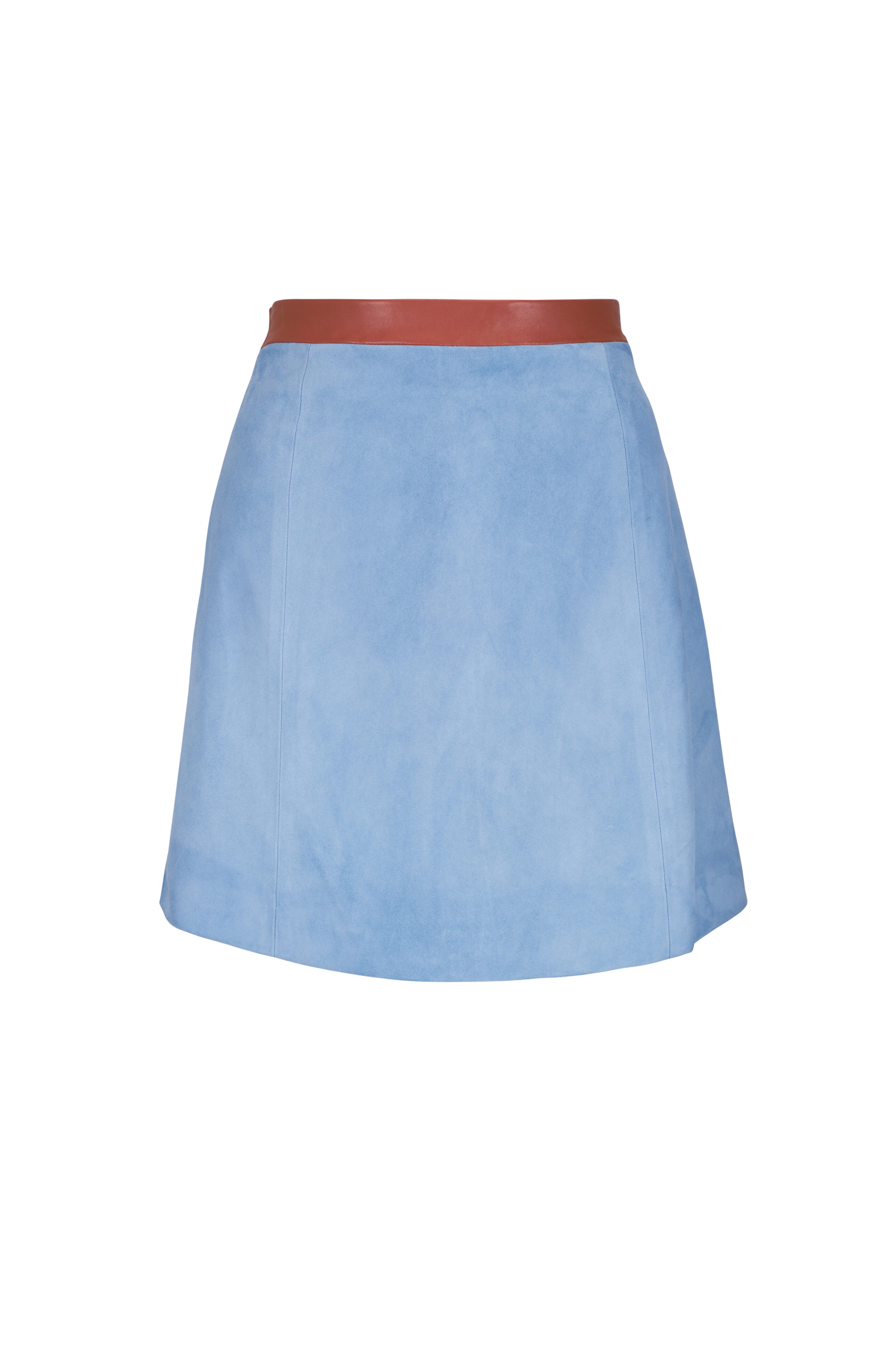 Light Blue Suede Flared Mini Skirt