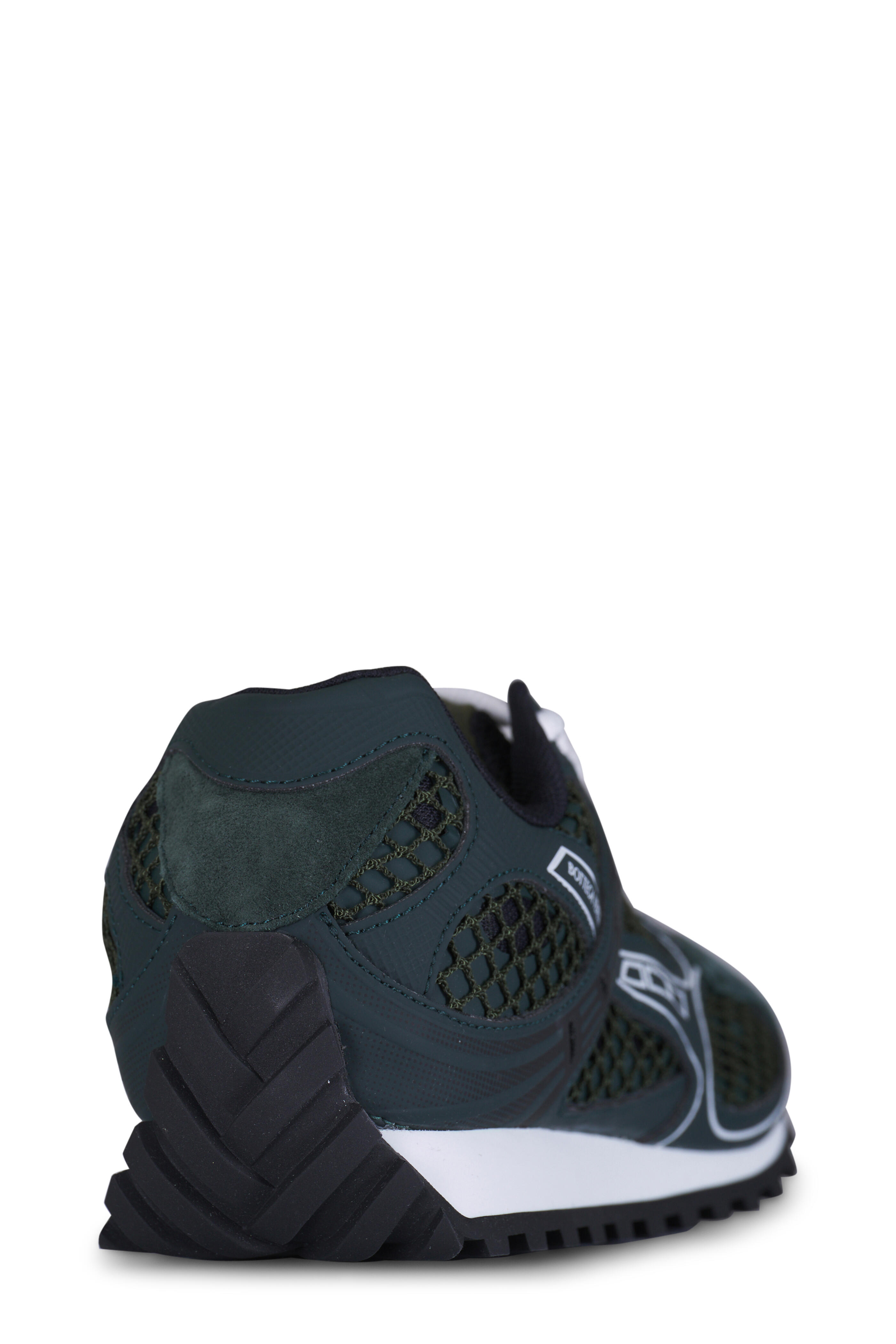 Suede & mesh upper. Tapered toe. Lace up closure. Slip on style. Fabric lining and cushioned insole. Rubber sole. Made in Italy. Runs small; suggested to order 1 size up.