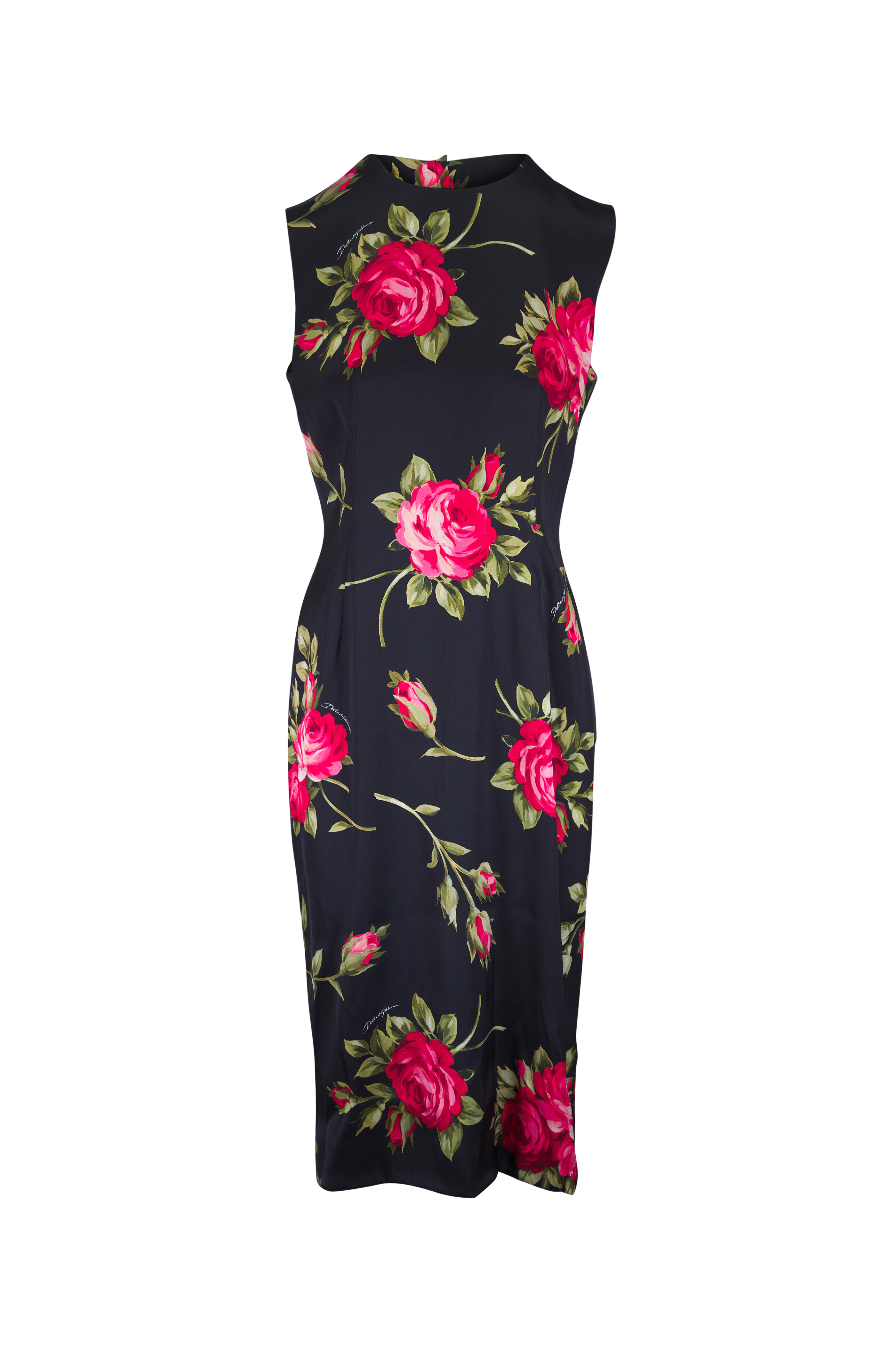 Crew neckline. Concealed back zip. Back slit. Made in Italy. Approx. 47" shoulder to hem (measurements from size 12). 96% viscose, 4% elastane; lined. Dry clean.