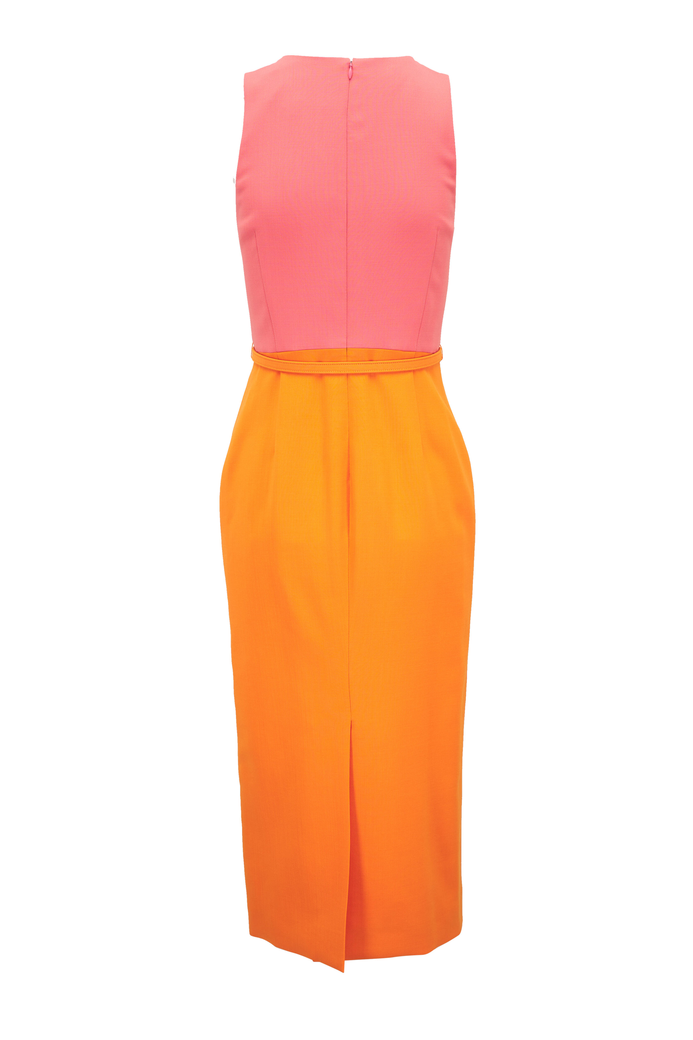 Orange & Pink Belted Wool Sleeveless Midi Dress