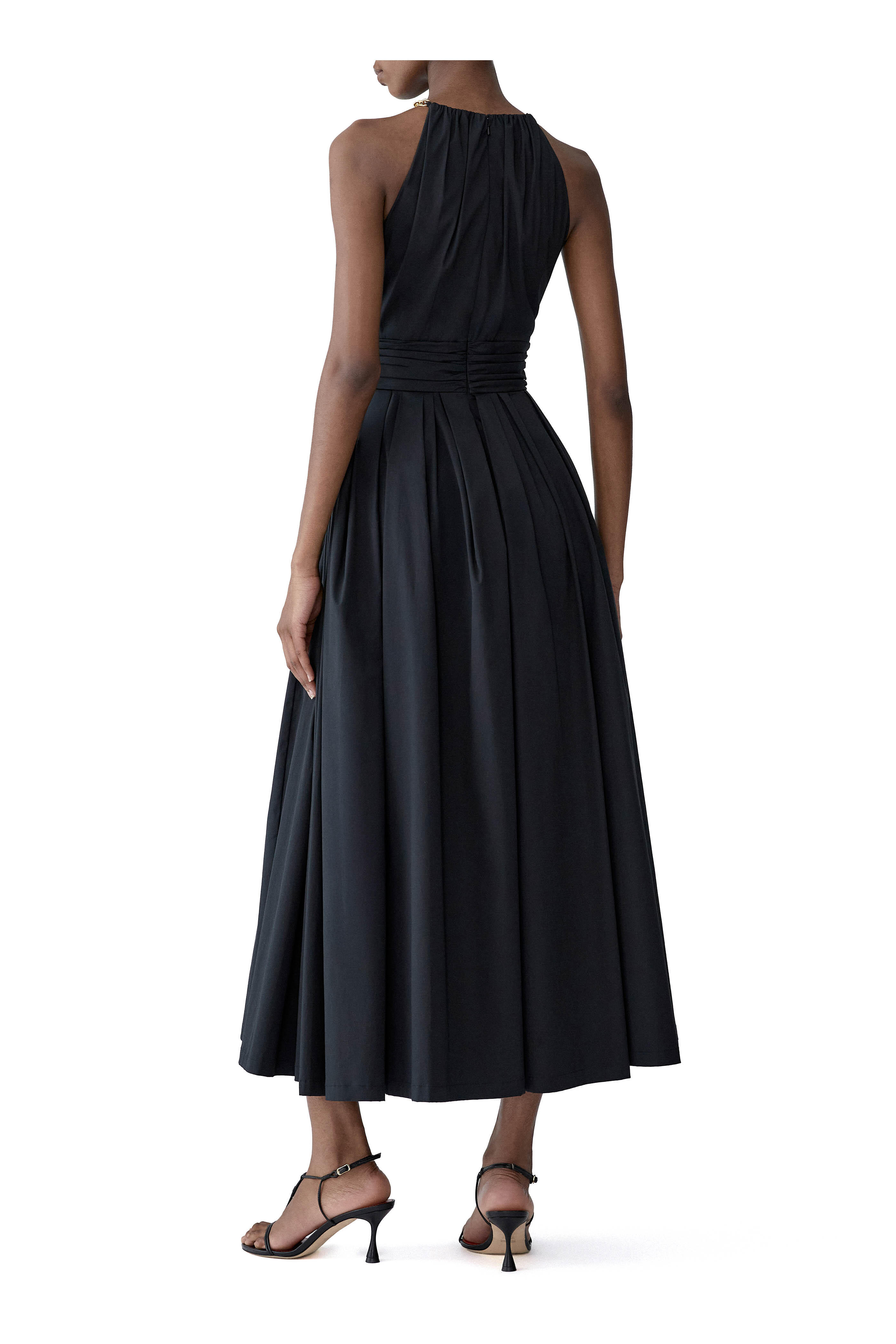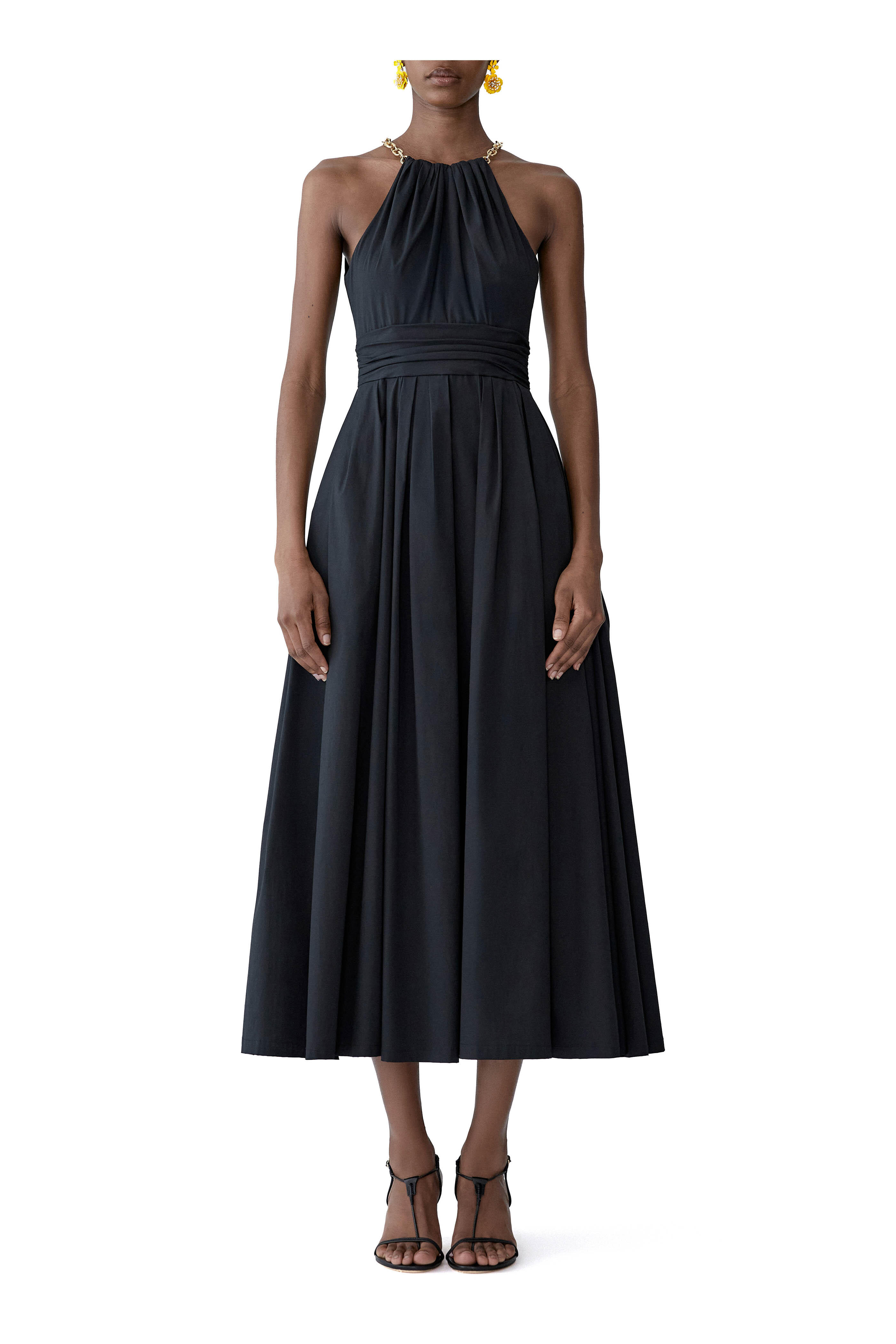 Black & Gold Chain Strap Halterneck Midi Dress