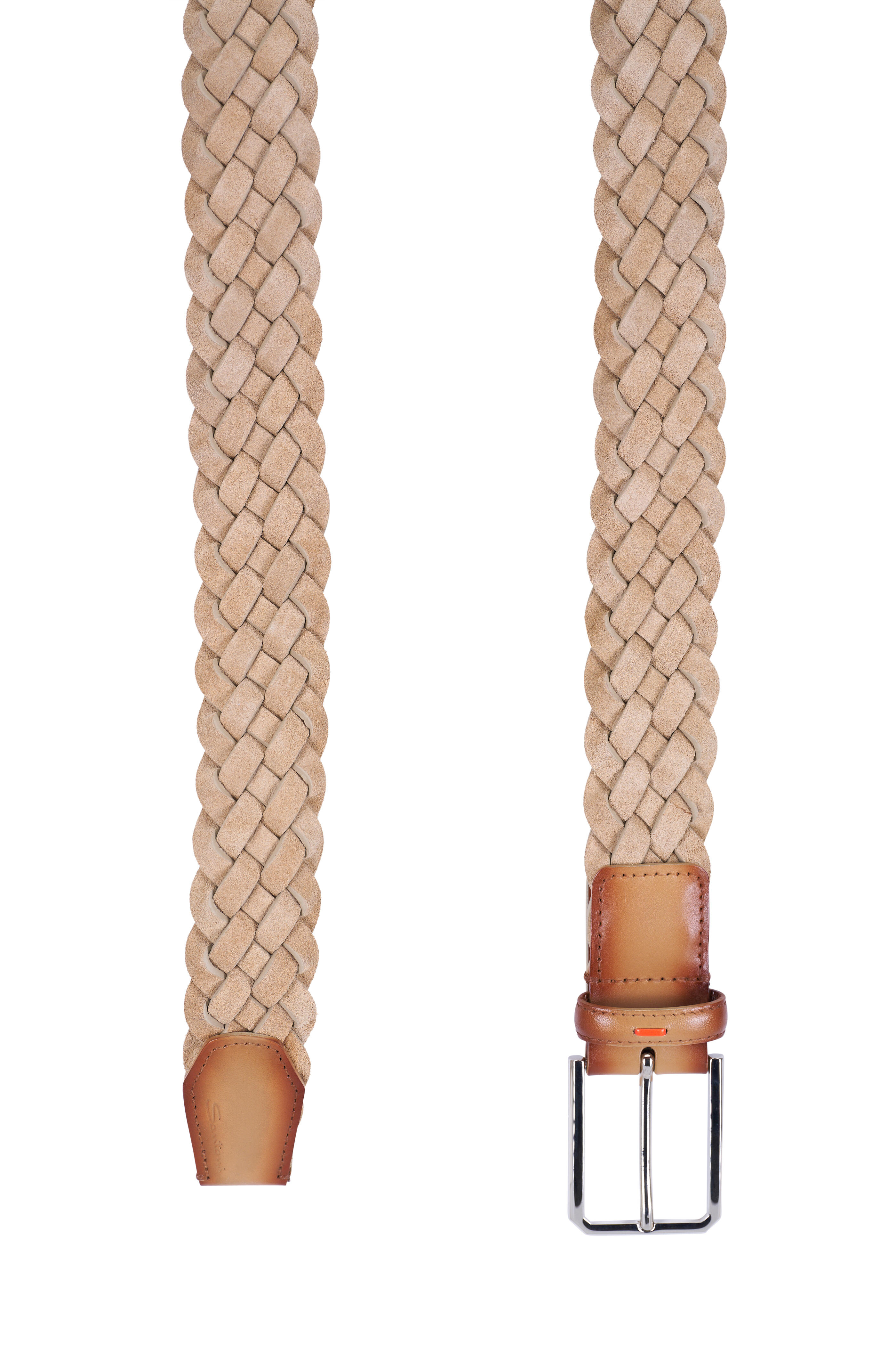 Leather Suede. Tapered tip. Square buckle; polished silver finish. Made in Italy.
