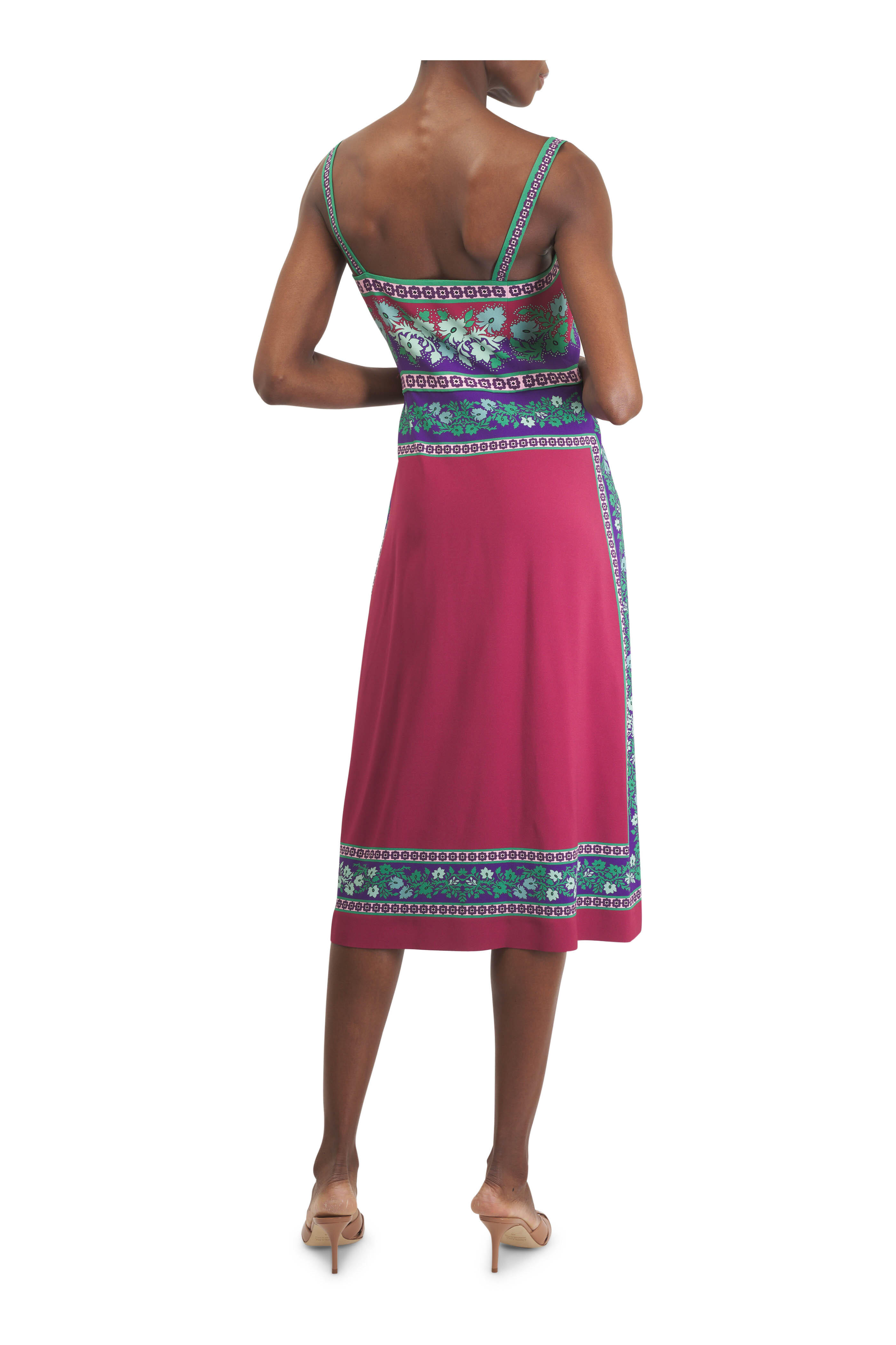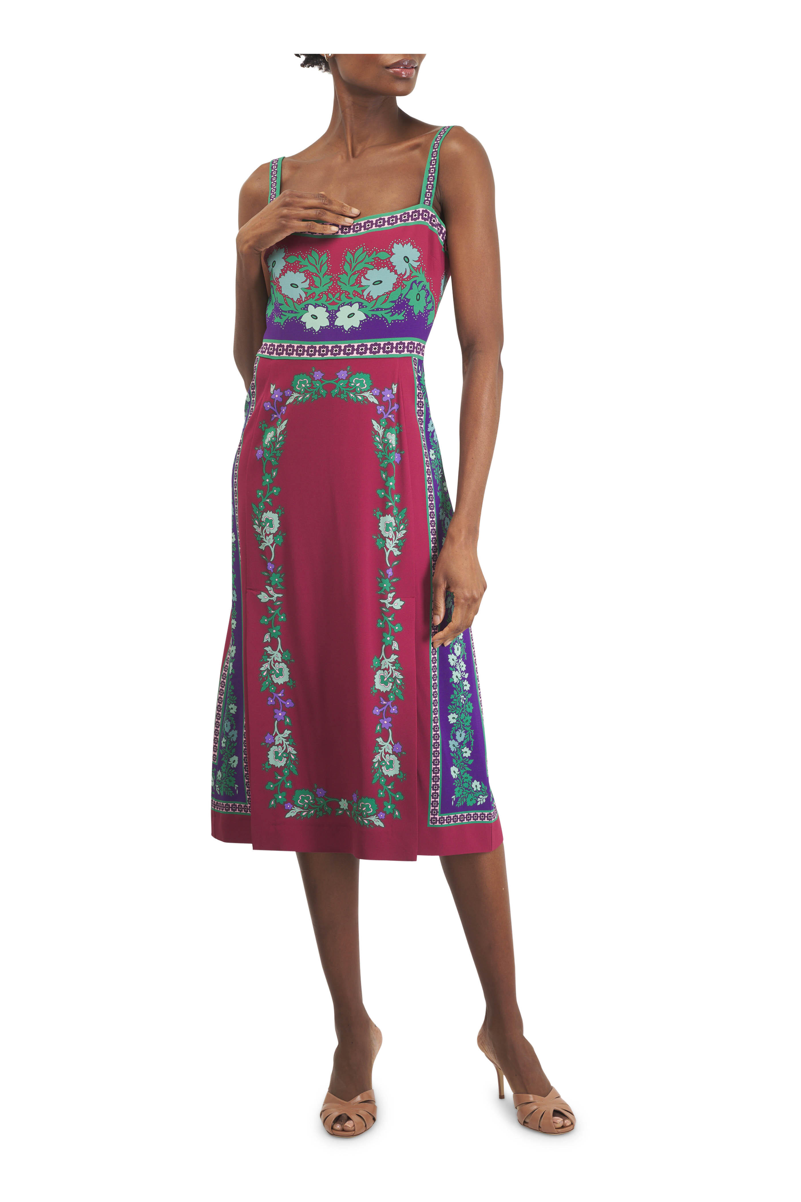 Square neckline. Concealed side zip. Front vent. Made in Italy. 48" shoulder to hem. 96% viscose, 4% elastane. Dry clean.